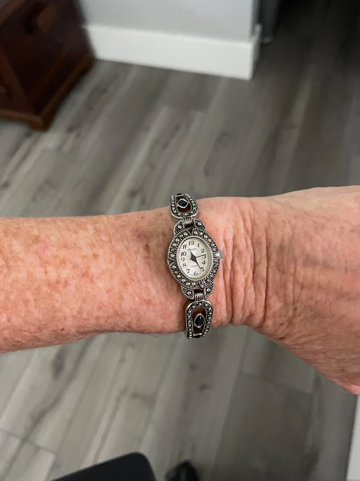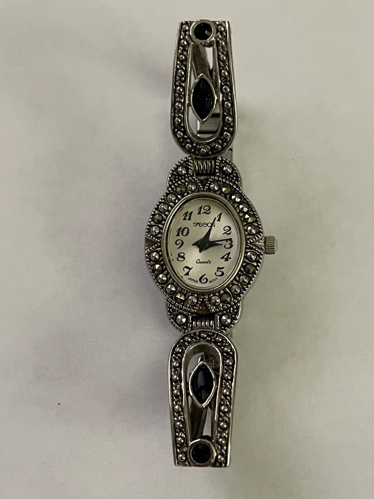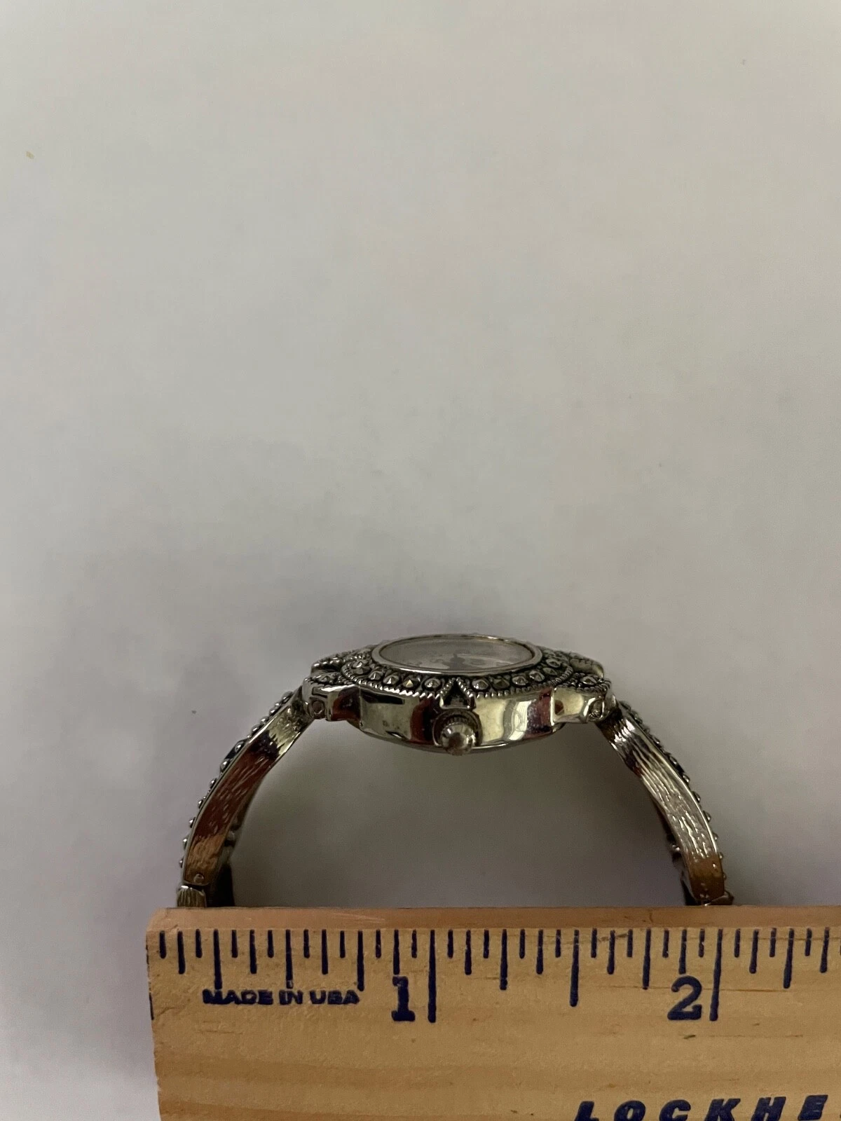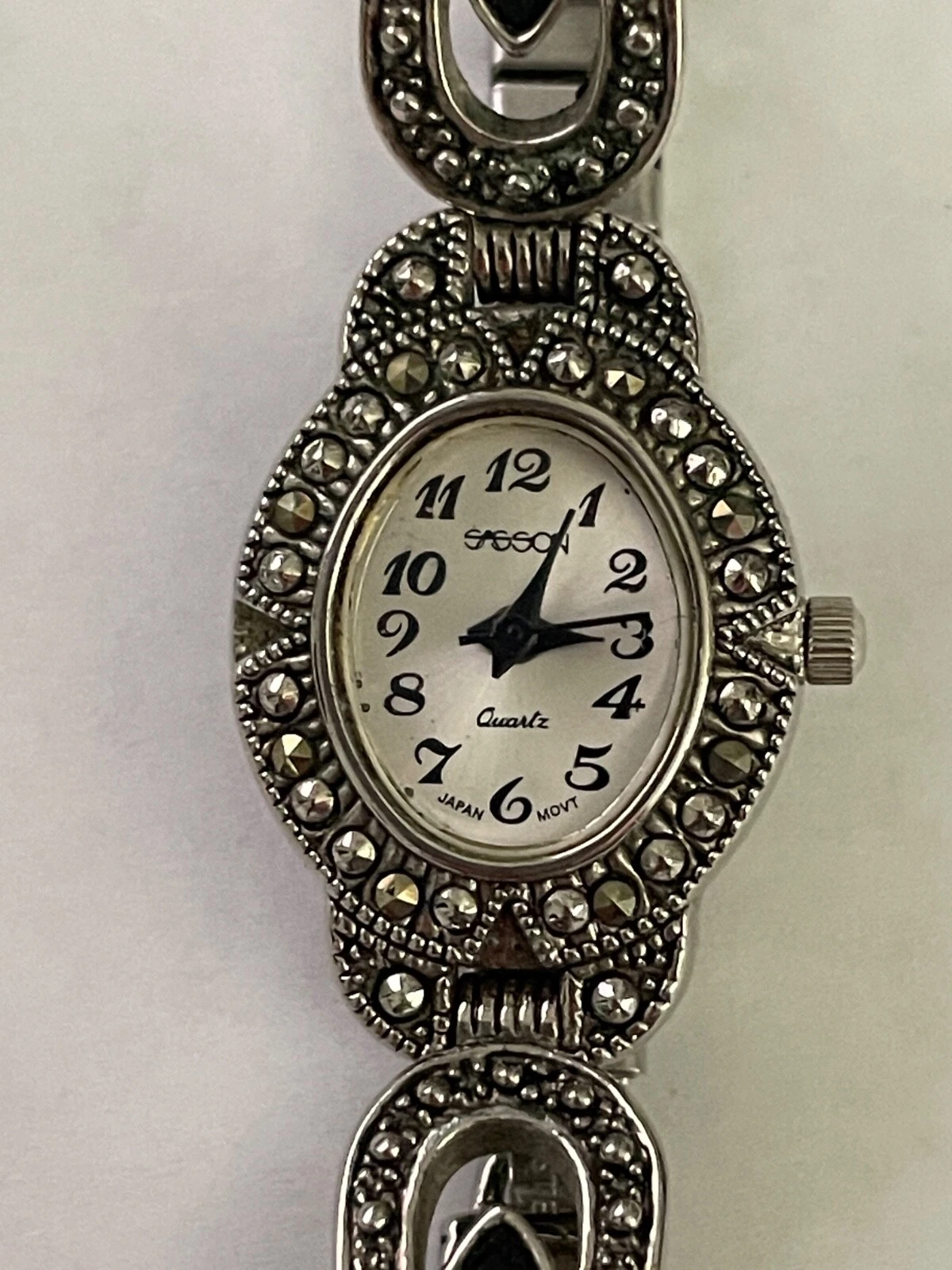 Vintage SASSON Silver-Tone Ornate Filigree Quartz Wristwatch Petite EUC
