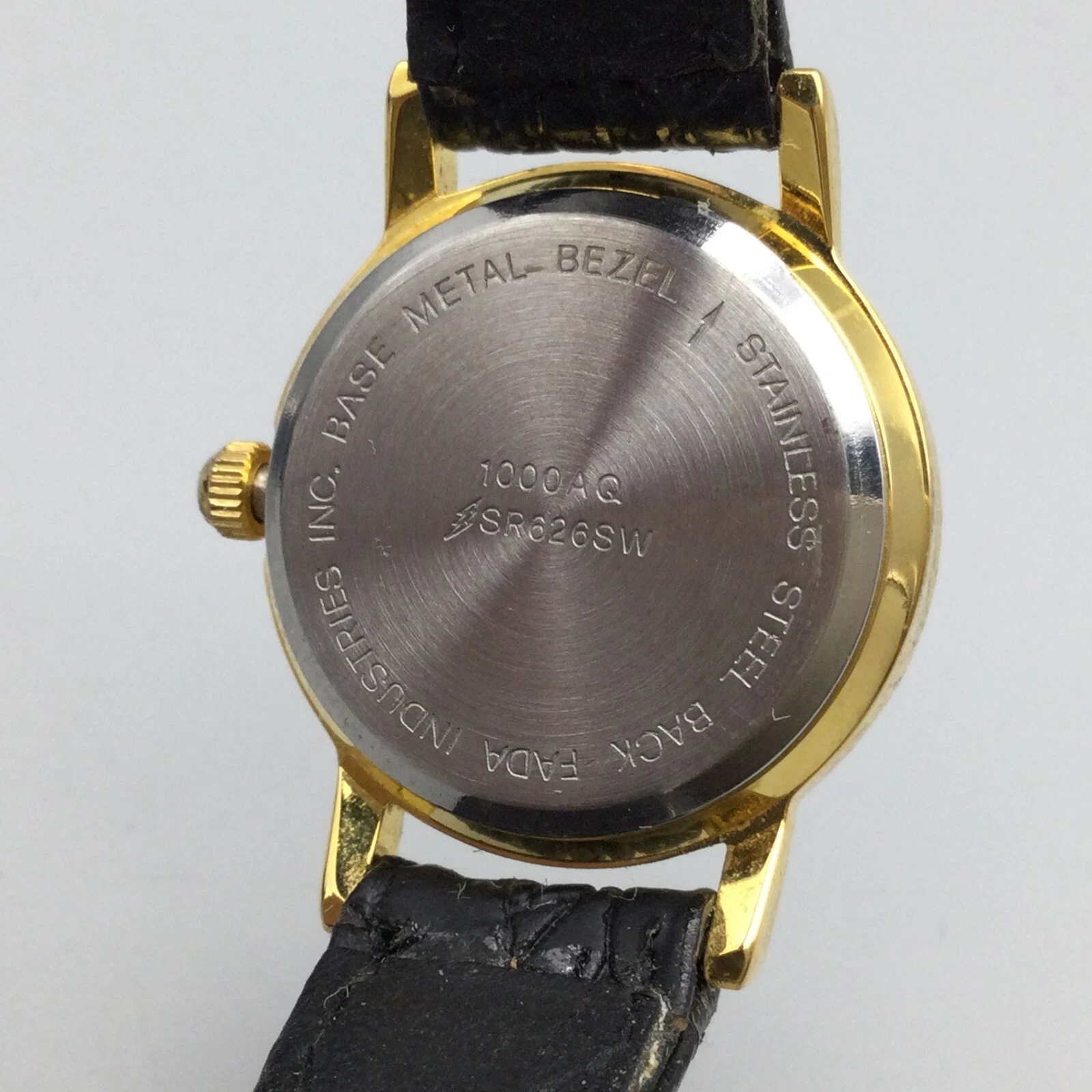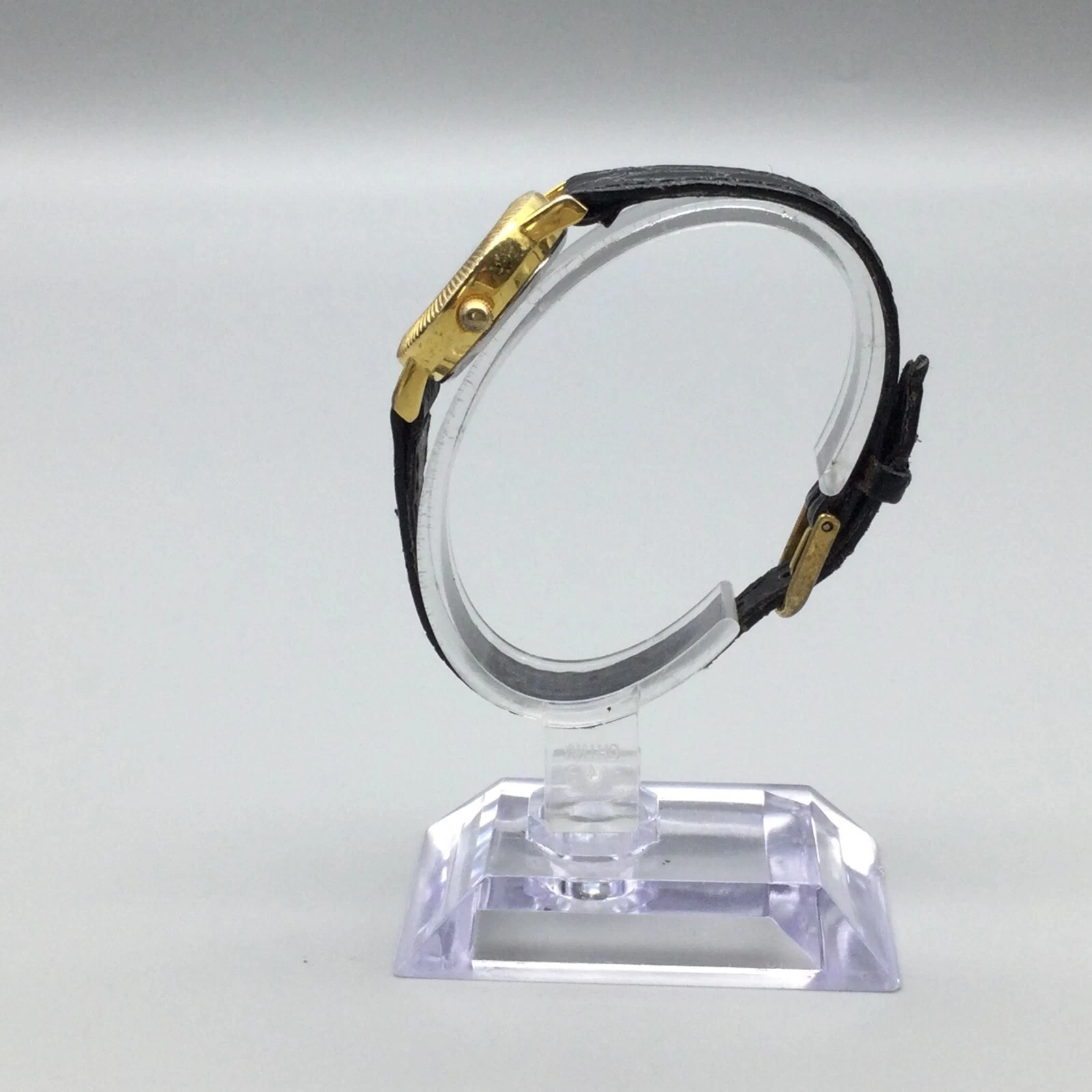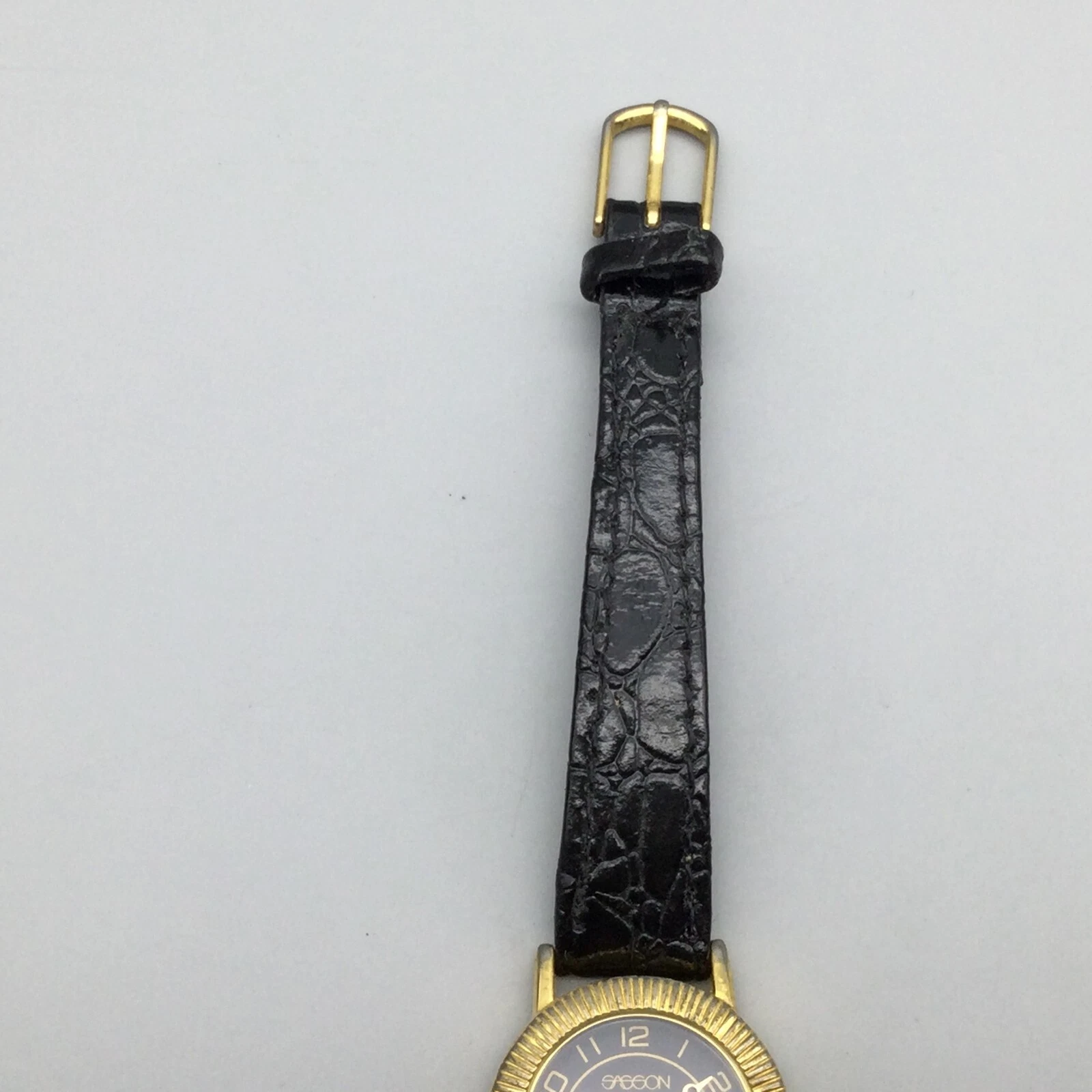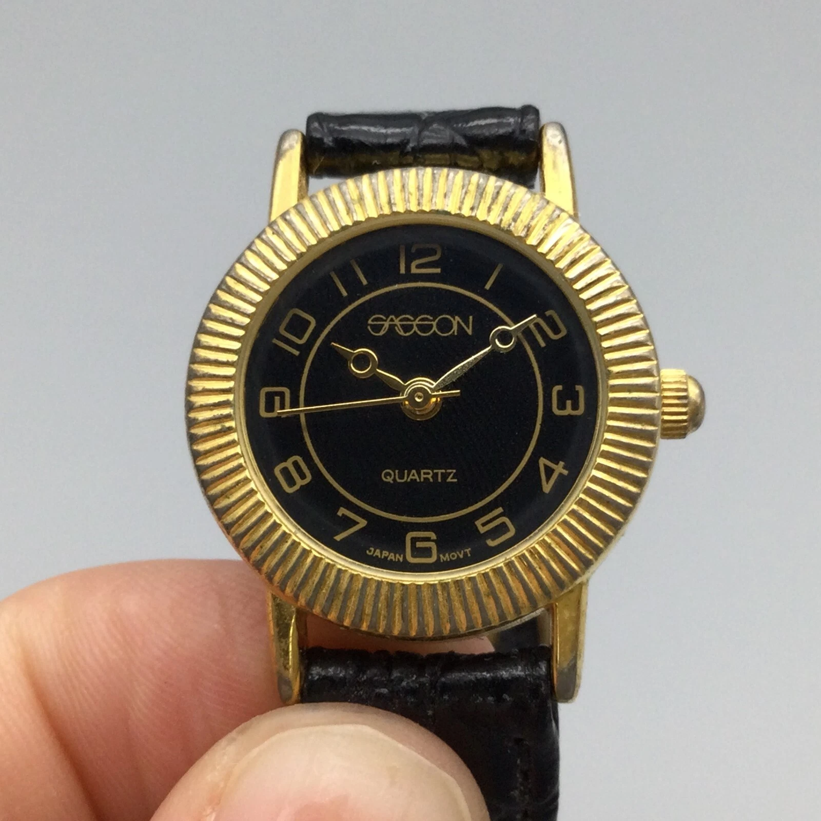 Sasson Watch Women 24mm Gold Tone Black Dial Leather Band New Battery