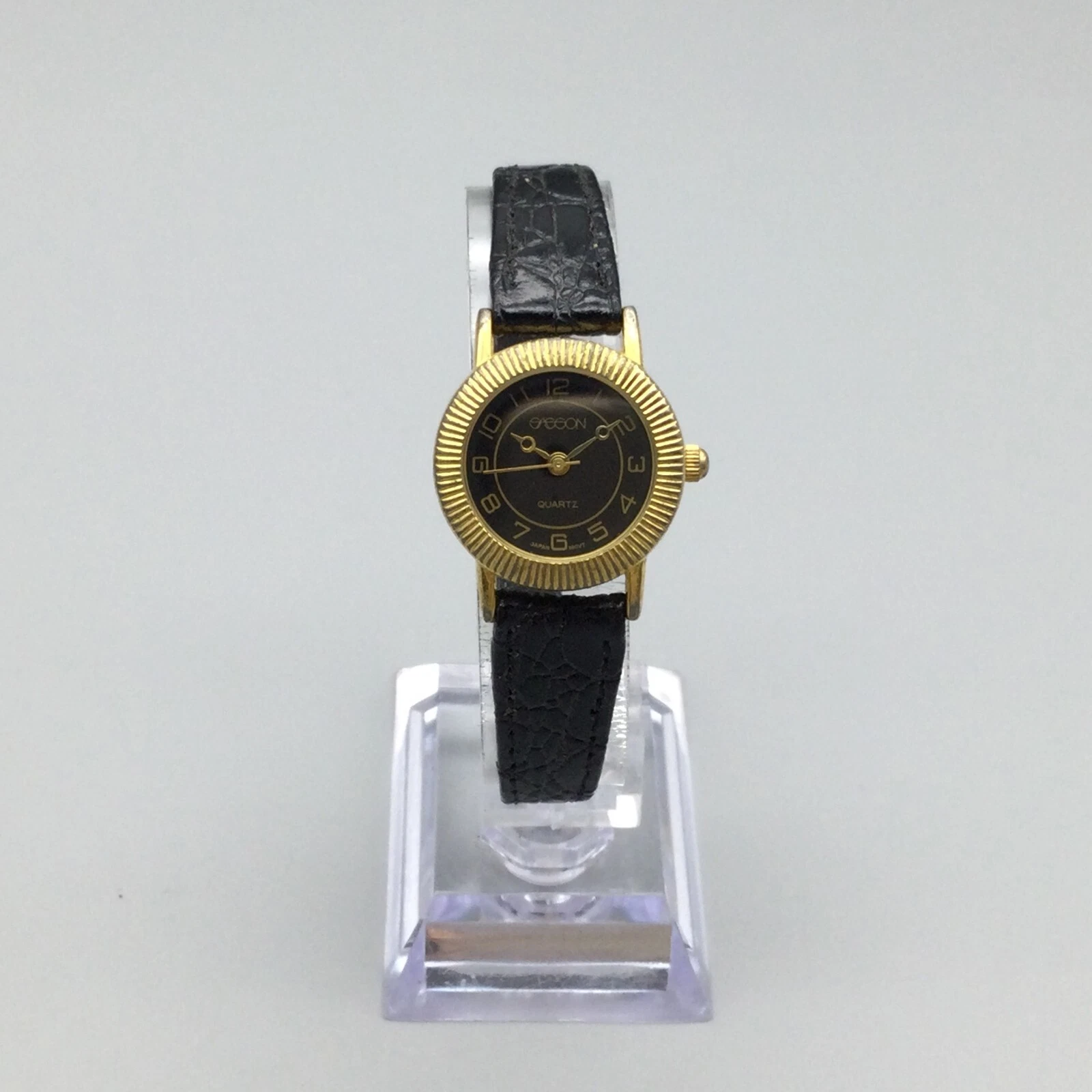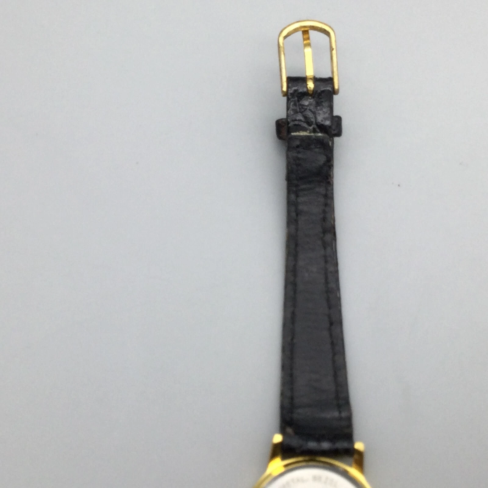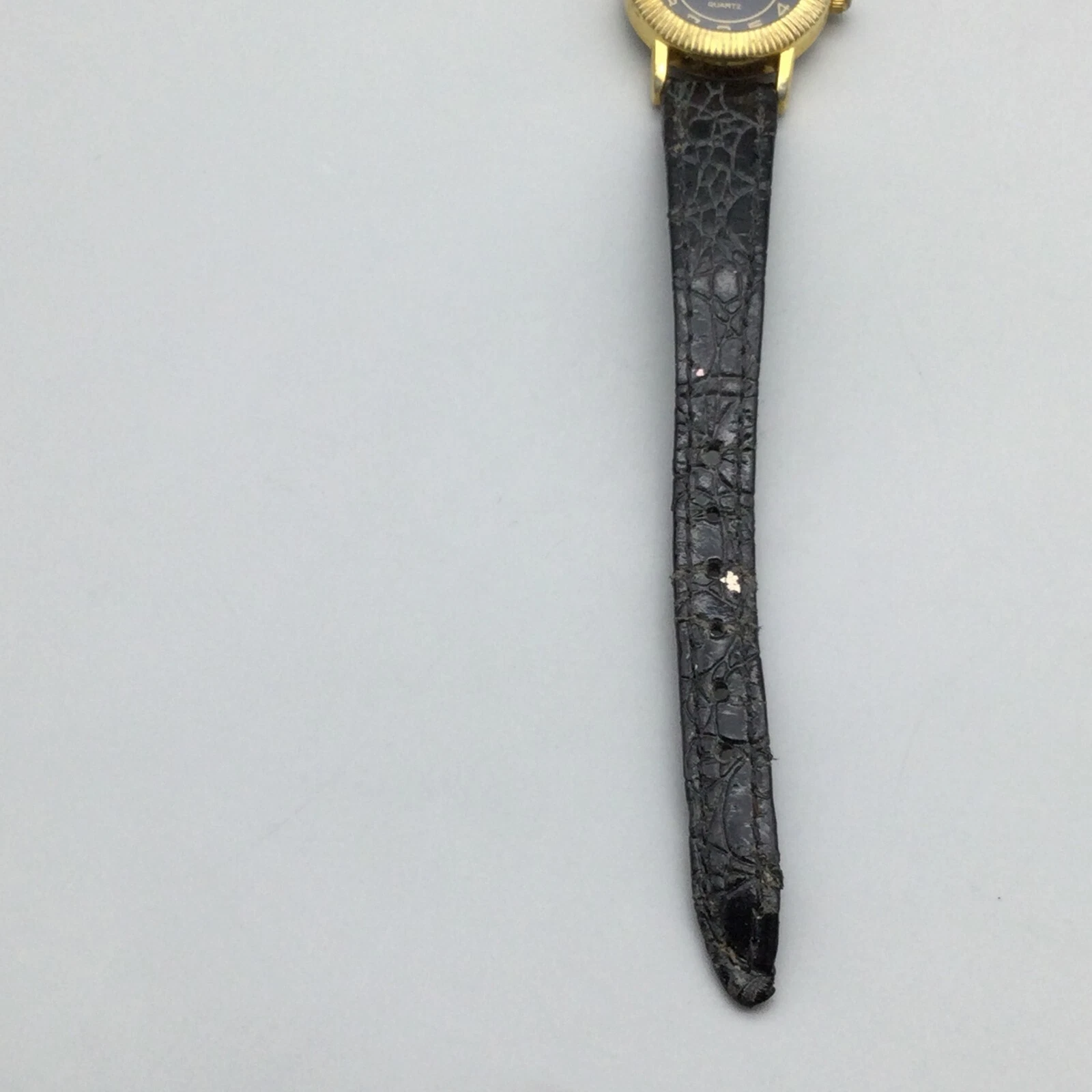 Sasson Watch Women 24mm Gold Tone Black Dial Leather Band New Battery