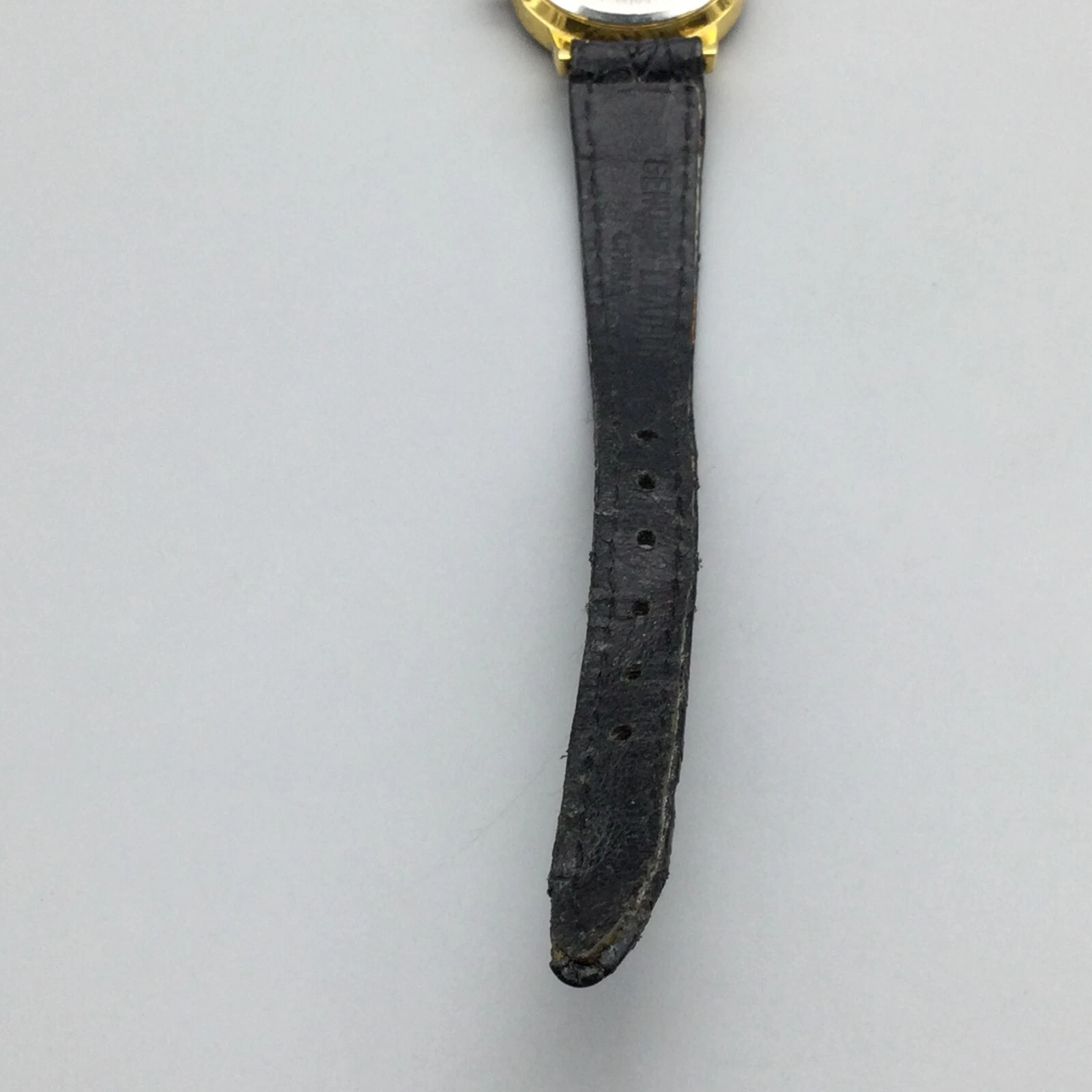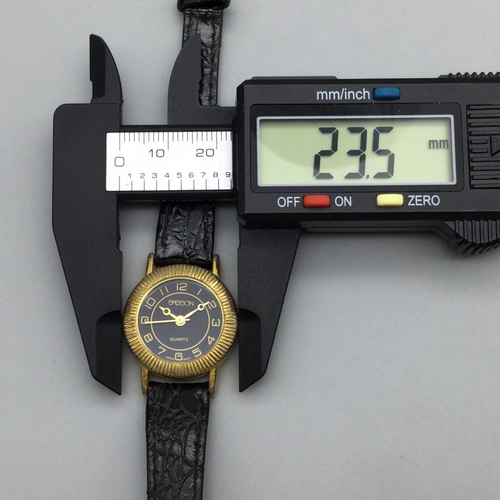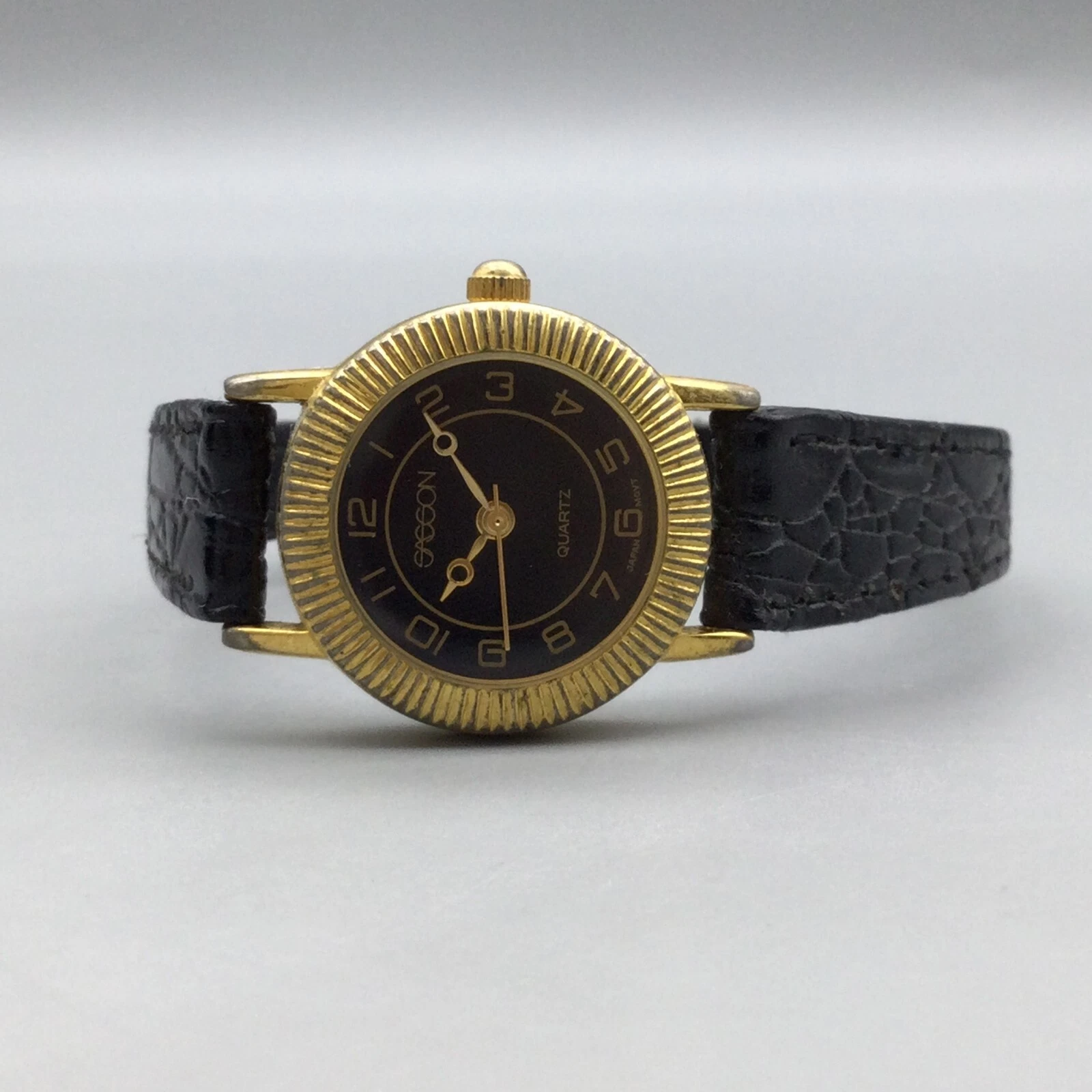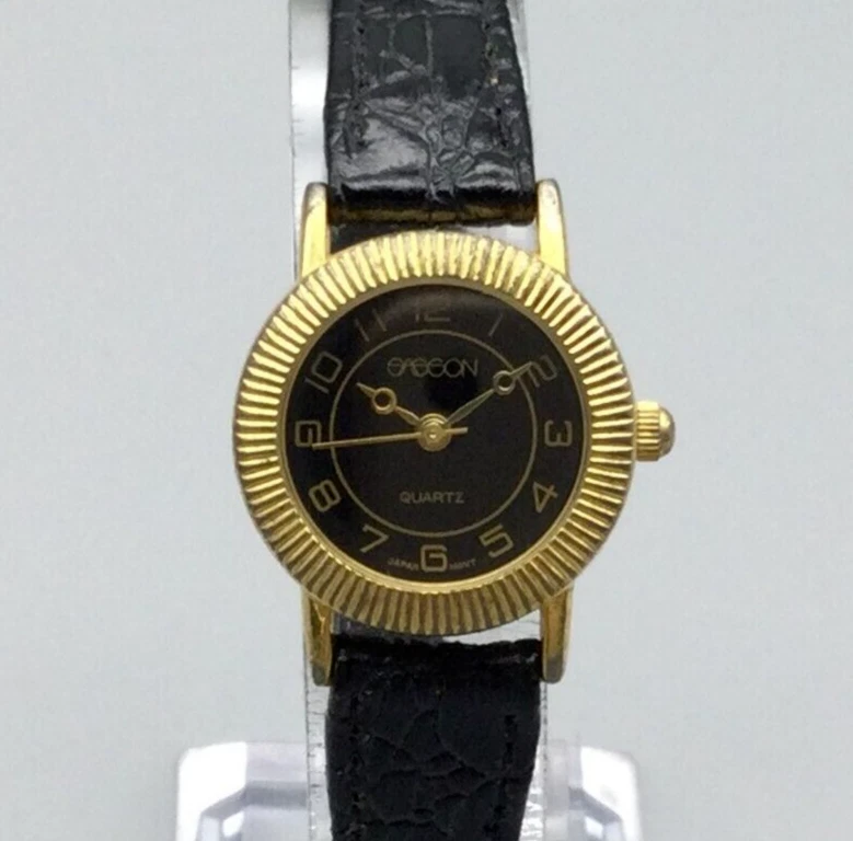 Sasson Watch Women 24mm Gold Tone Black Dial Leather Band New Battery