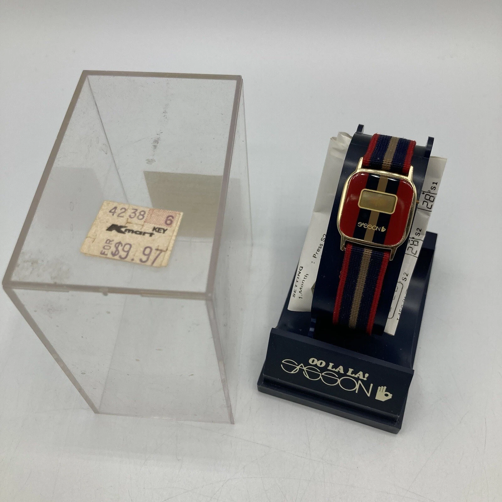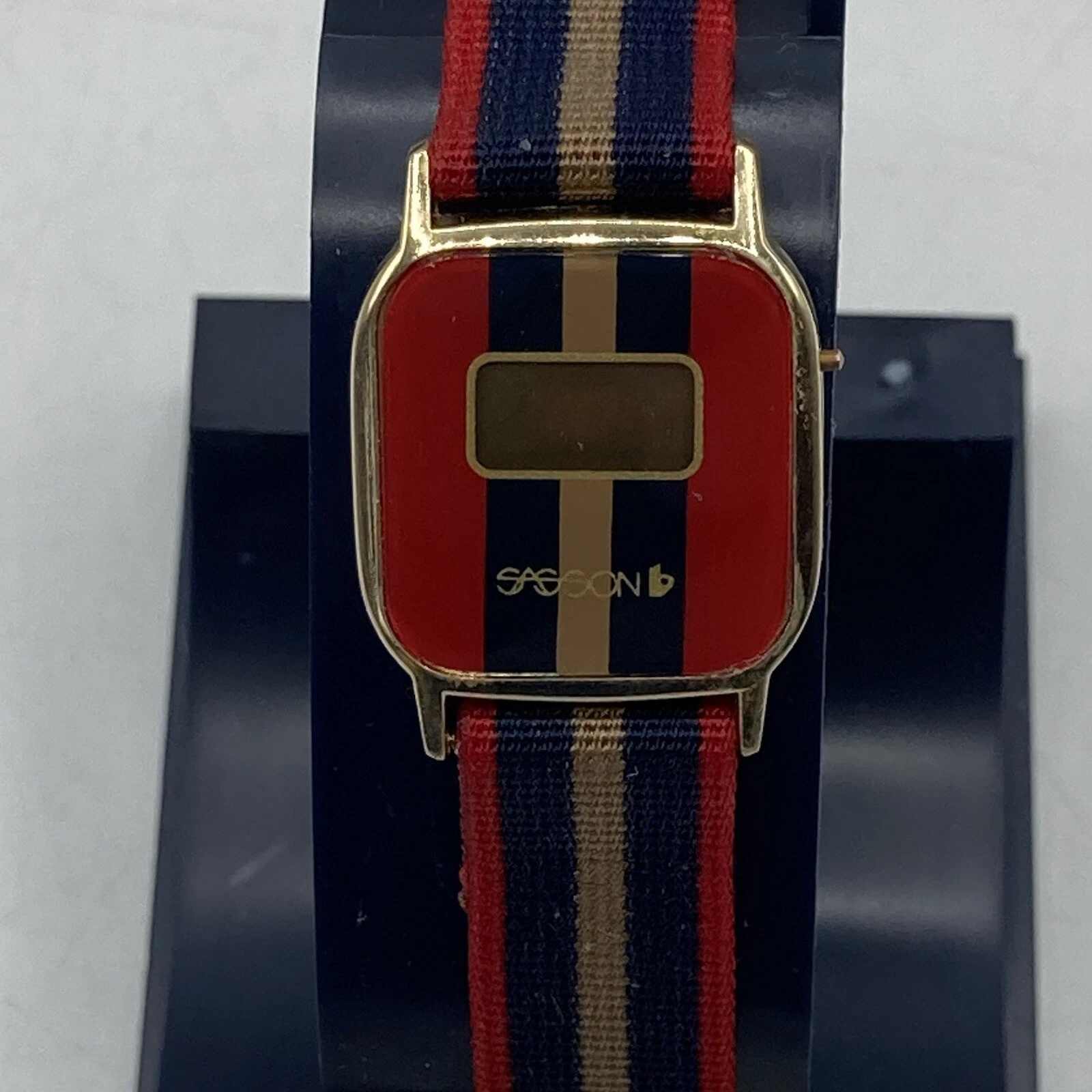 Vintage 1980s Sasson Watch Womens Digital Striped Band Oo La La!