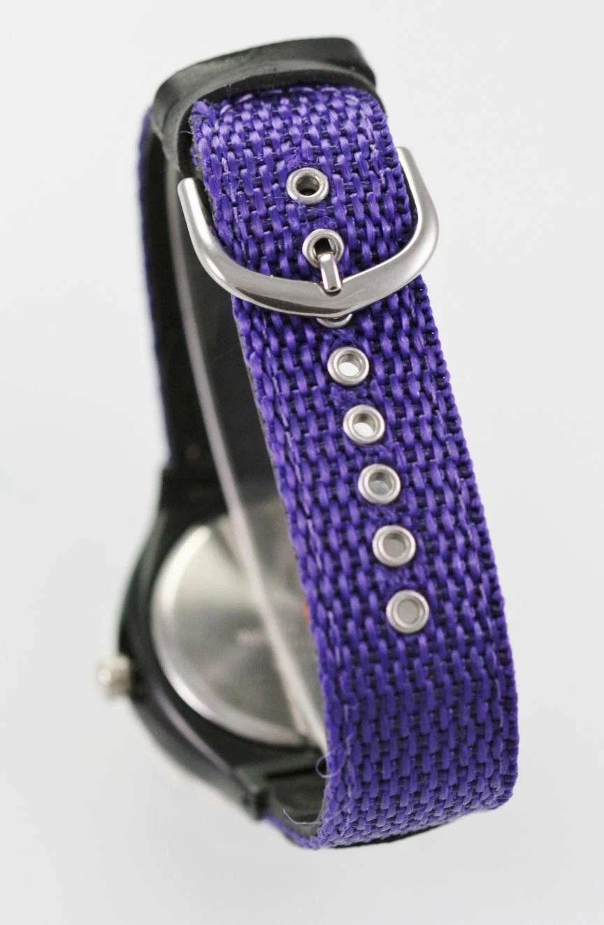 Sasson Watch Unisex White Stainless Black Purple Nylon Leather Battery Quartz