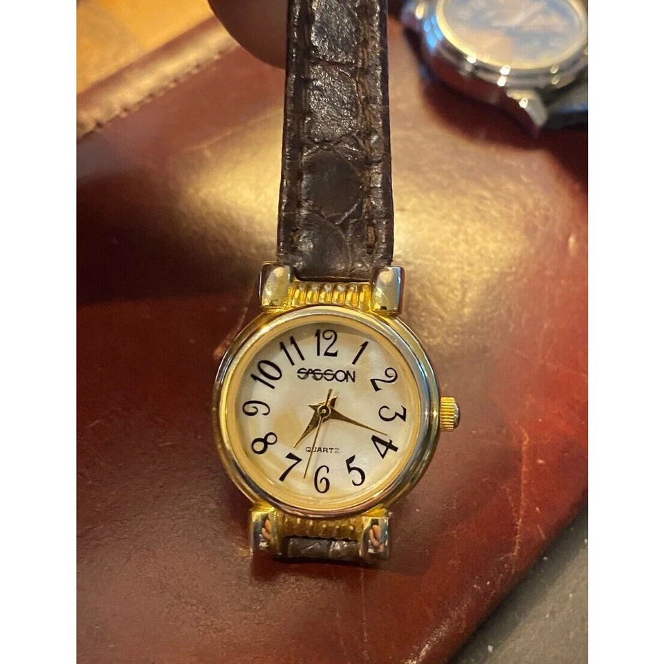 VTG women's 25mm Gold Tone Sassoon Watch, MOIP Face, Leather Band