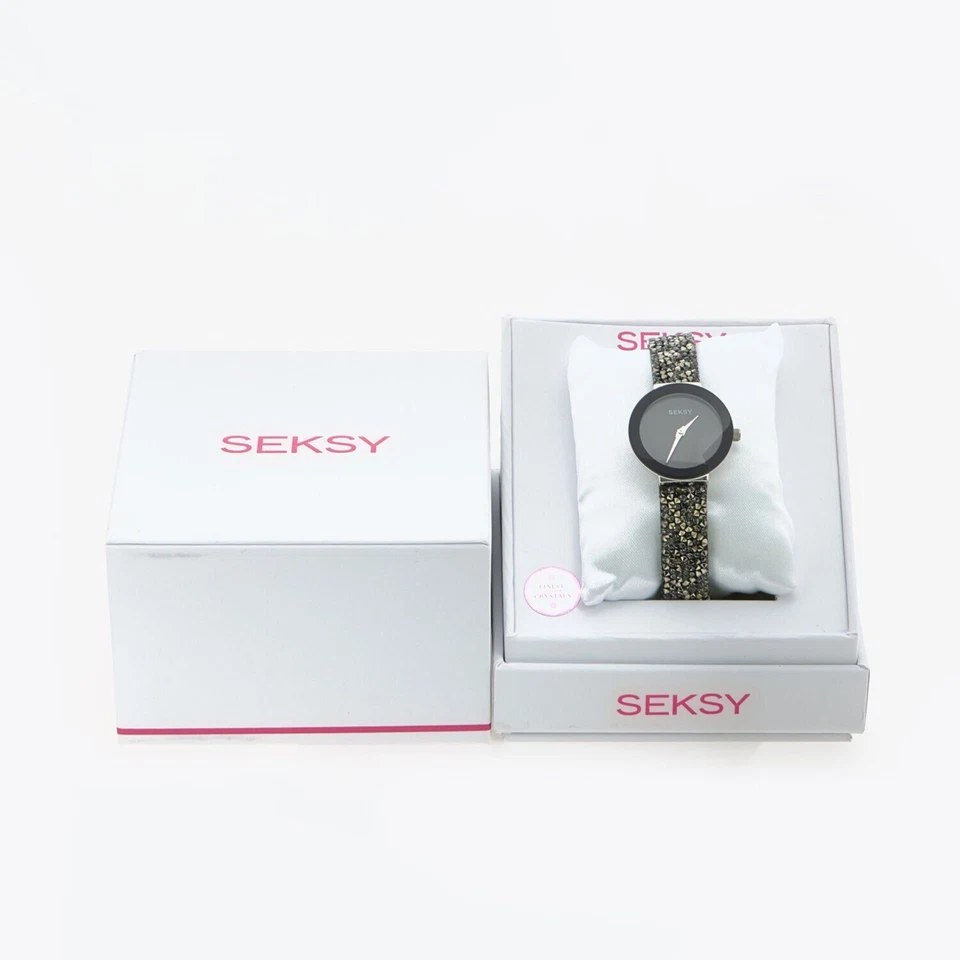 Seksy Ladies Watch & Necklace Gift Set 2740G – Stainless Steel, Black Dial, C...