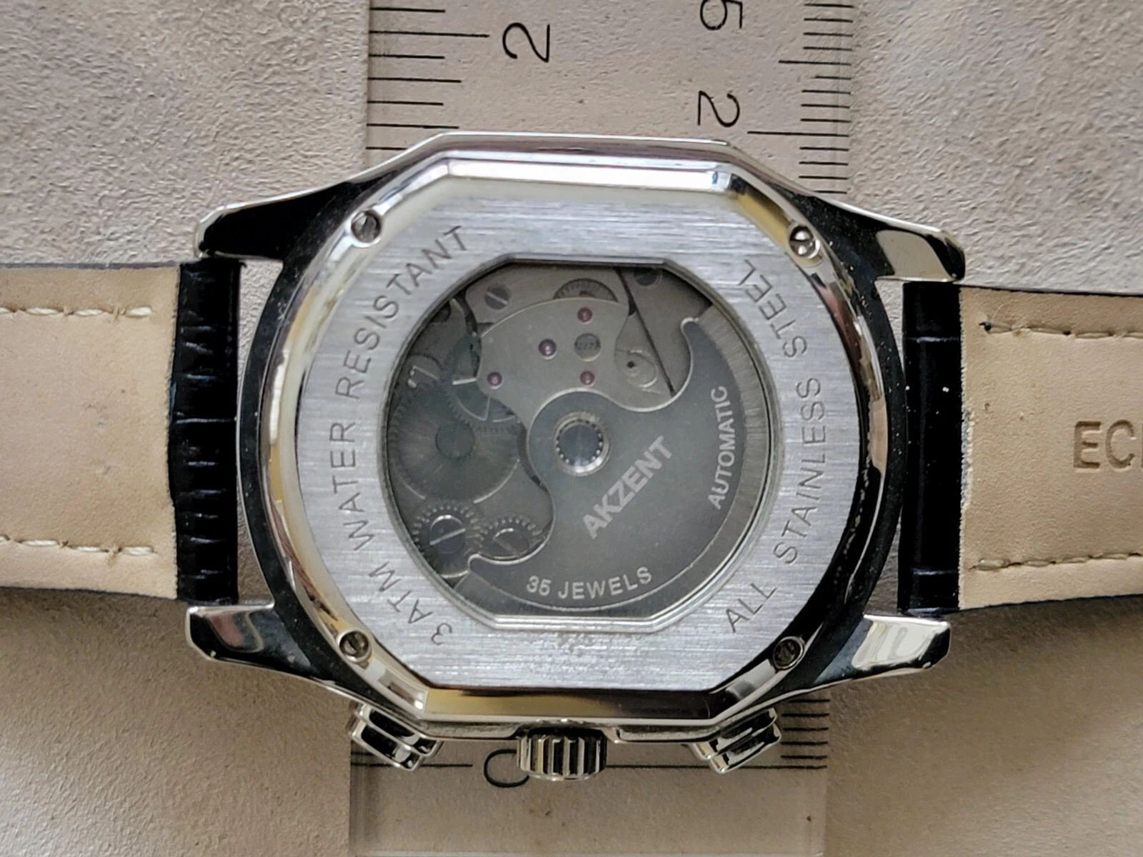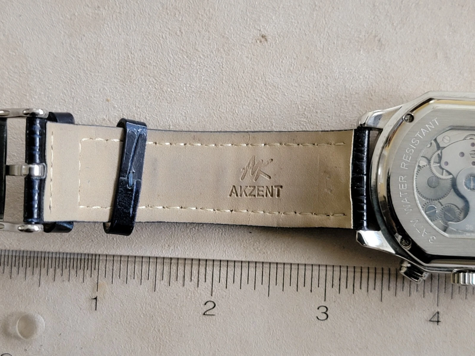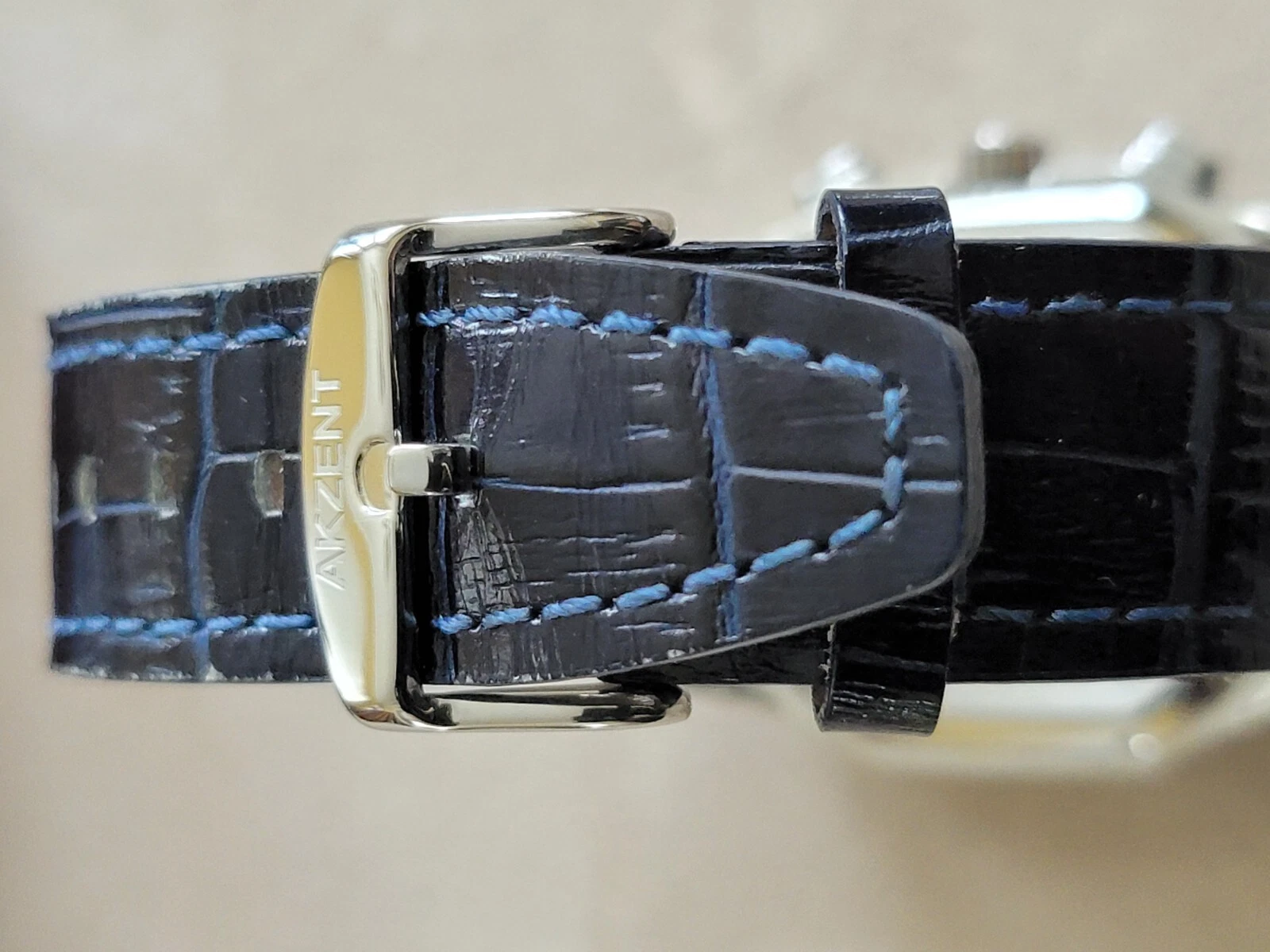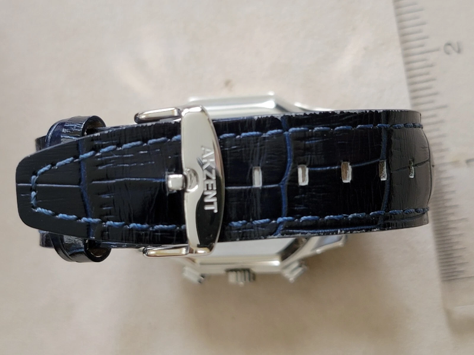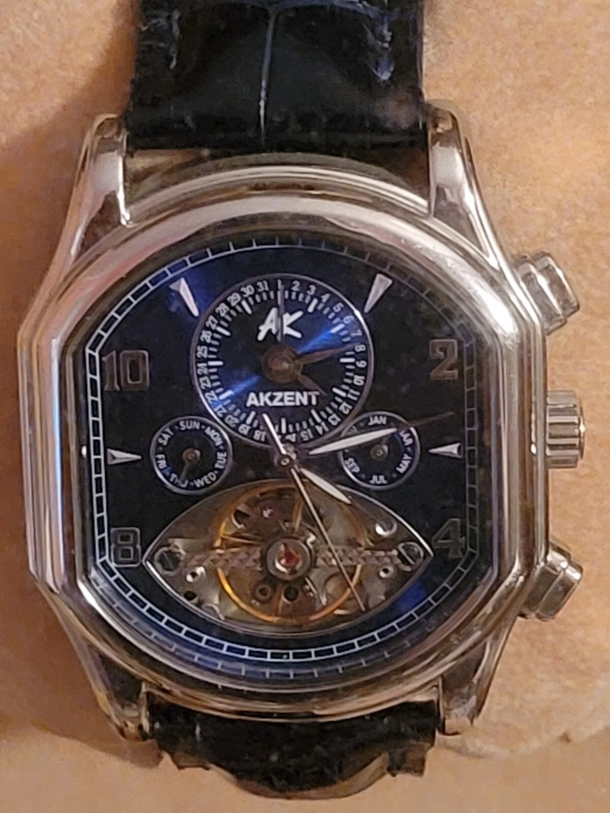 AKZENT Watch Blue Face Open Heart Triple Calendar Month, Date, Day - 35 Jewels.