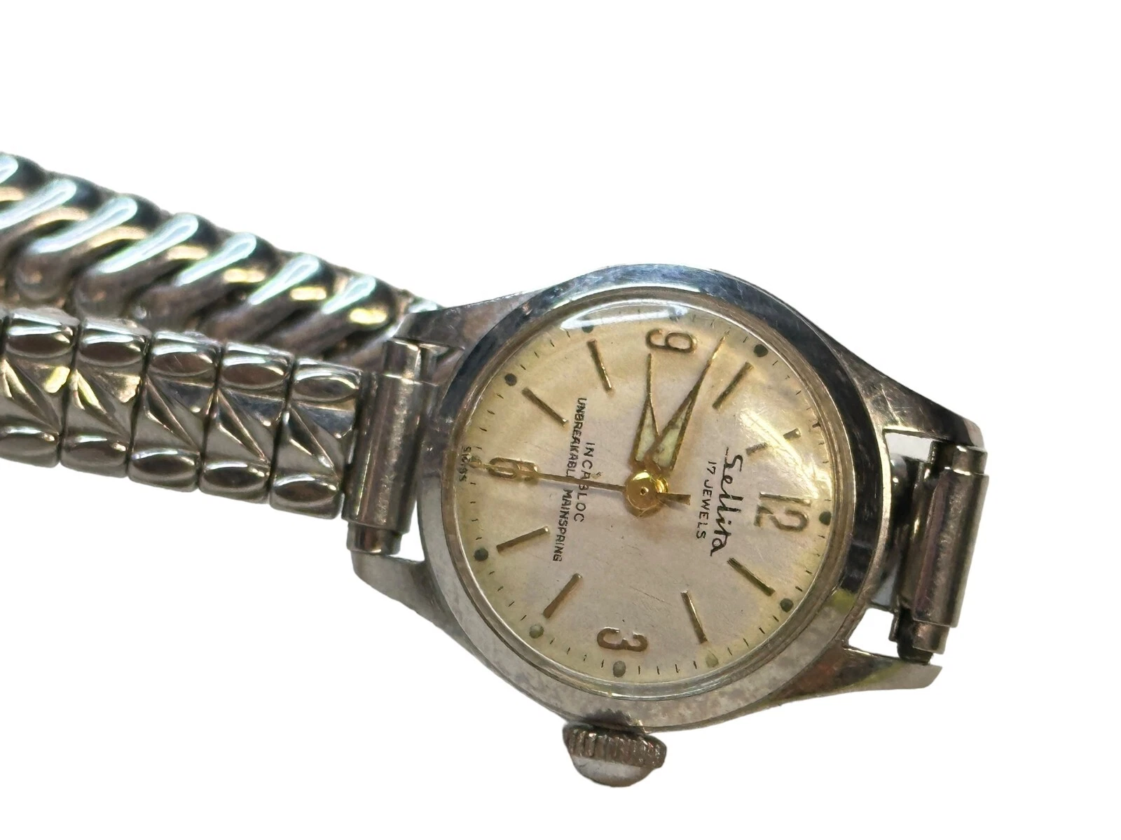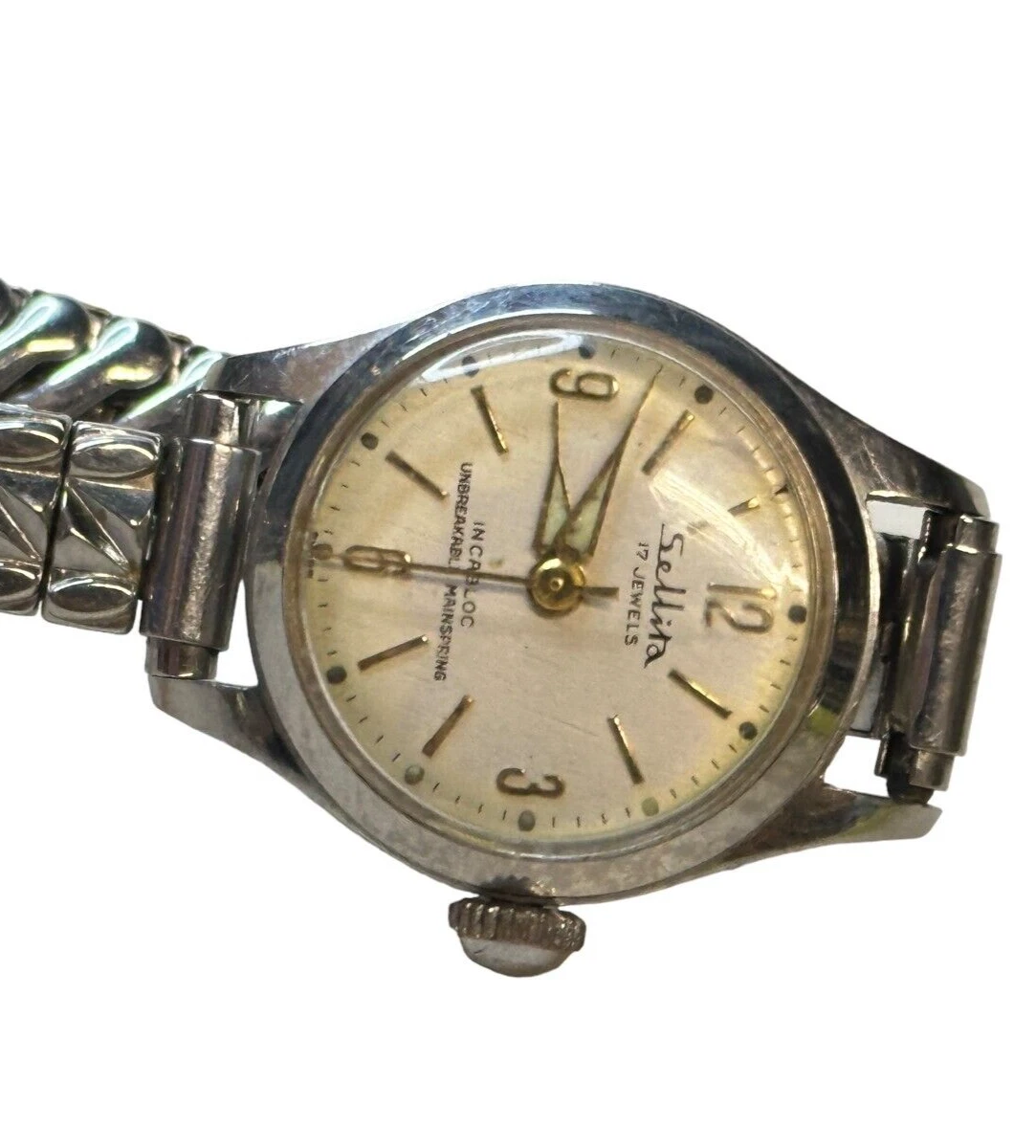 1950's Antique Sellita 17 Jewels Incabloc Ladies Wrist Watch Not Working As is