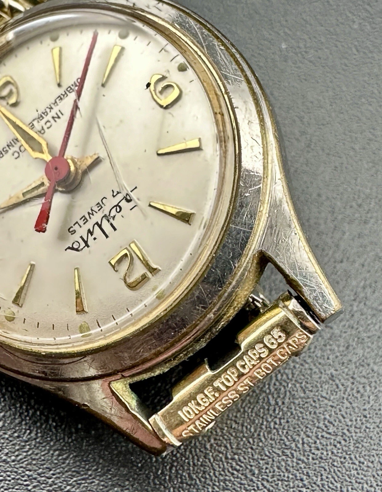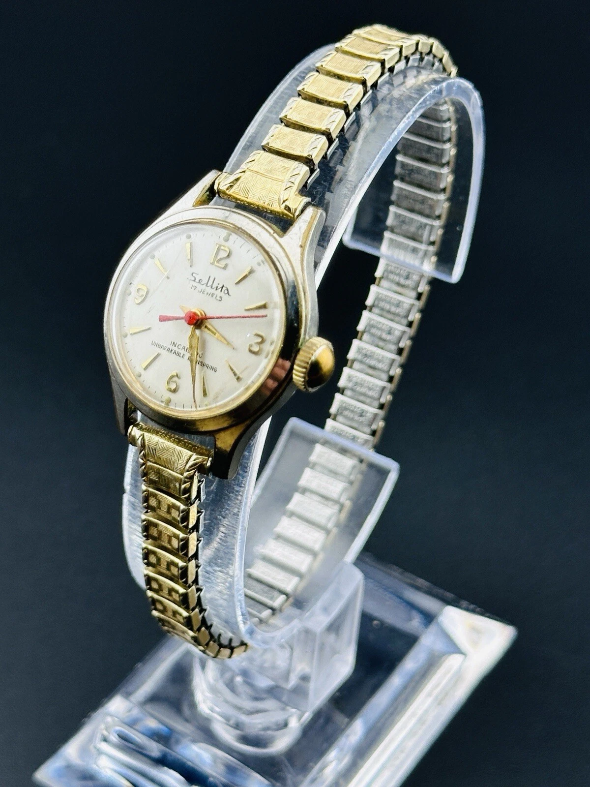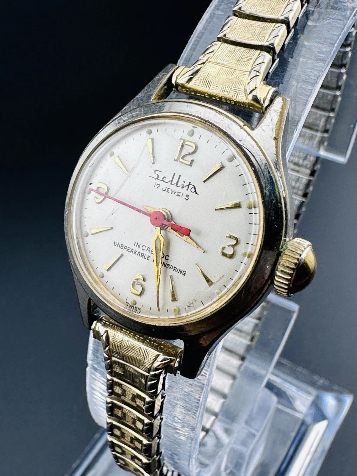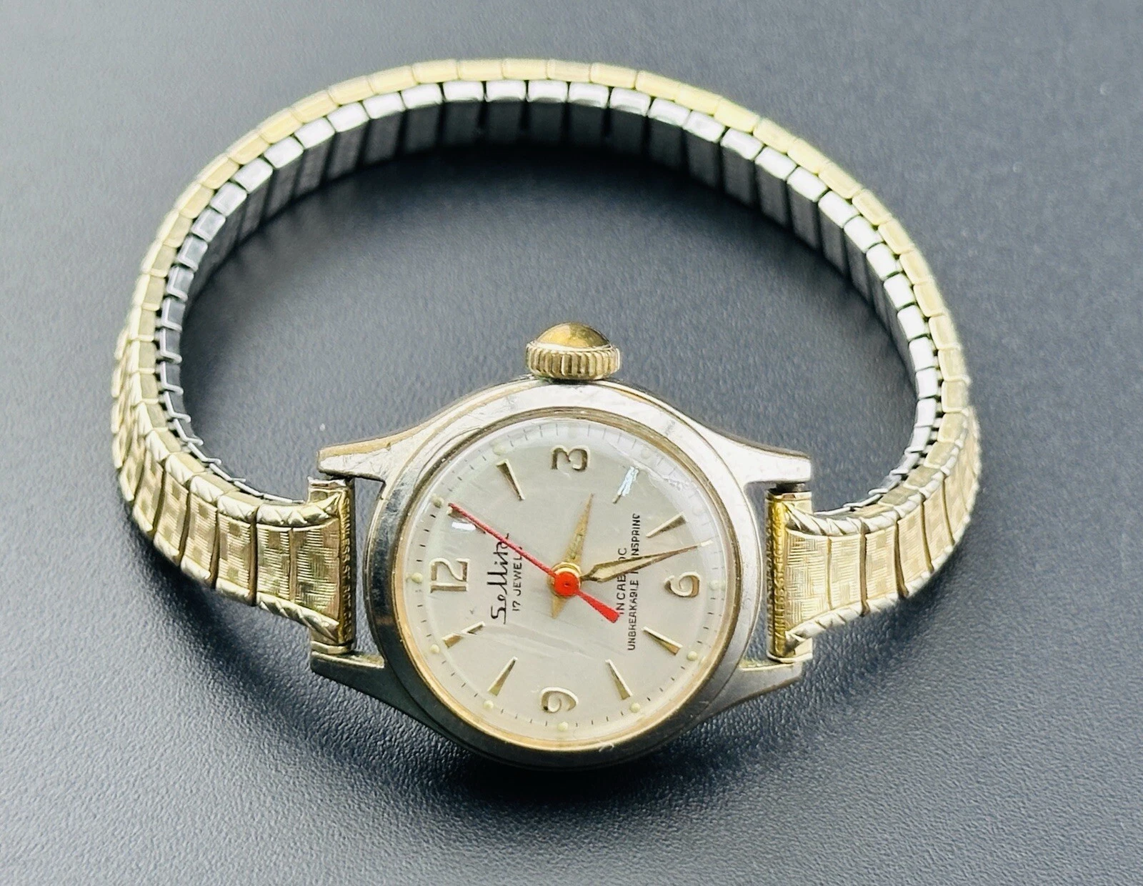 Working Vintage Sellita 17 Jewels Incabloc Ladies Watch 10K GF Red Seconds L2
