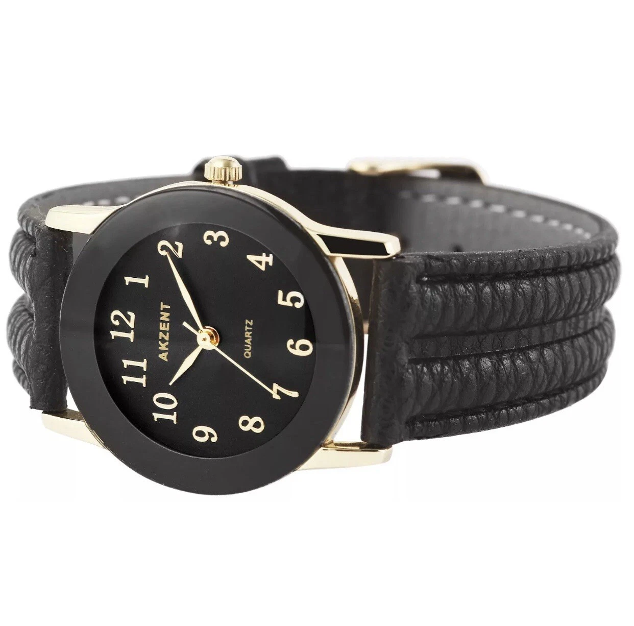 Women's Watch Black Gold Real Leather Wrist Watch Quartz U432