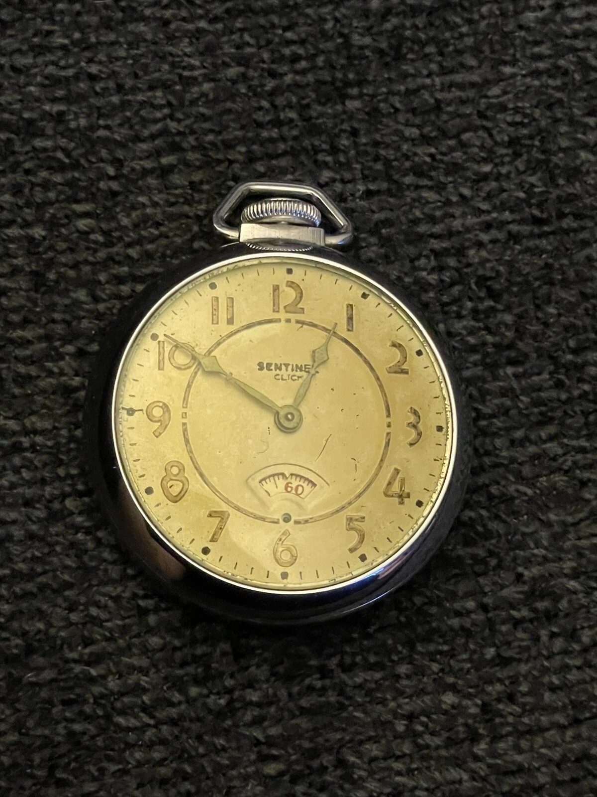 VINTAGE SENTINEL CLICK POCKET WATCH - WORKING. Free shipping!