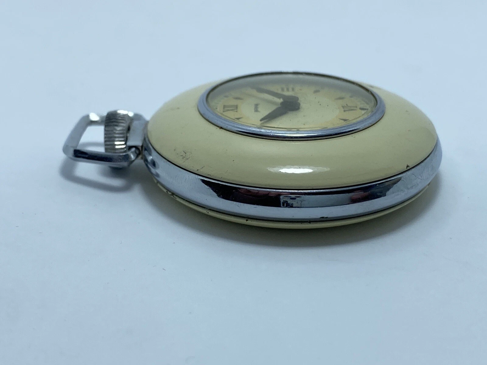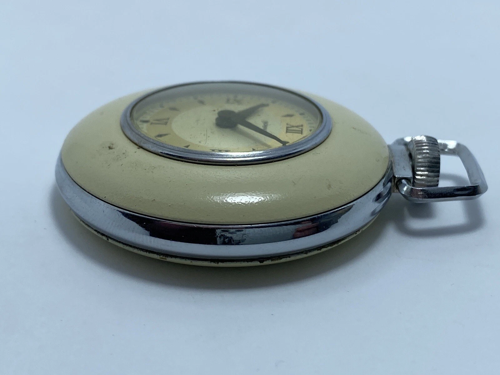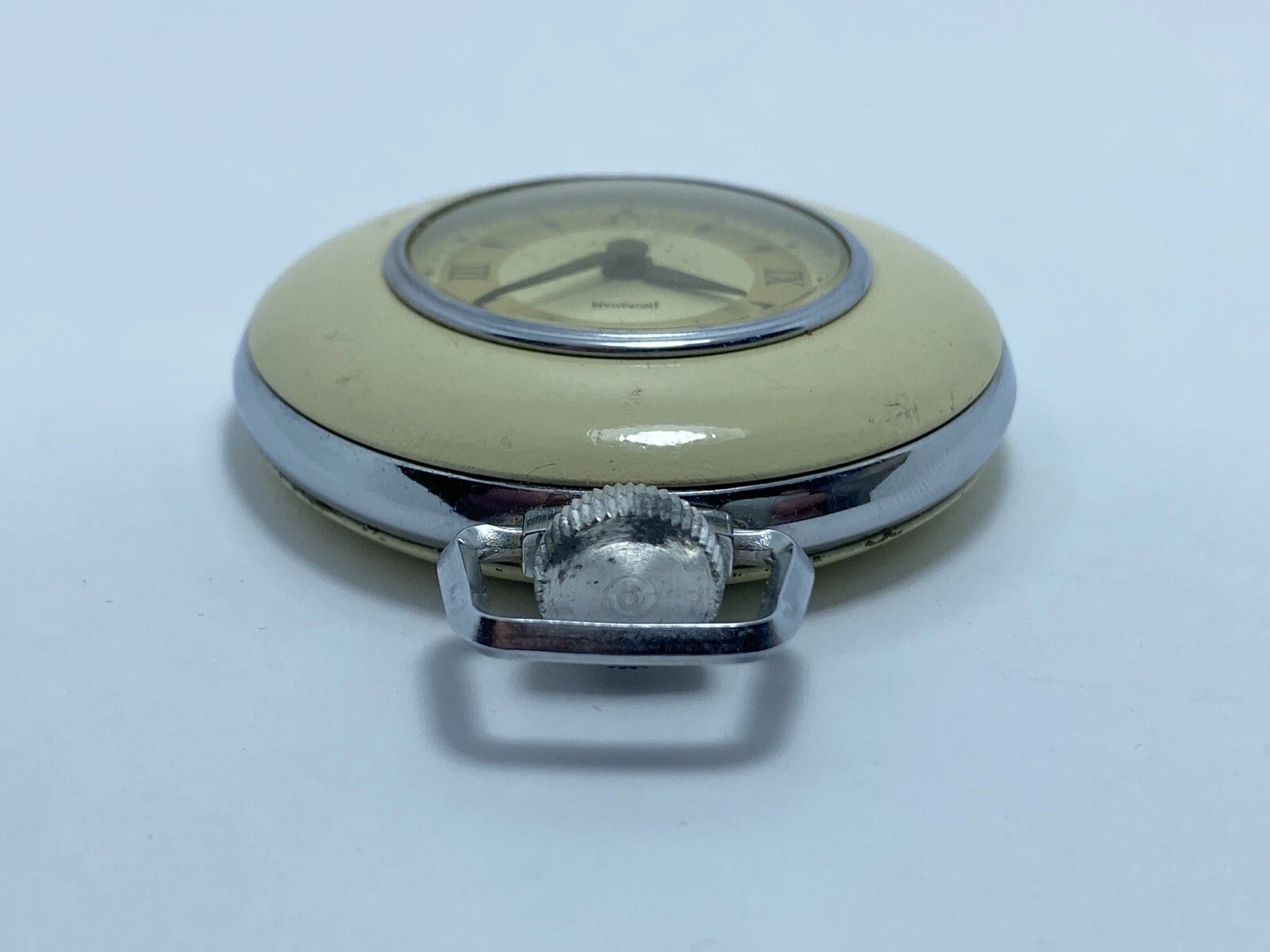 Vintage 1940's-1950's Original Beige Ingraham Watch Co. "Sentinel" Pocket Watch