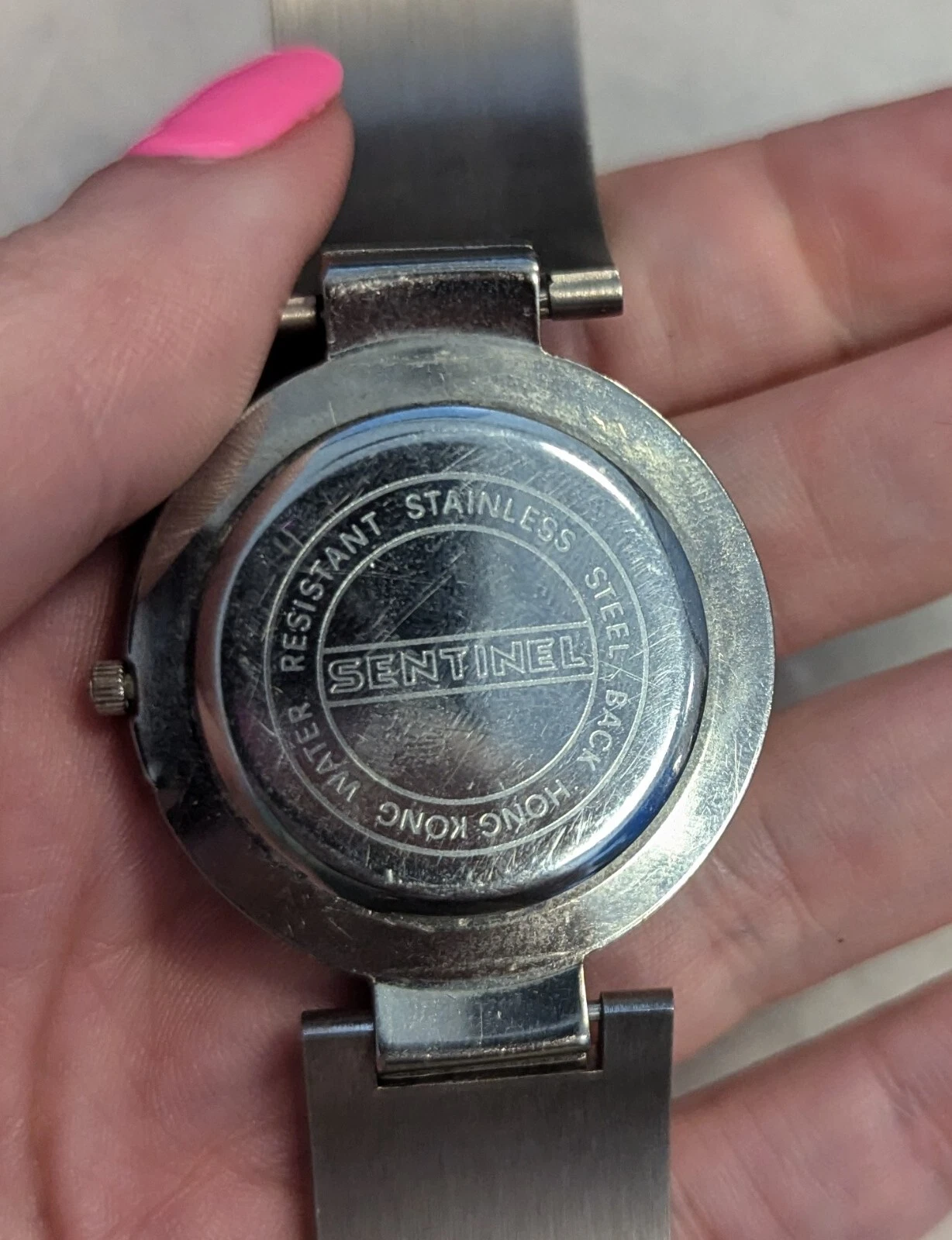 RARE Working Vintage Men's Sentinel Watch Silver Tone Black Accents