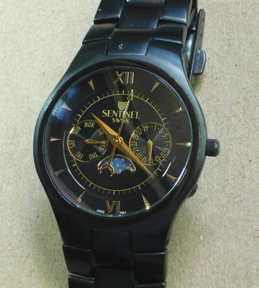 Sentinel, Boston, Bacher, Mens Swiss Watch.Sapphire Crystal, Moon-phase,Day/Date