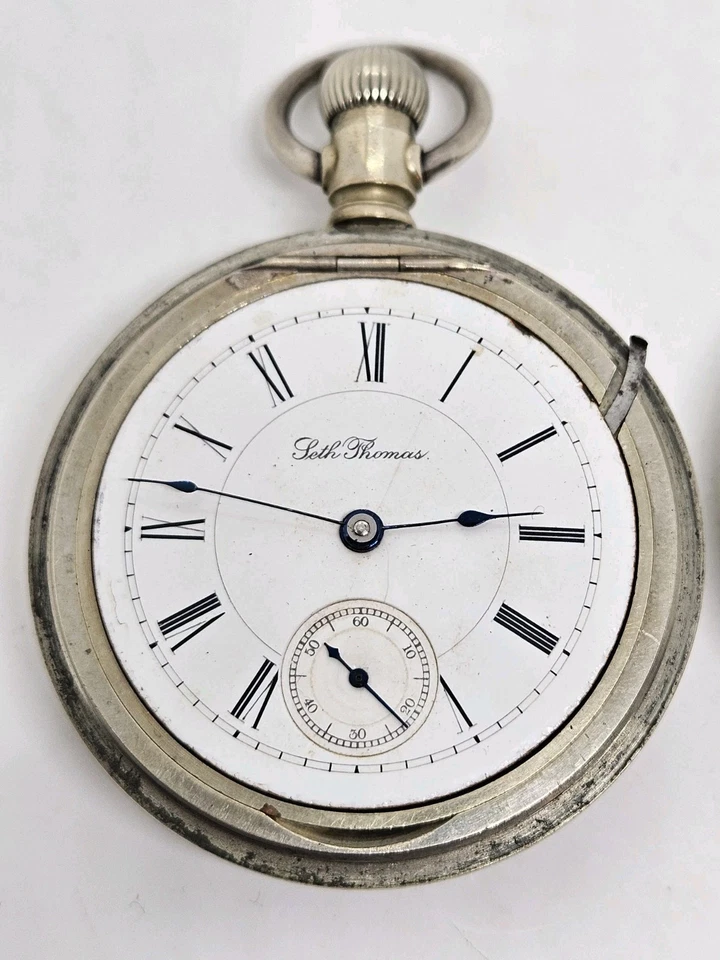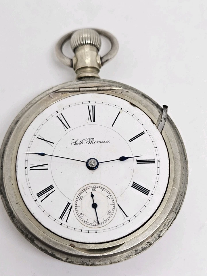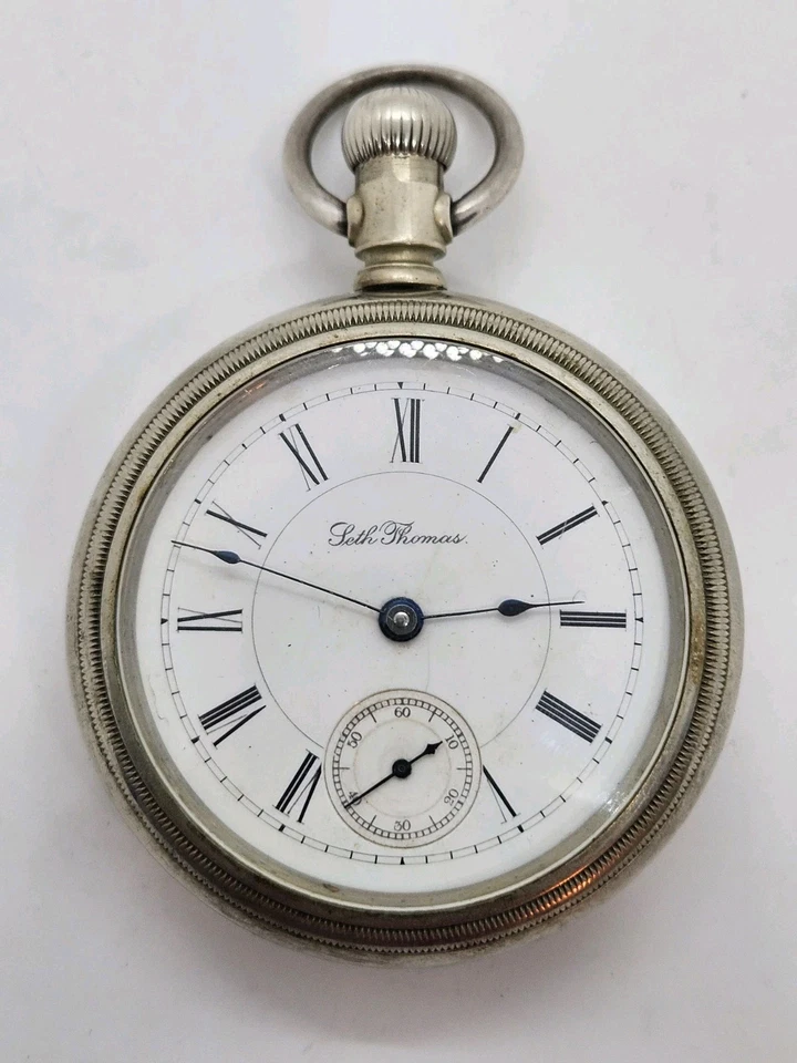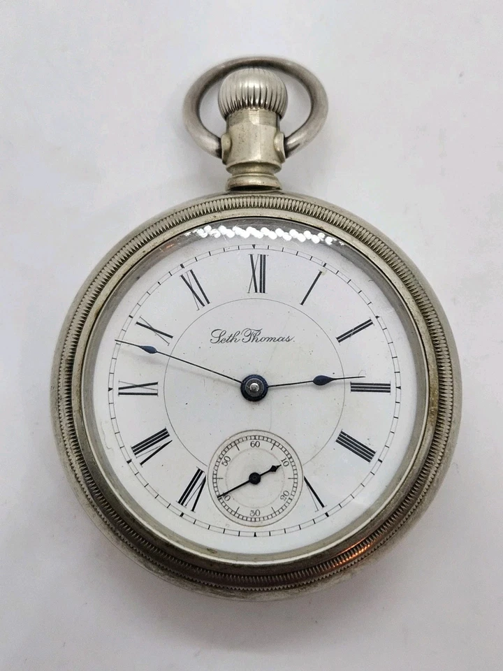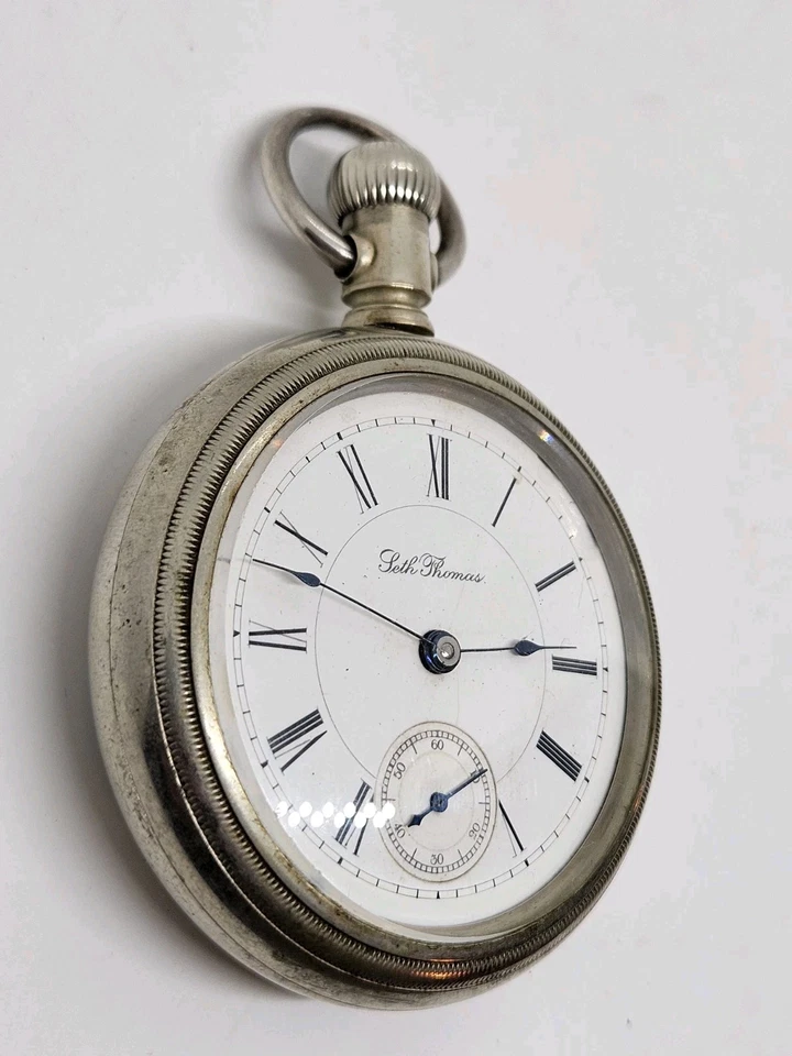 Antique Working 1893 SETH THOMAS Gents Victorian Nickel Silver Pocket Watch 18s