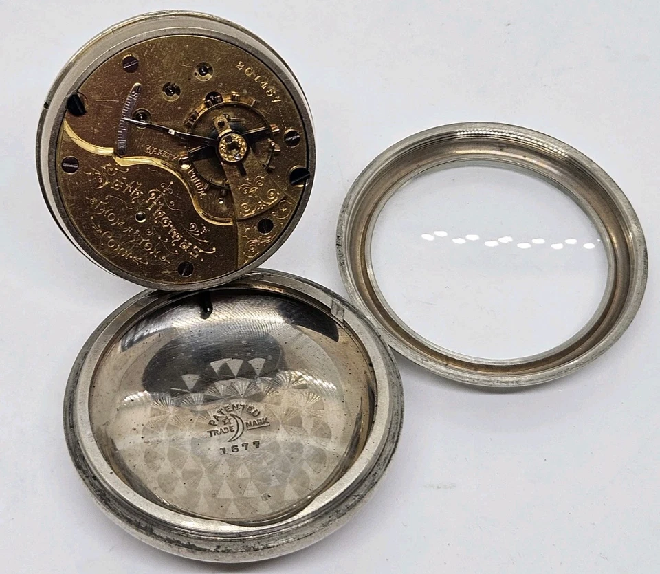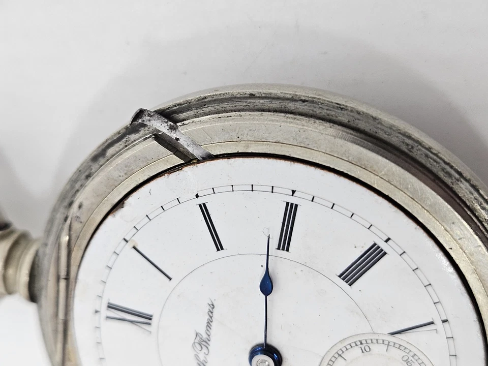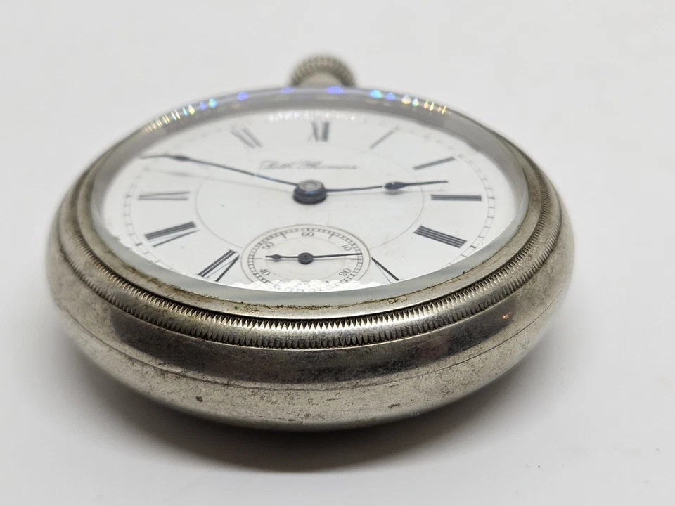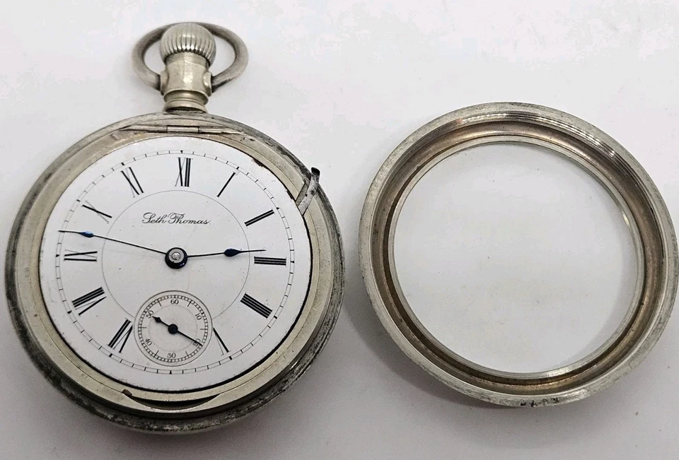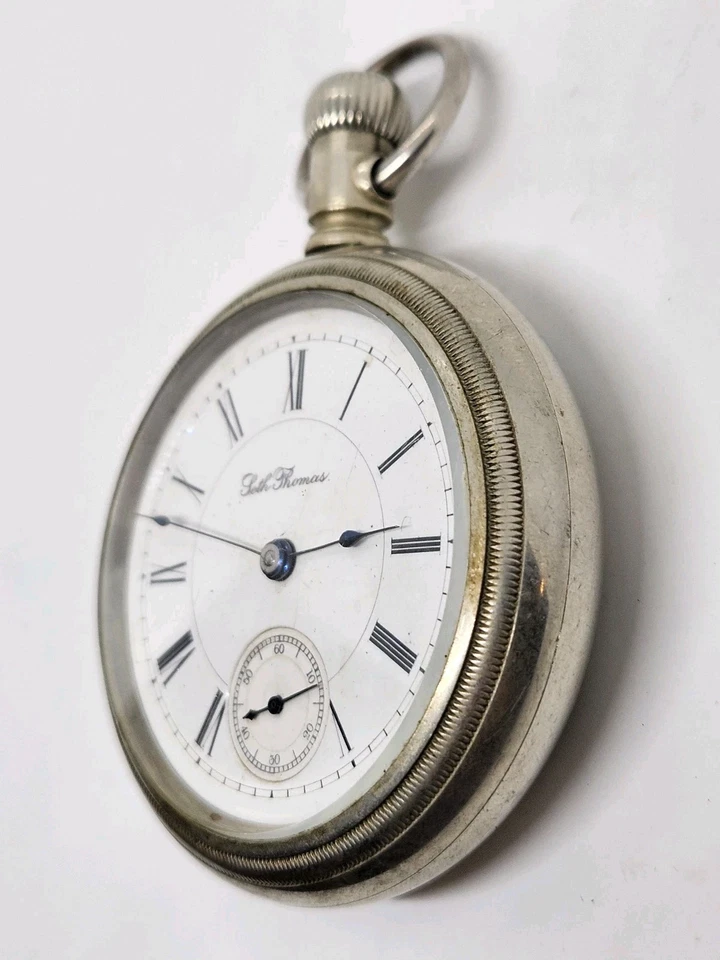 Antique Working 1893 SETH THOMAS Gents Victorian Nickel Silver Pocket Watch 18s