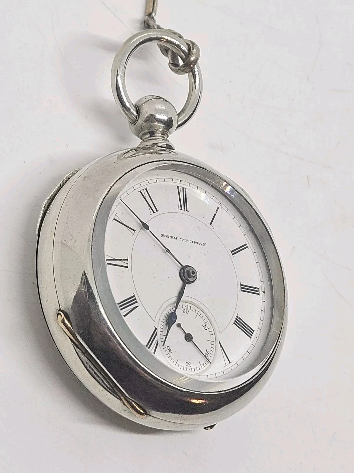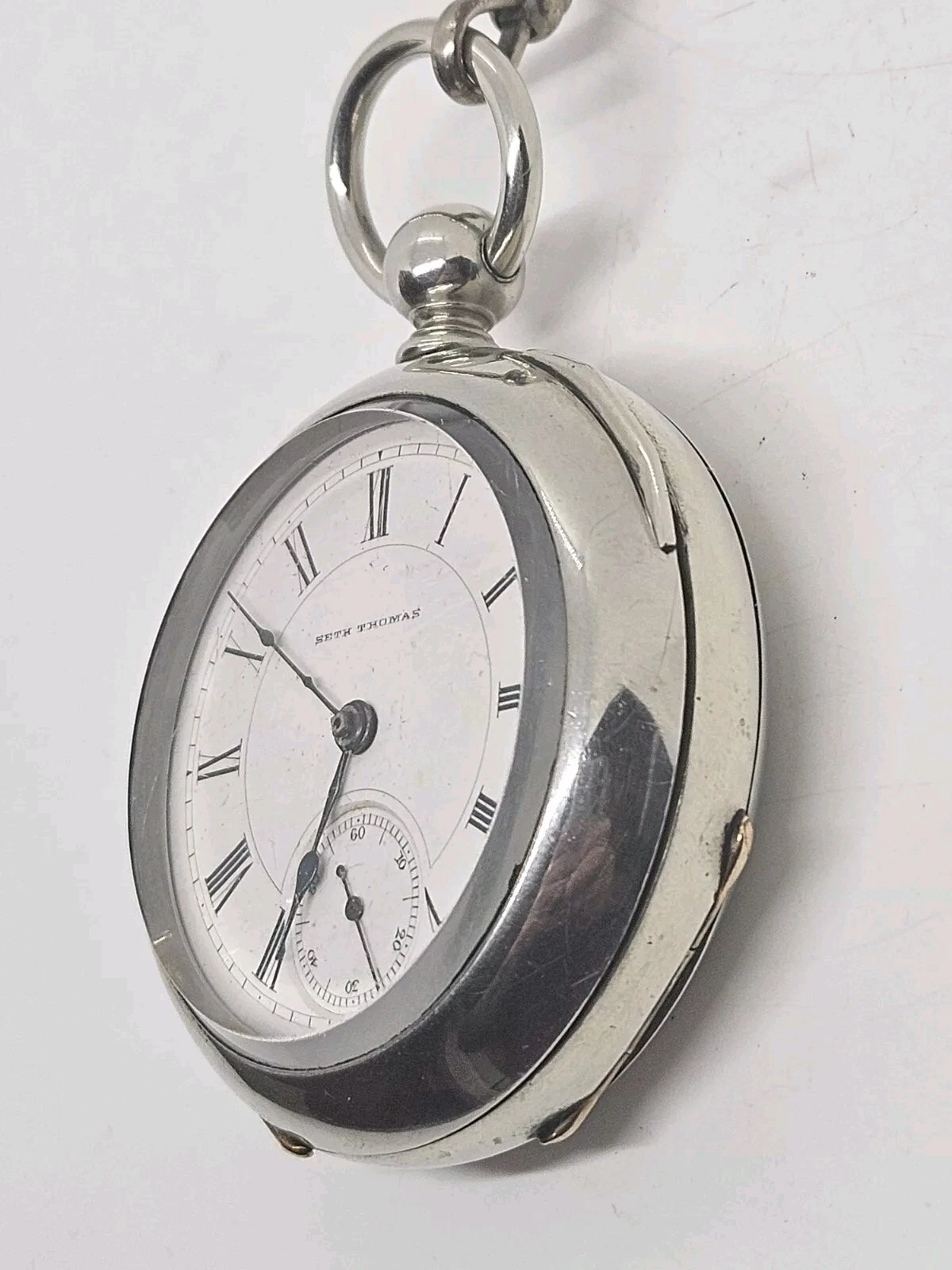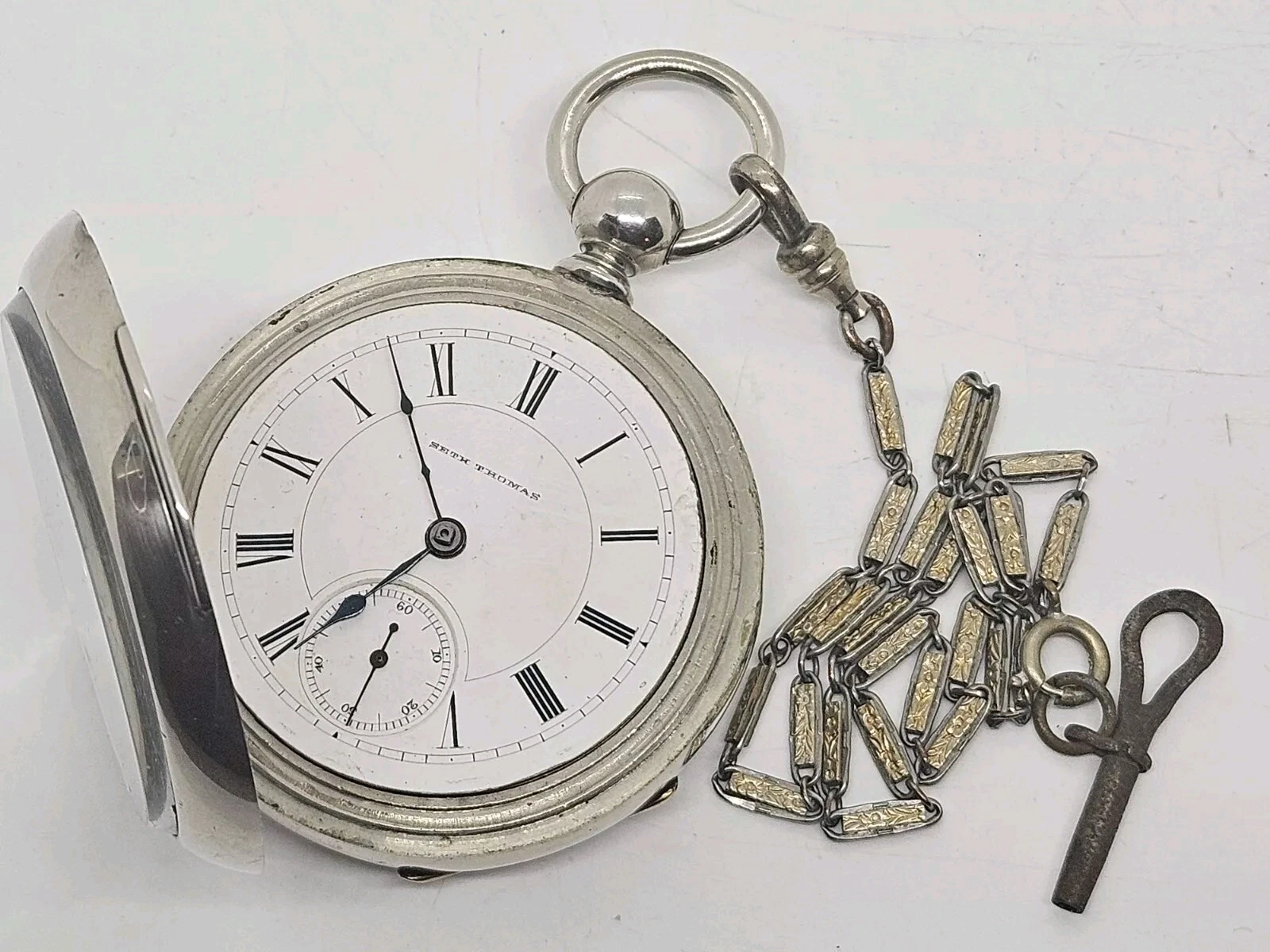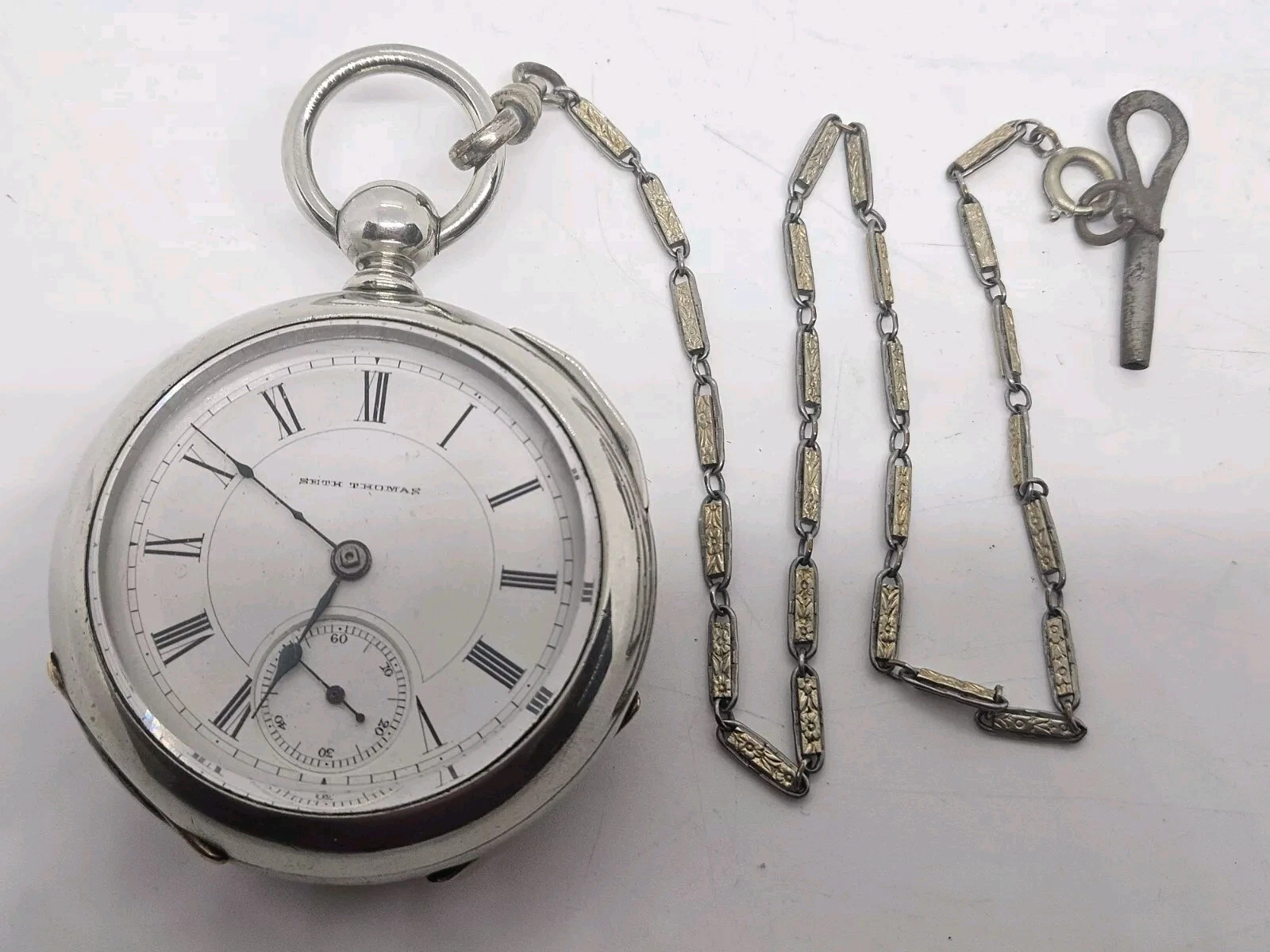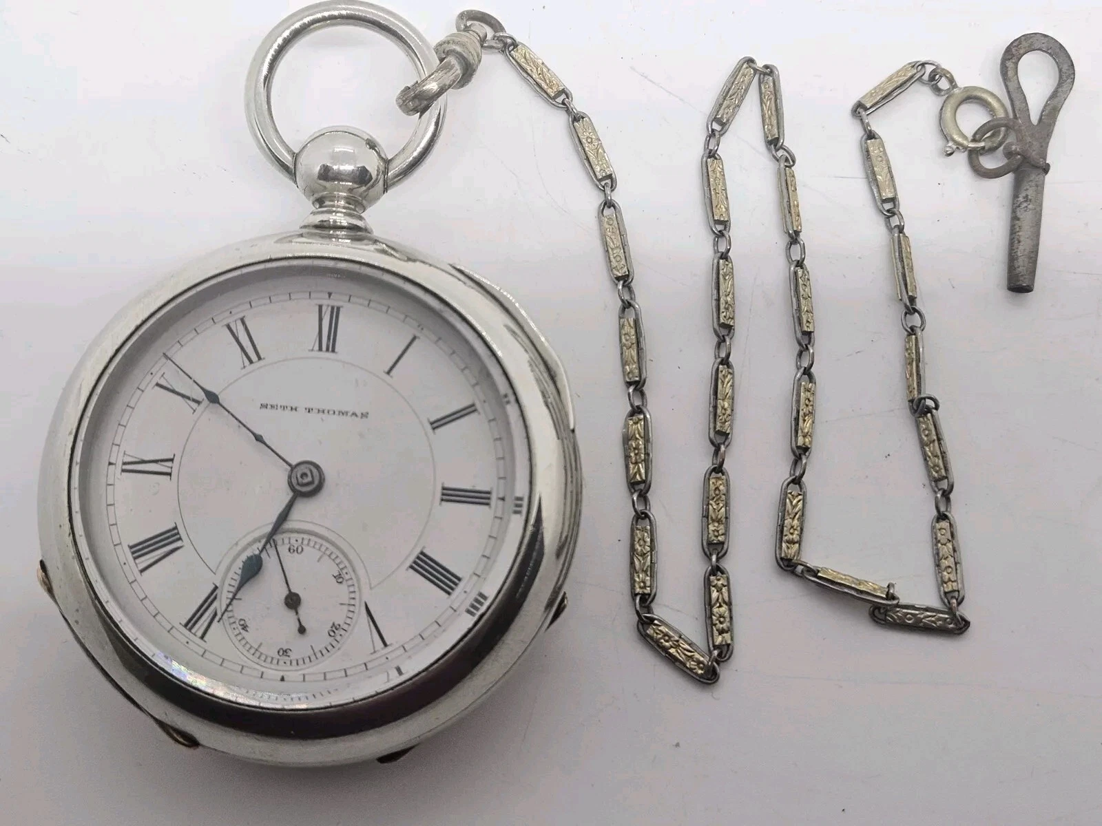 Antique Working 1890 SETH THOMAS Victorian Gents 'Key Wind' Pocket Watch w/Chain
