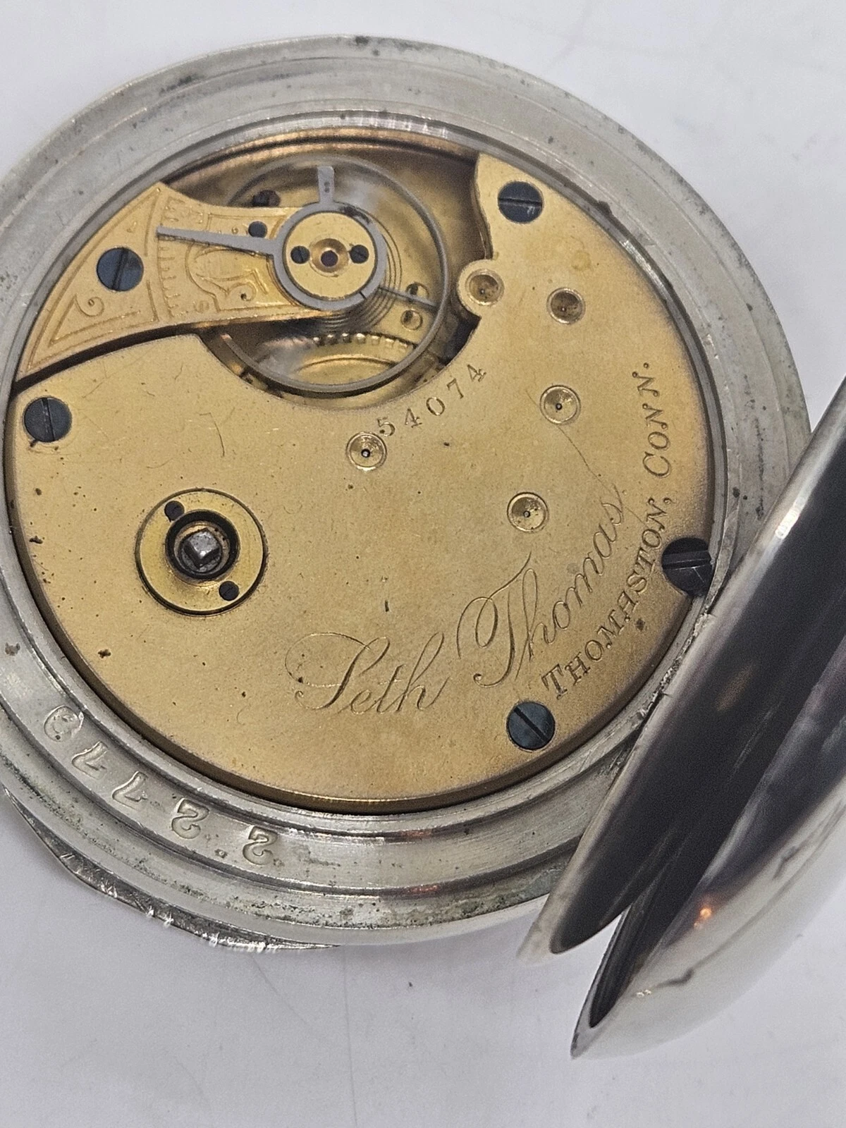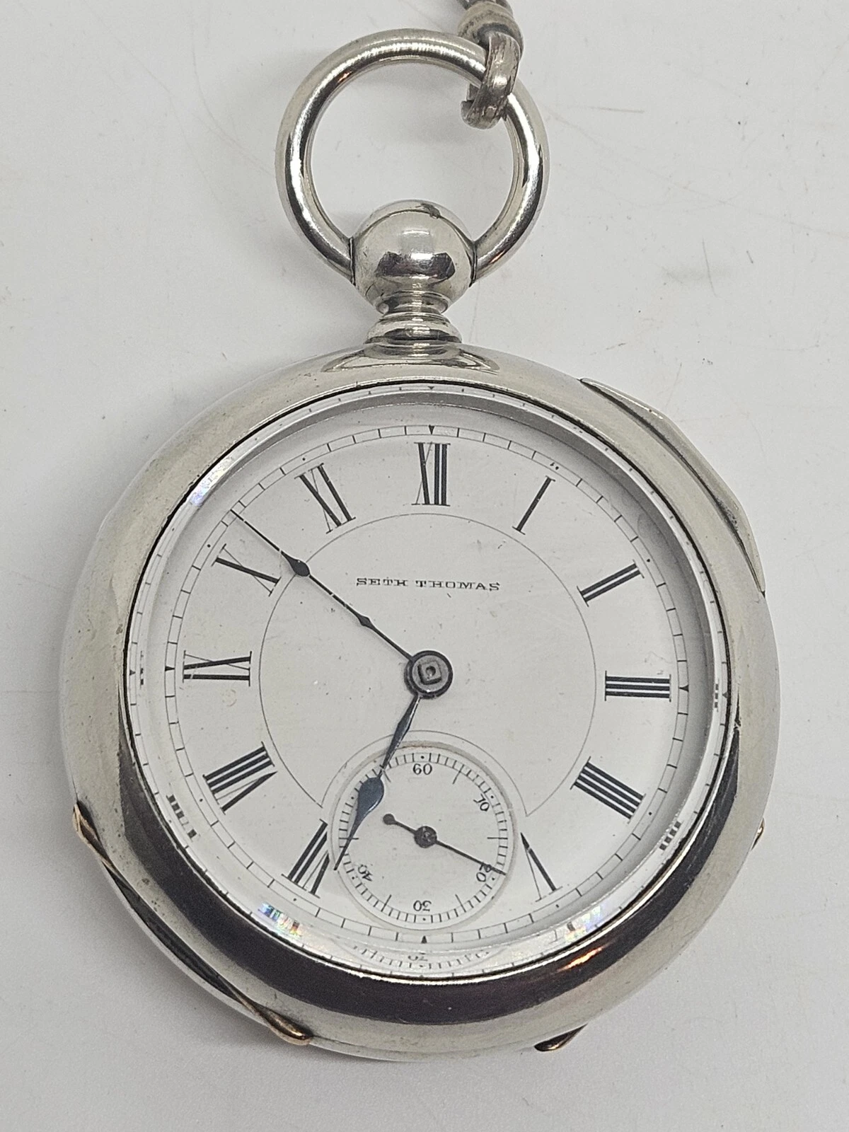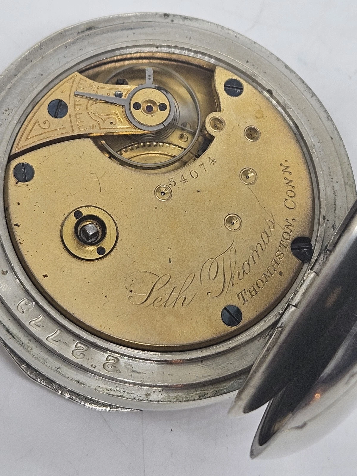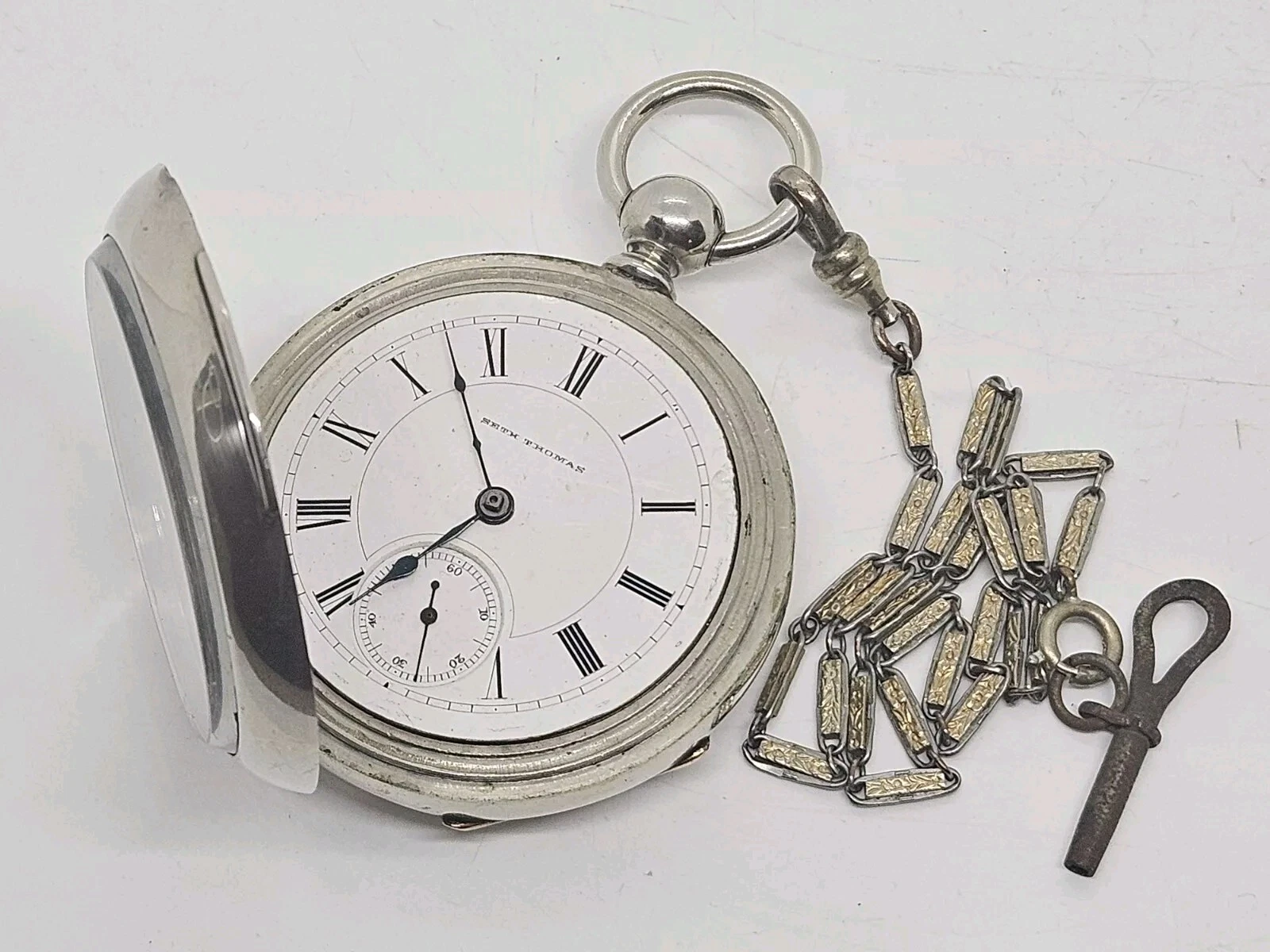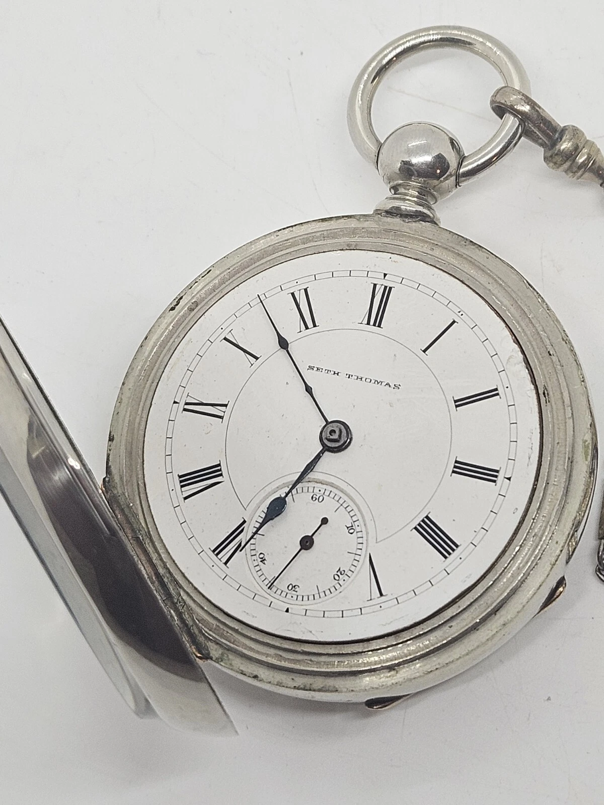 Antique Working 1890 SETH THOMAS Victorian Gents 'Key Wind' Pocket Watch w/Chain
