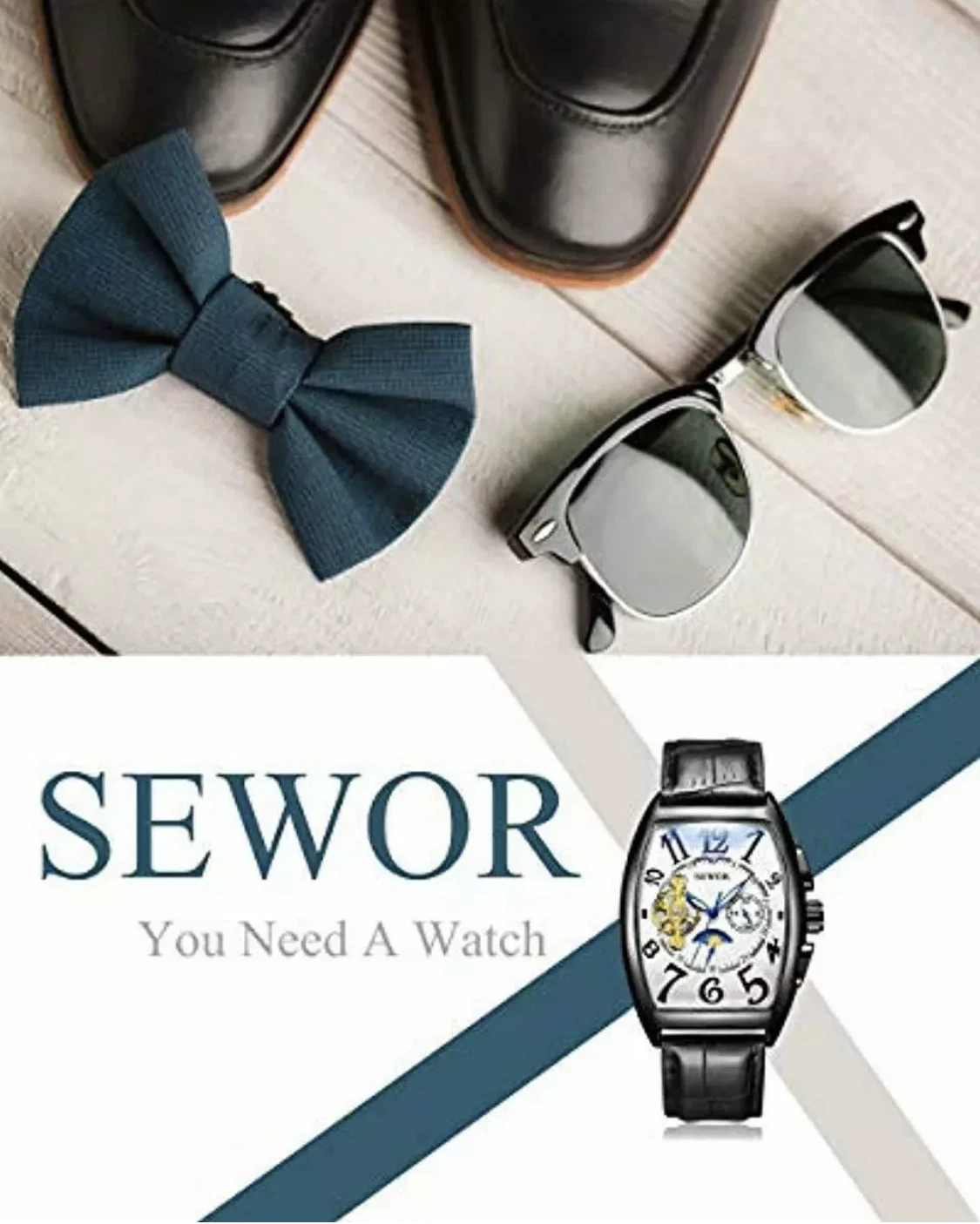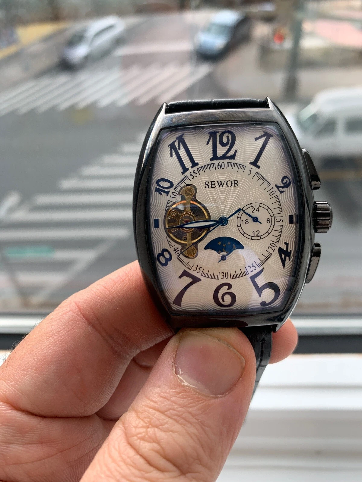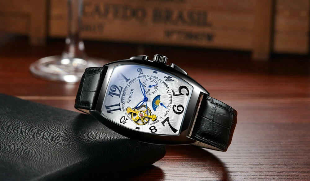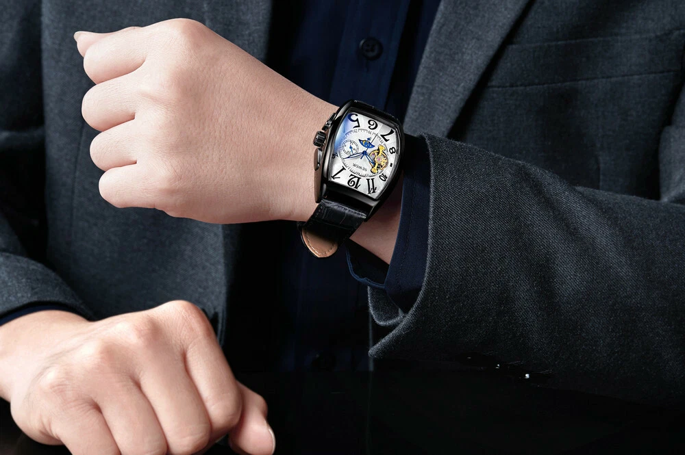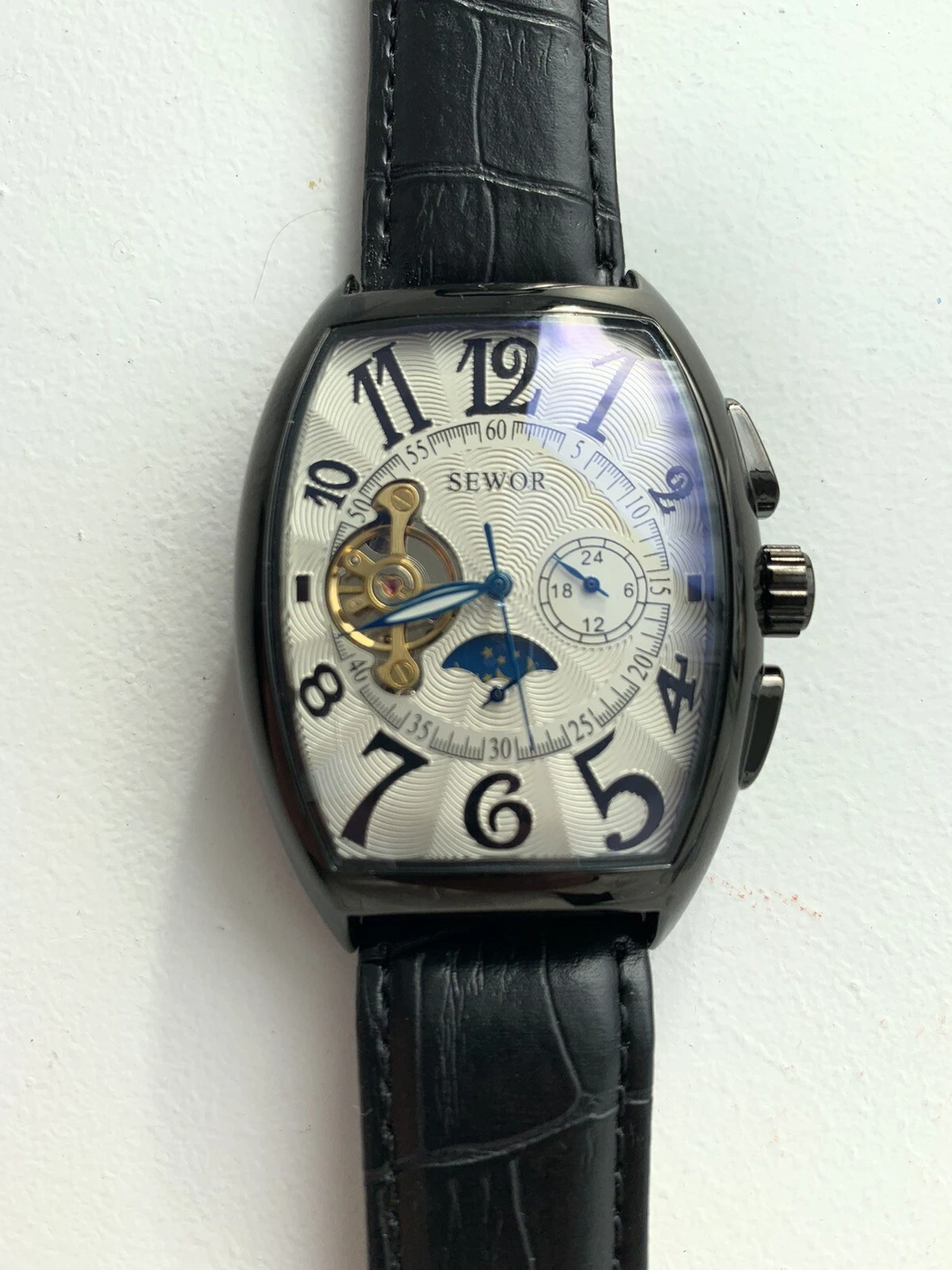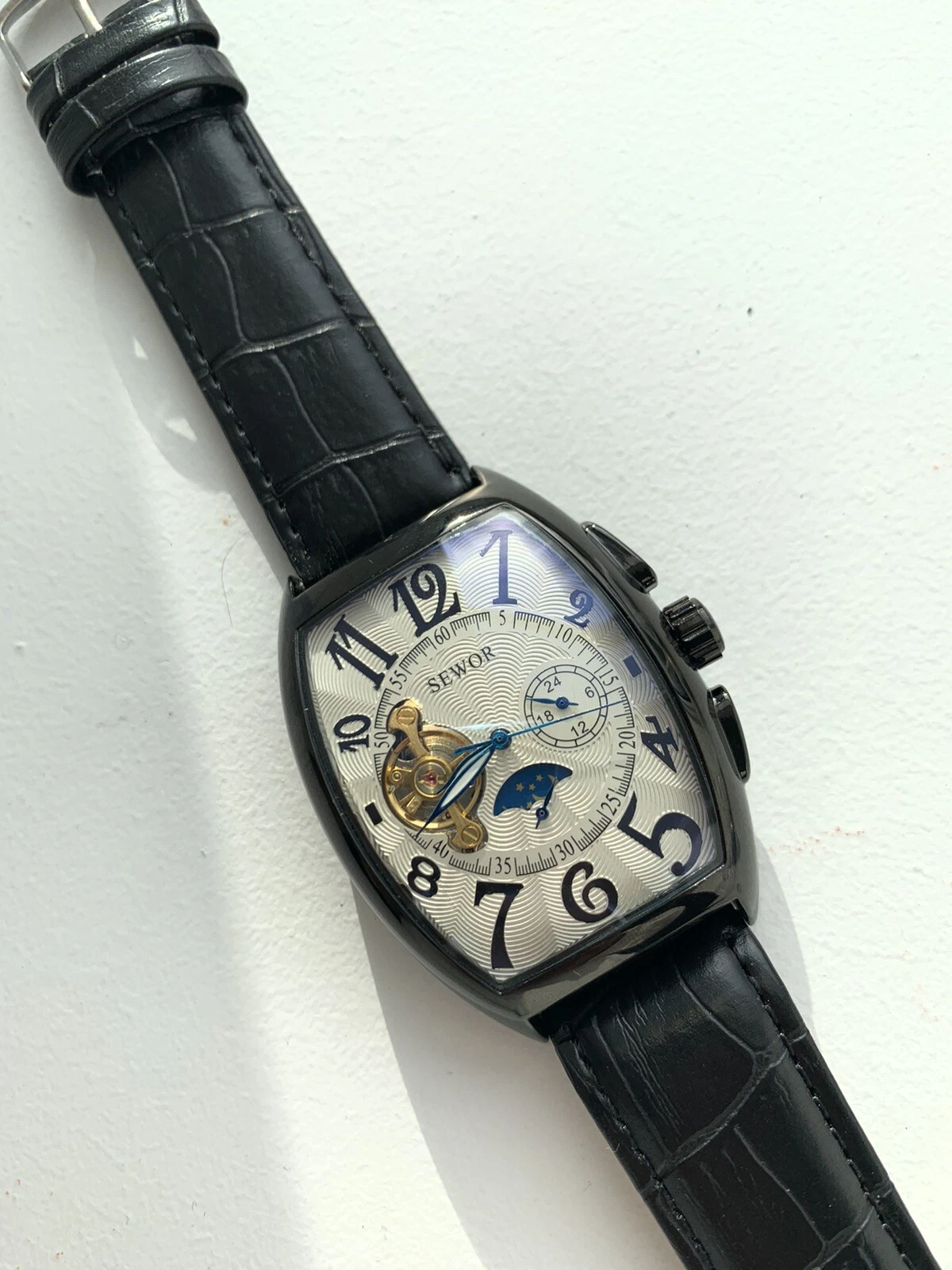 Luxury Automatic Mens Tourbillon Wrist Watch Mechanical Fashion Black & White