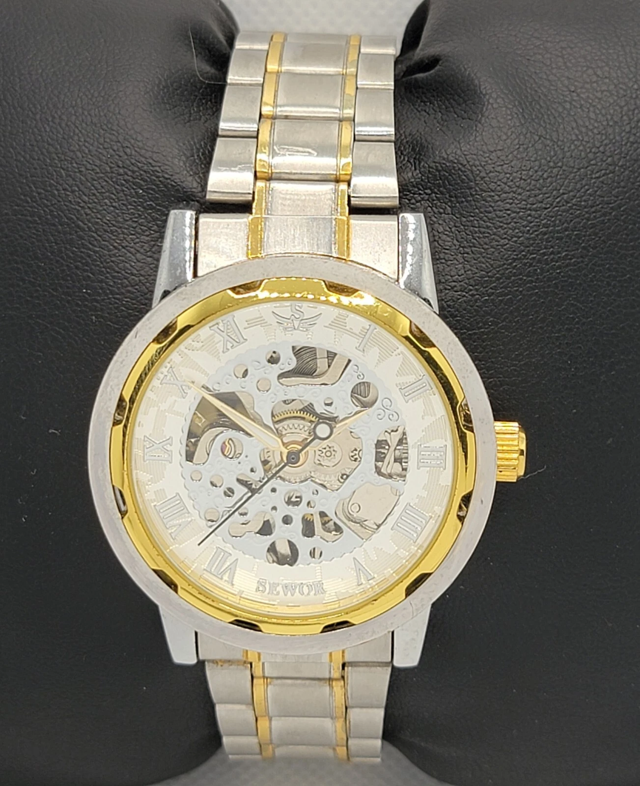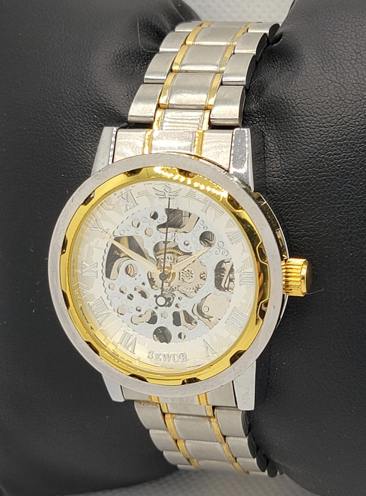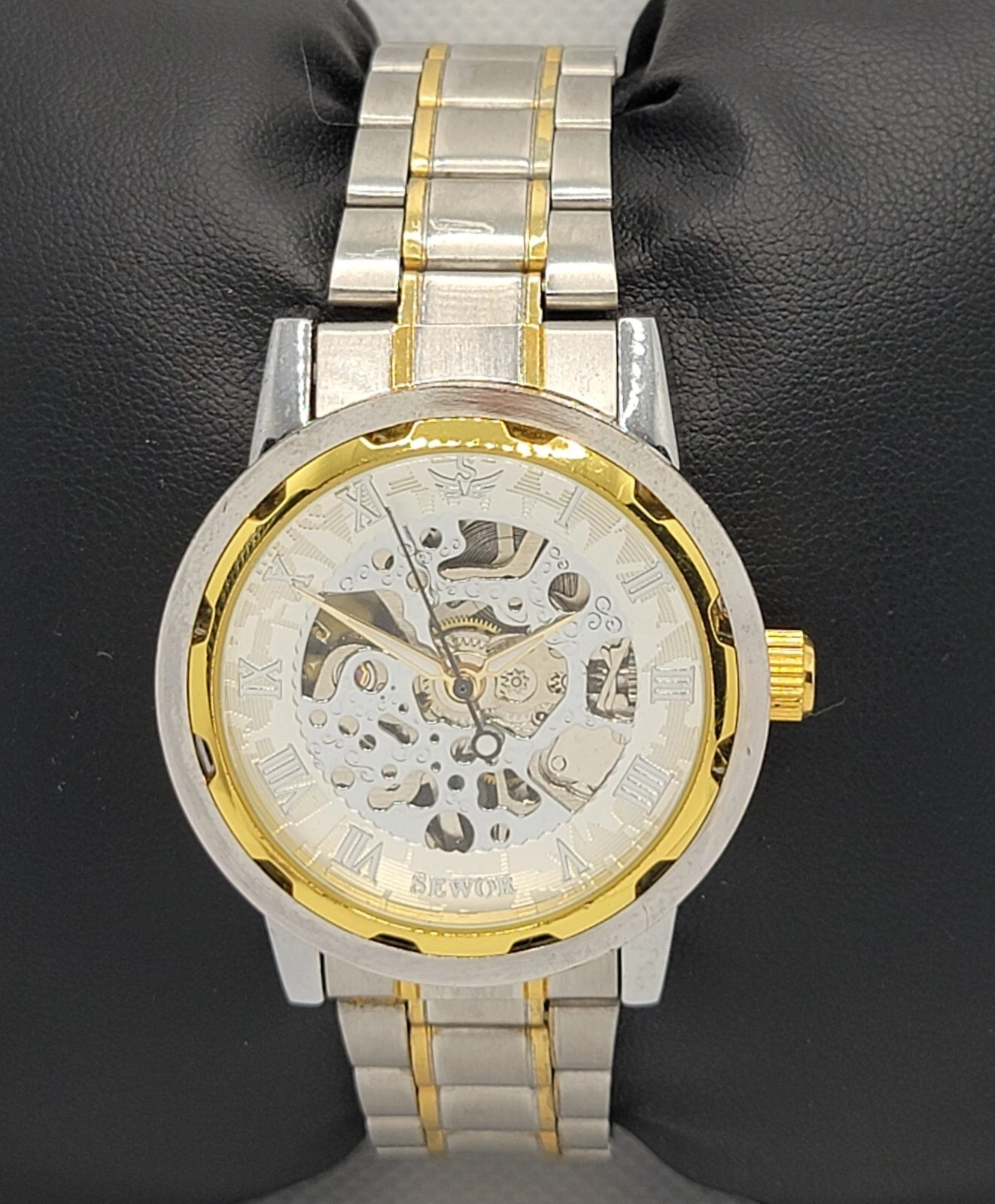 Mens Sewor Exhibition Silver Gold Tone Case Link Bracelet Manual Wind Watch M1