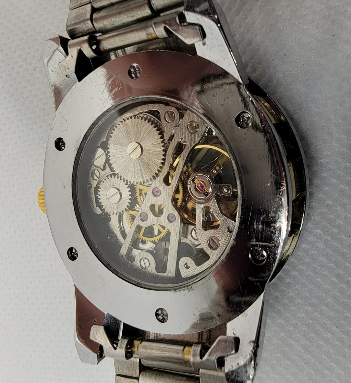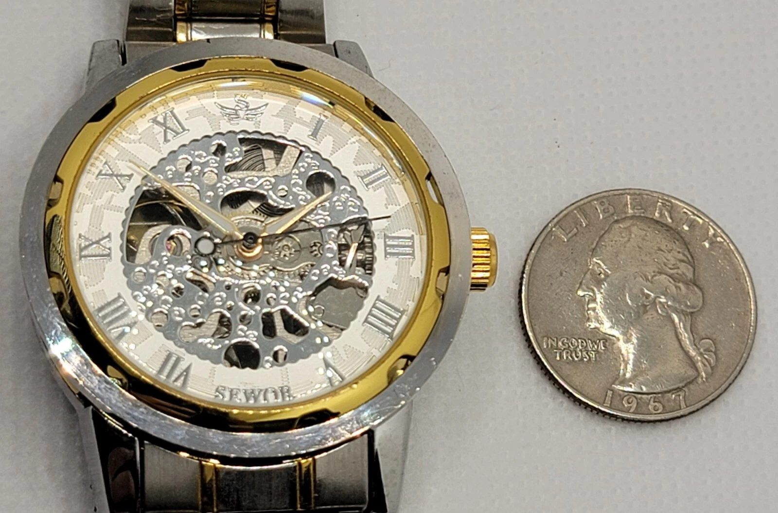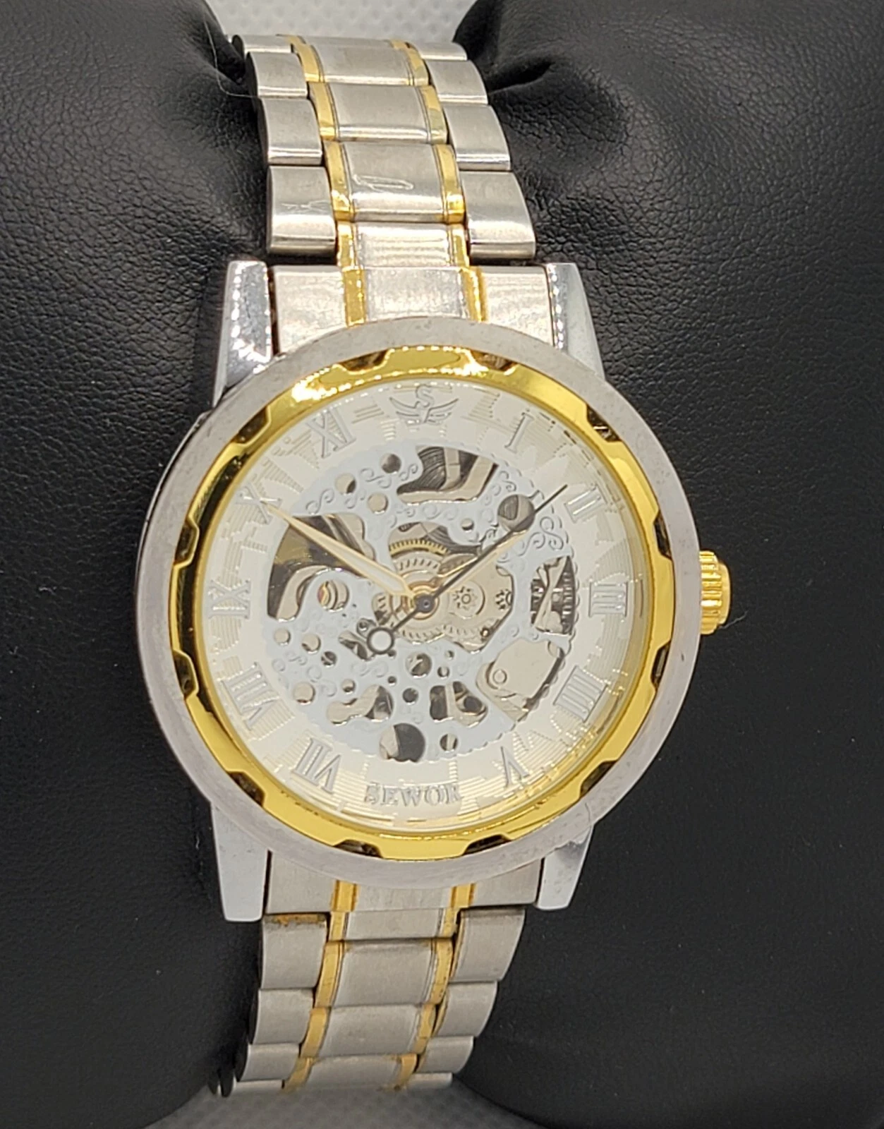 Mens Sewor Exhibition Silver Gold Tone Case Link Bracelet Manual Wind Watch M1