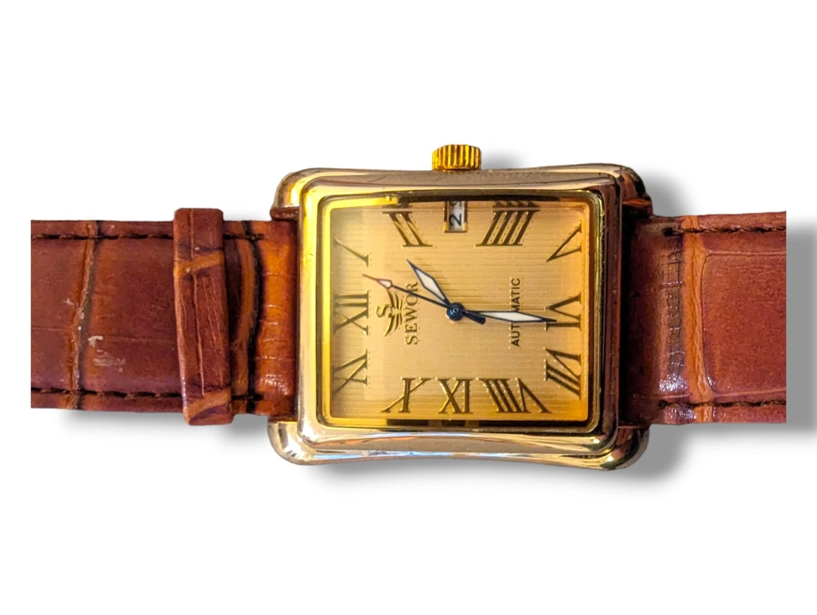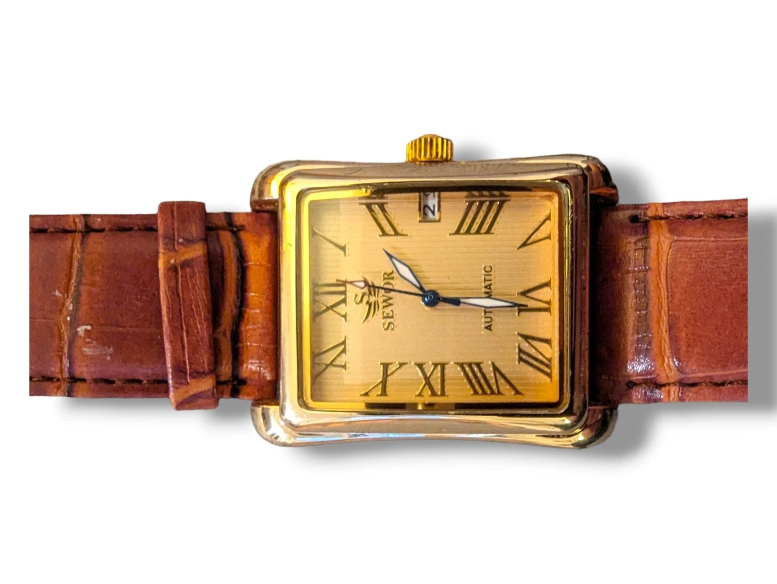 Retro Classic Sewor Art Deco Automatic Mechanical Mens Watch