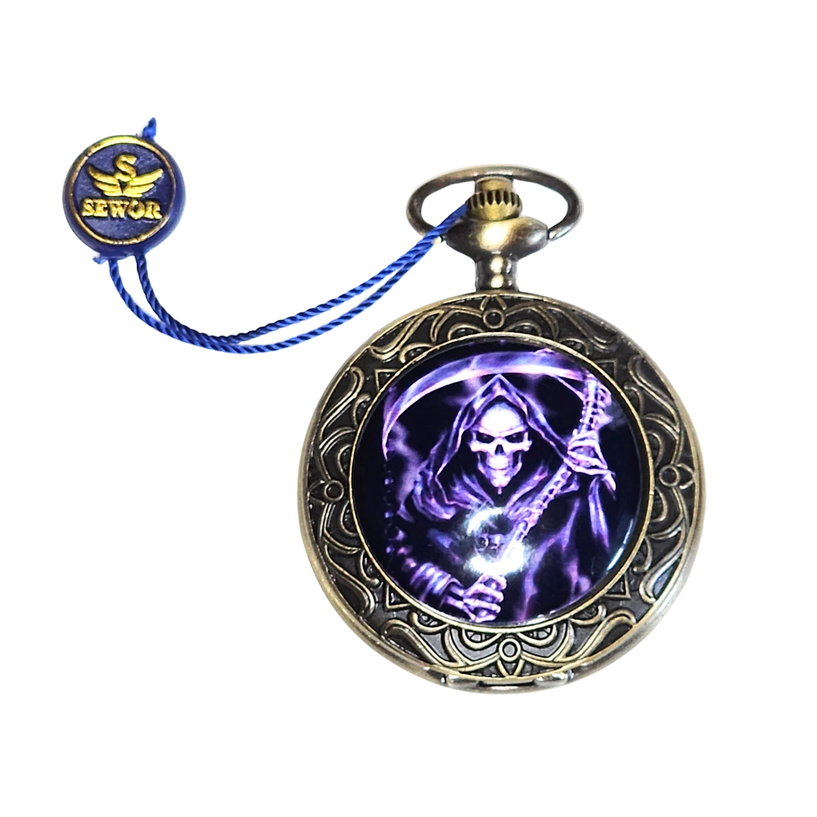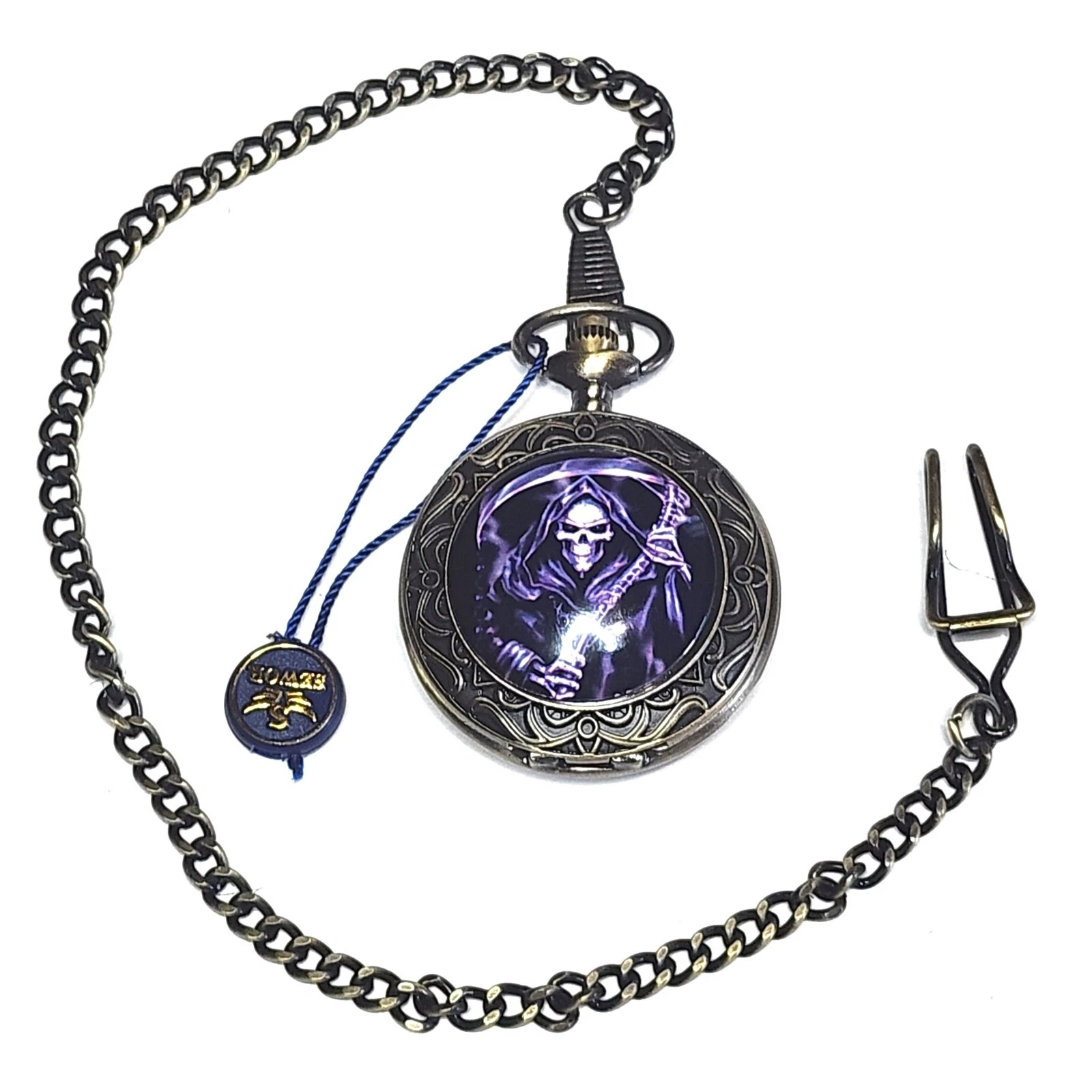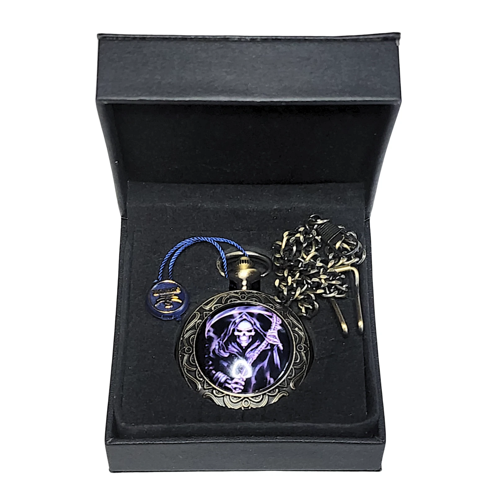Sewor Purple Demonic Grim Reaper Bronze Pocket Watch w/14.5" Bronze Chain NIB
