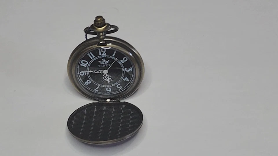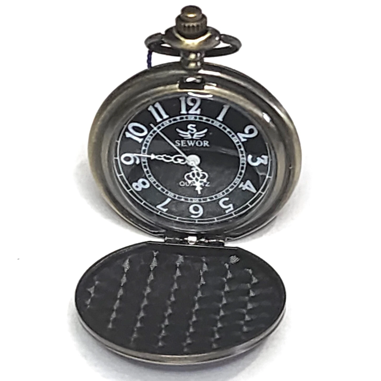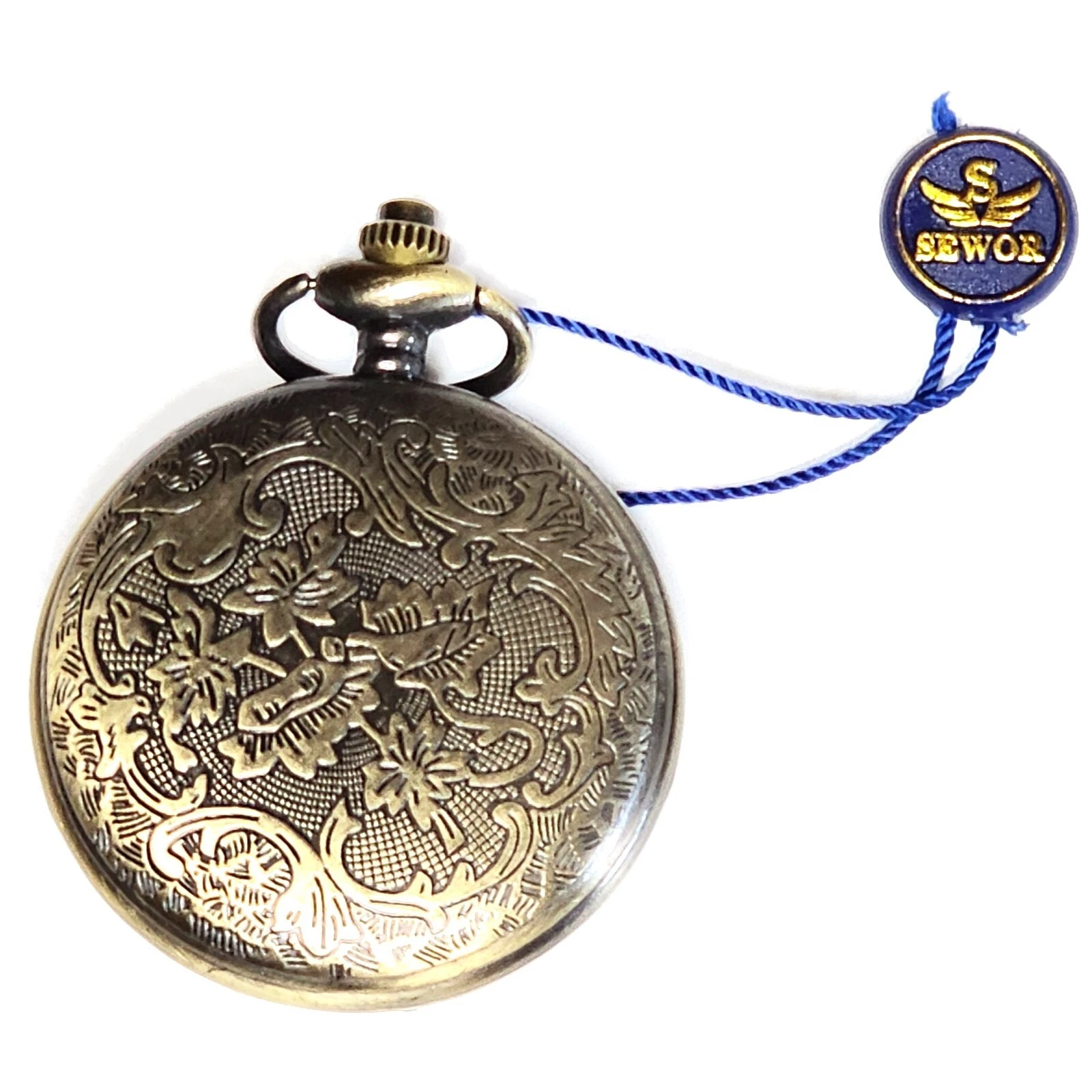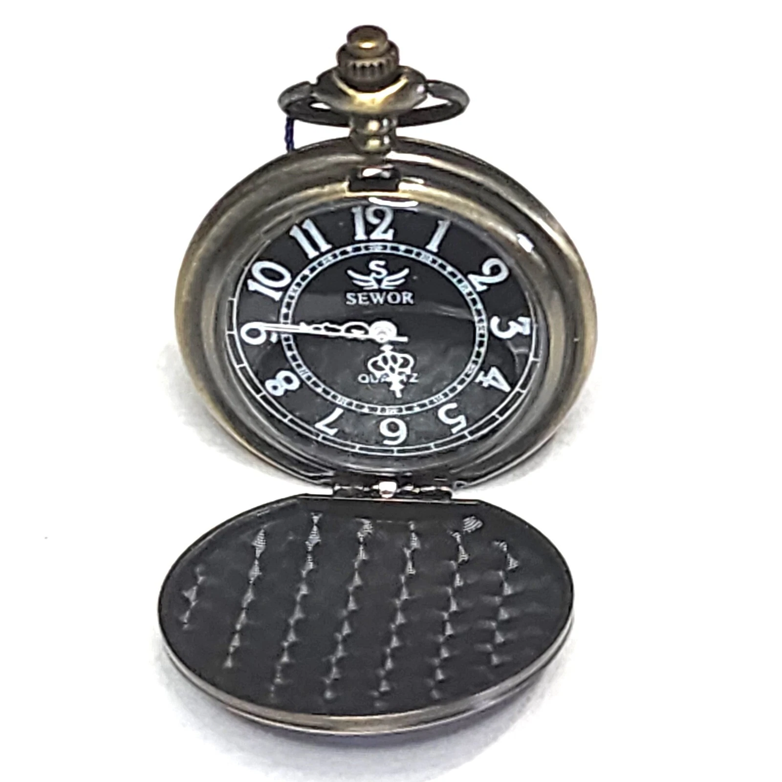 Sewor Purple Demonic Grim Reaper Bronze Pocket Watch w/14.5" Bronze Chain NIB