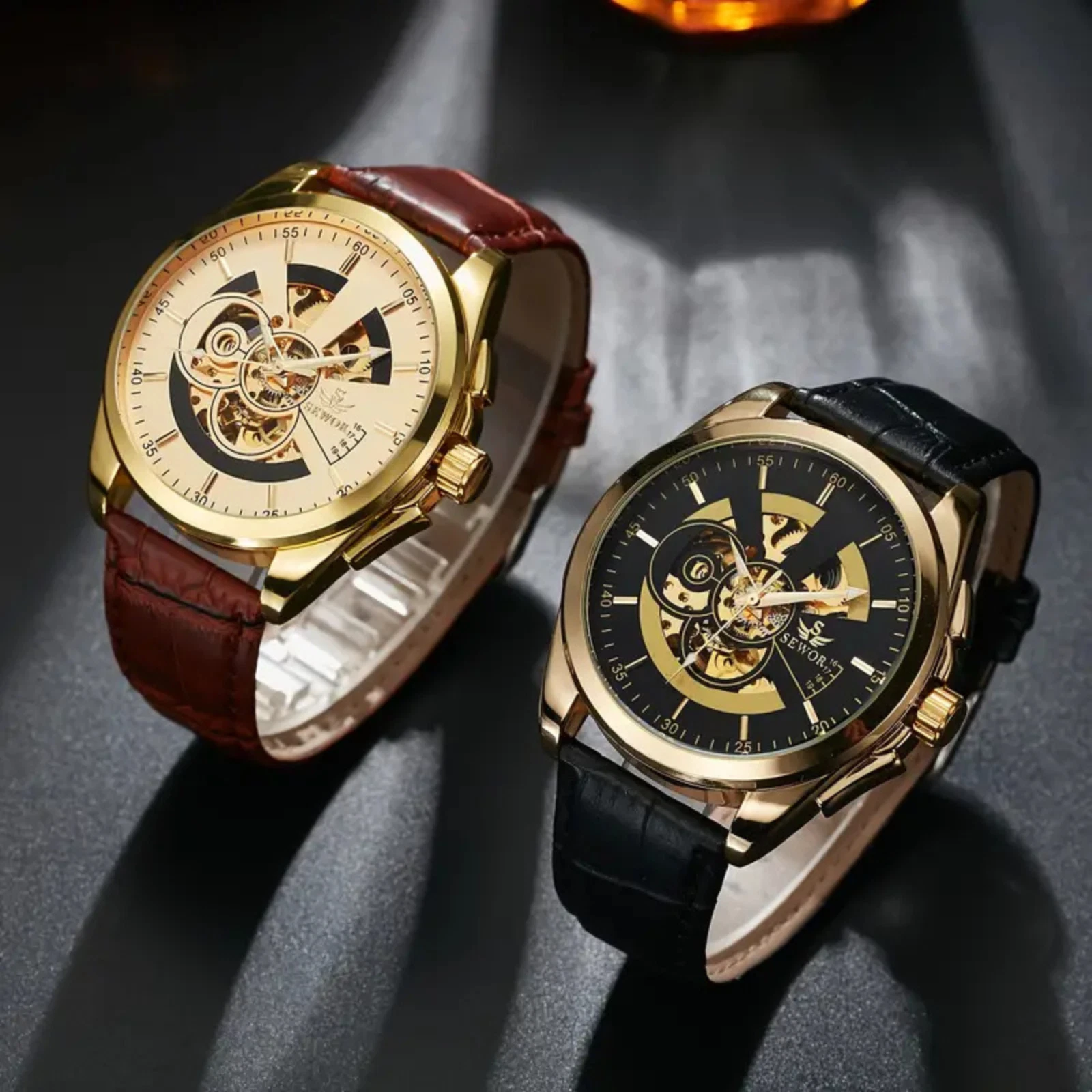 New Men's Classic Stainless Steel Vintage Sports, Business Watch leather straps