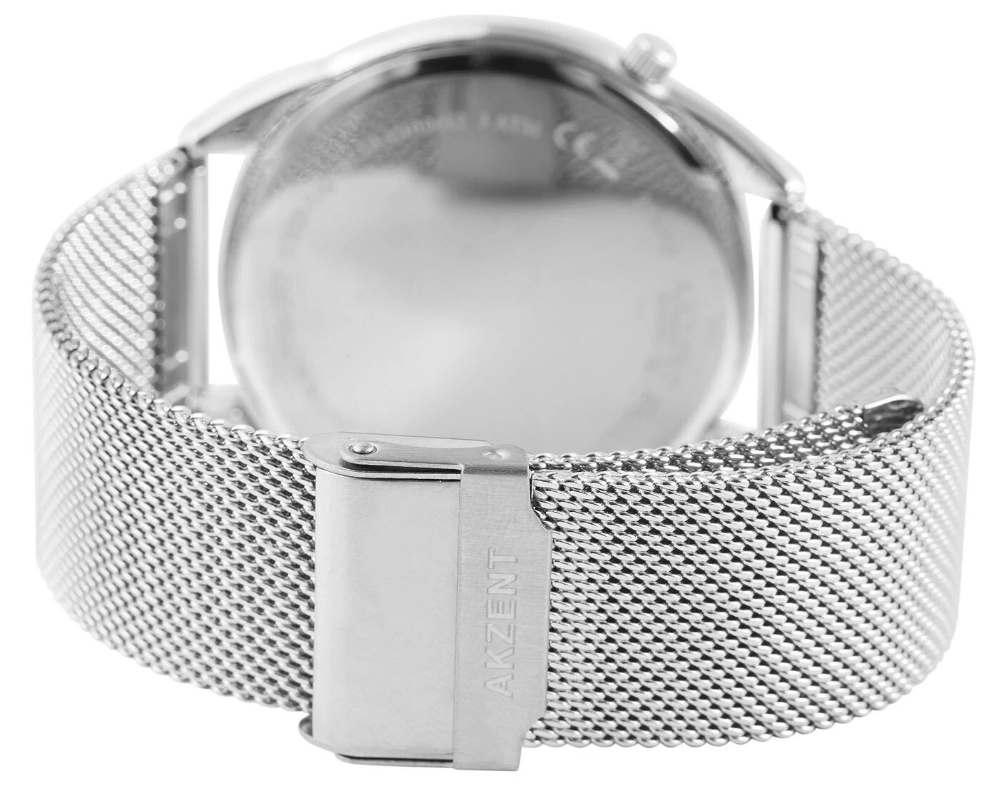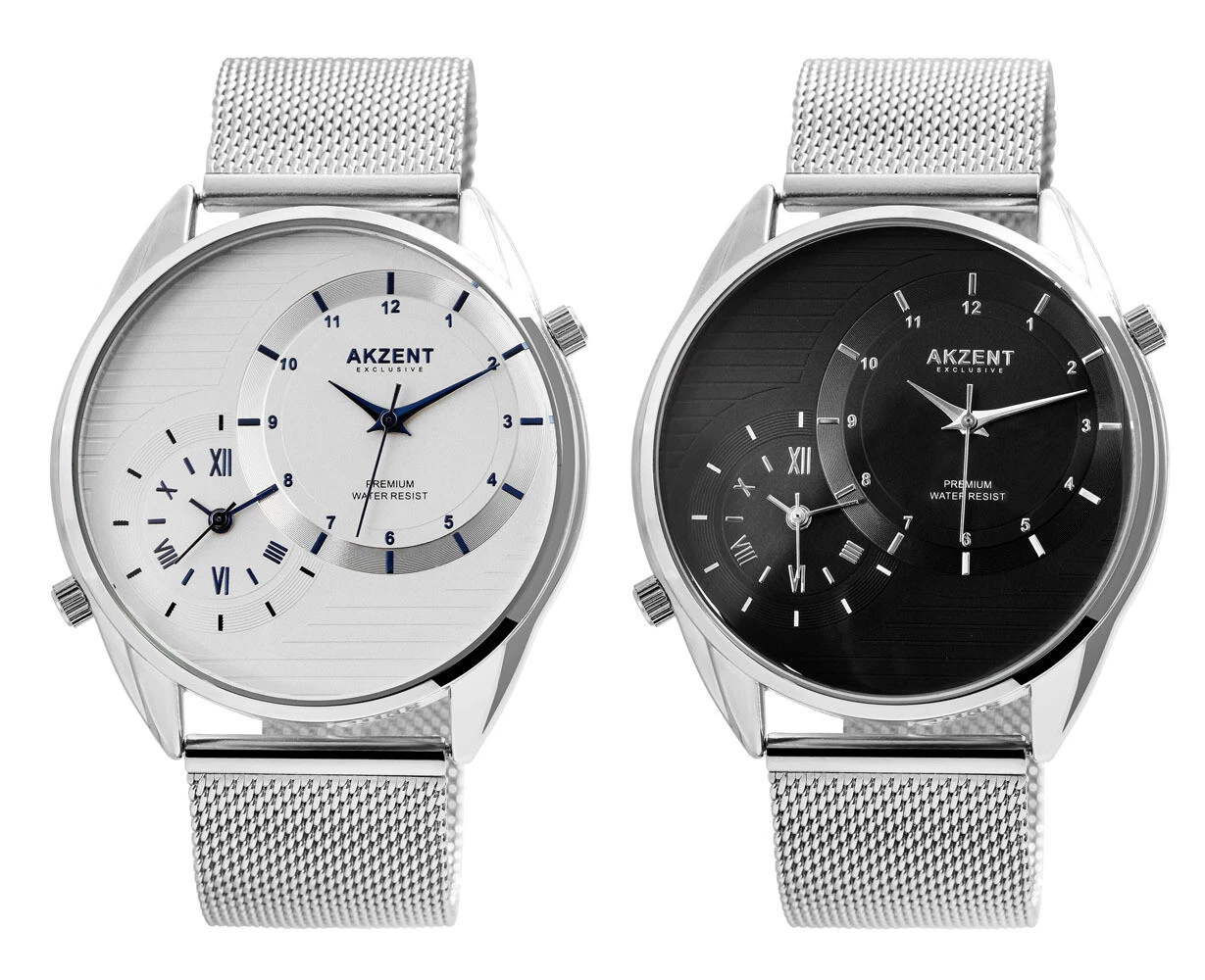 AKZENT EXCLUSIVE Men's Watch 2 Time Zones Silver Analog Mesh Strap