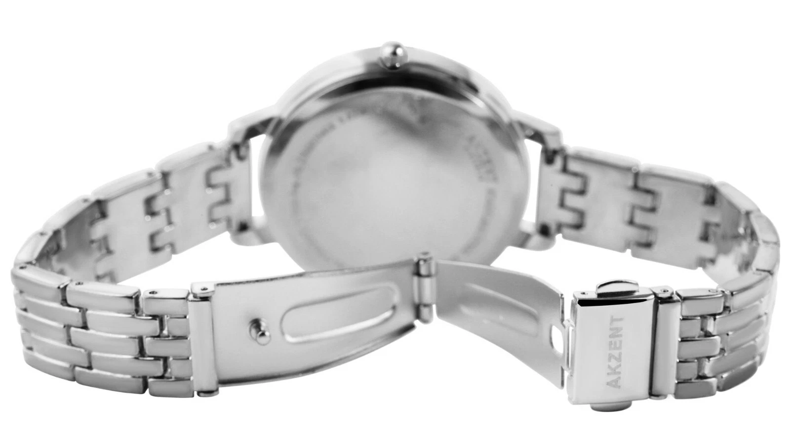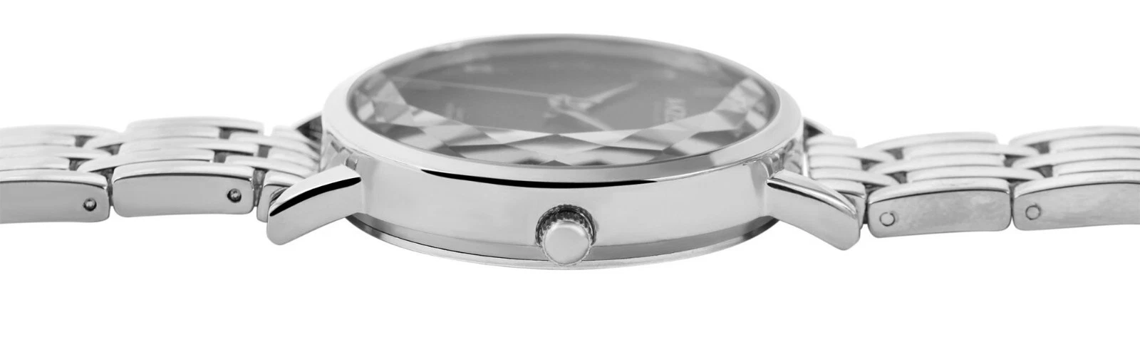 Elegant Accent Ladies Watch Anthracite Silver Metal Strap Faceted Glass