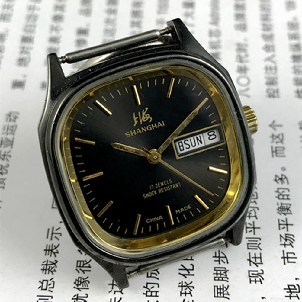 33mm Shanghai Factory Made Manual Mechanical Watch Double Calendar Black Dial