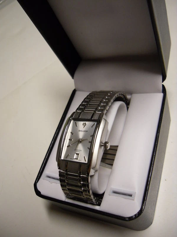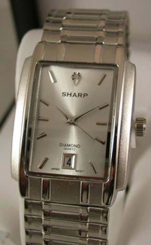 New Sharp Men's Diamond Slivetone Date Dress Watch MSRP $50