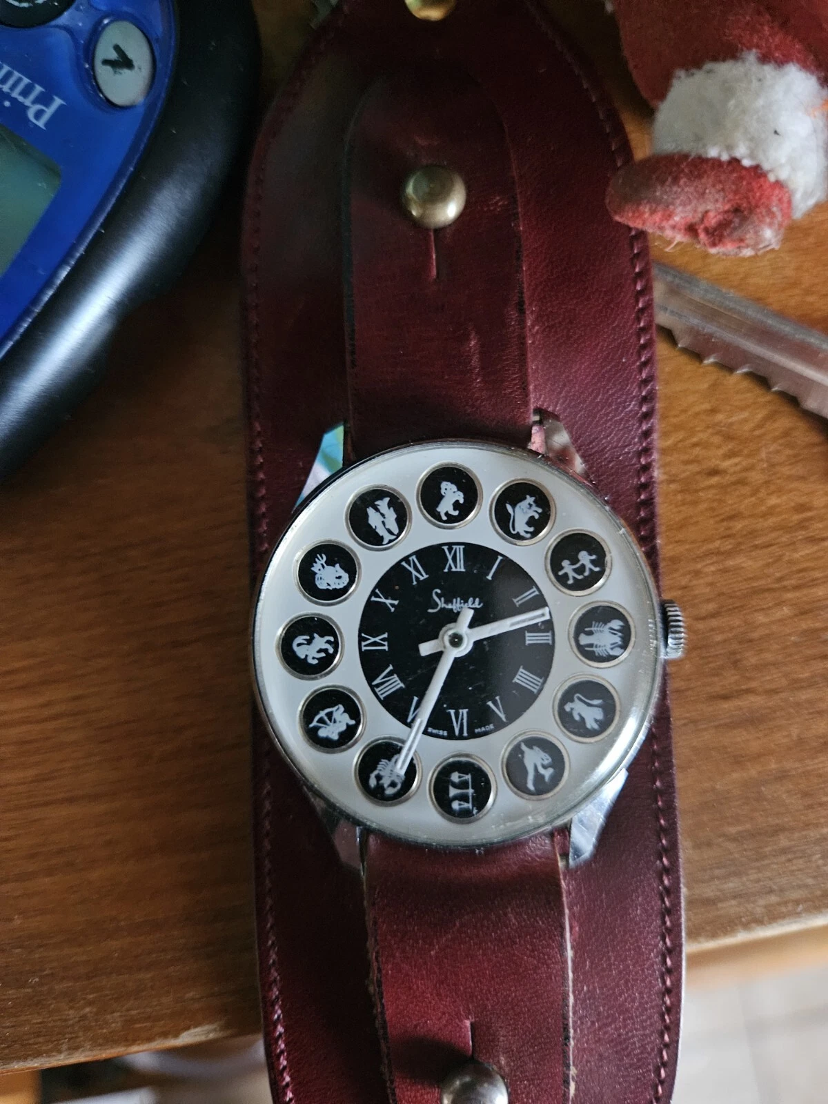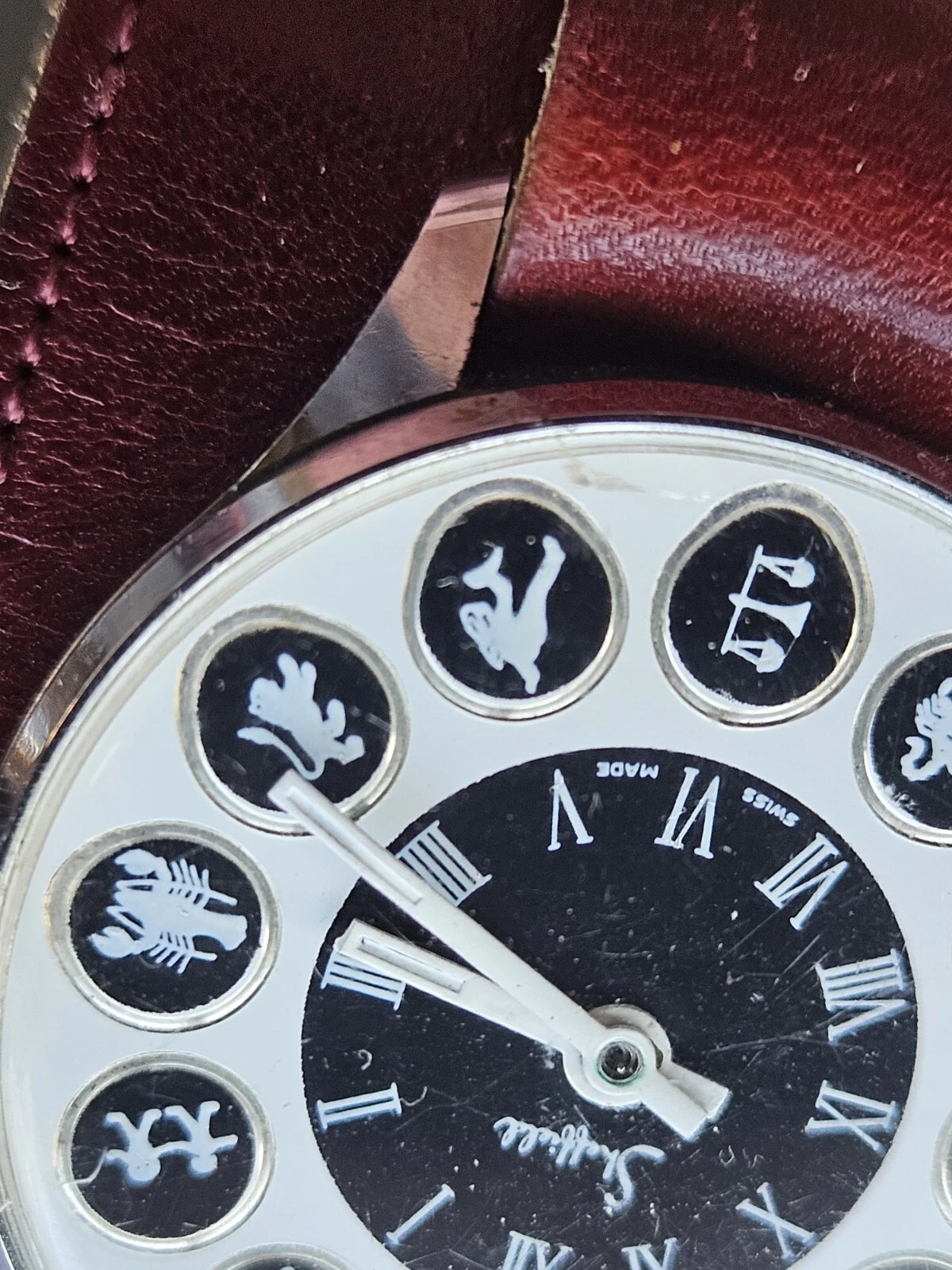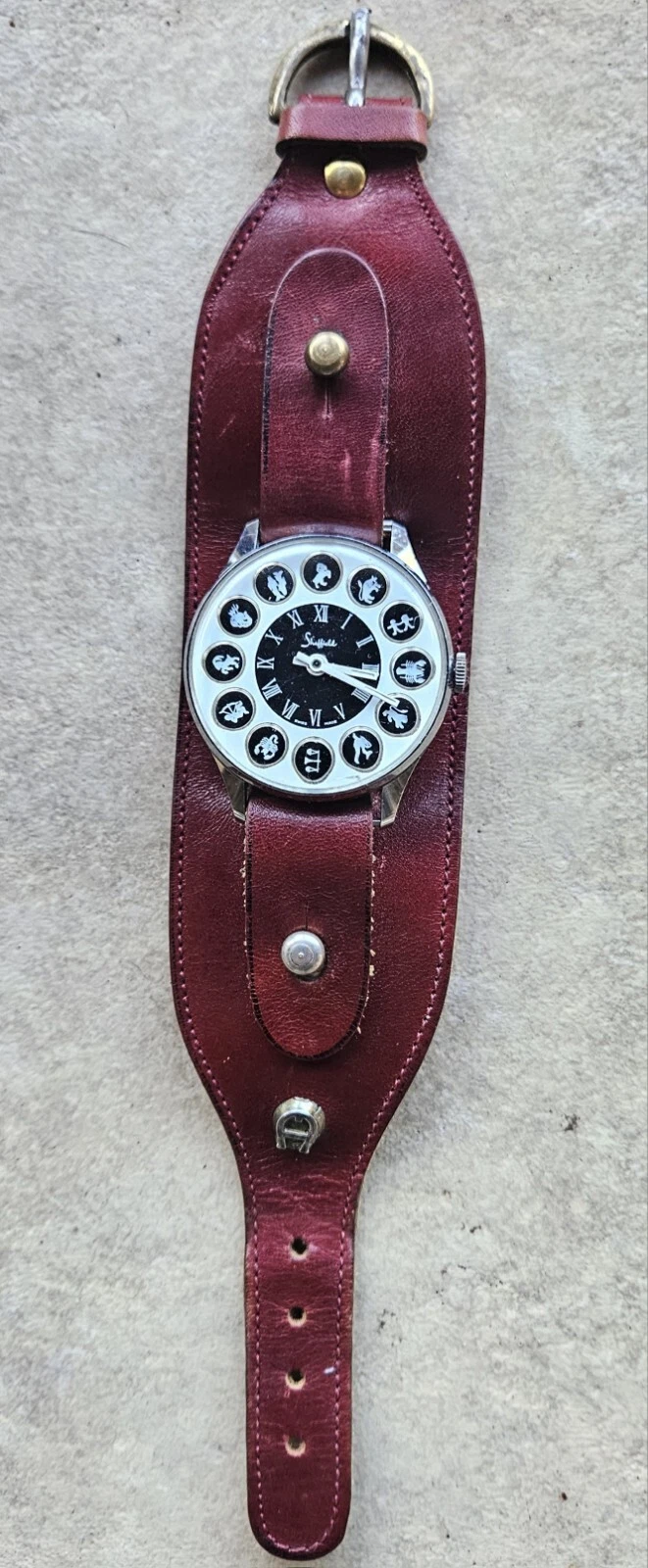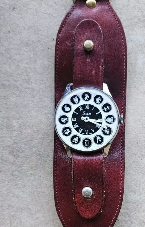 Works Vintage 1970 Men Sheffield Zodiac Swiss Watch Leather Ettiene Aigner Band