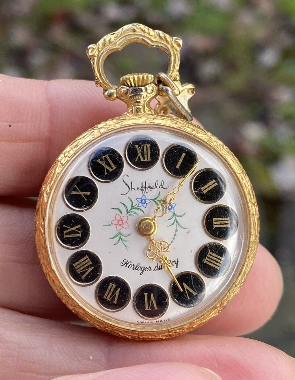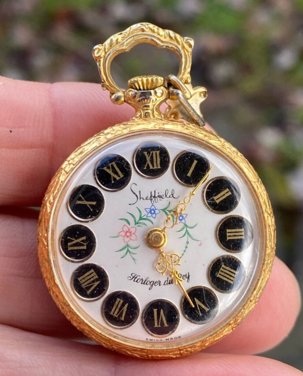 1970s Swiss Sheffield Mechanical Pocket Watch Necklace