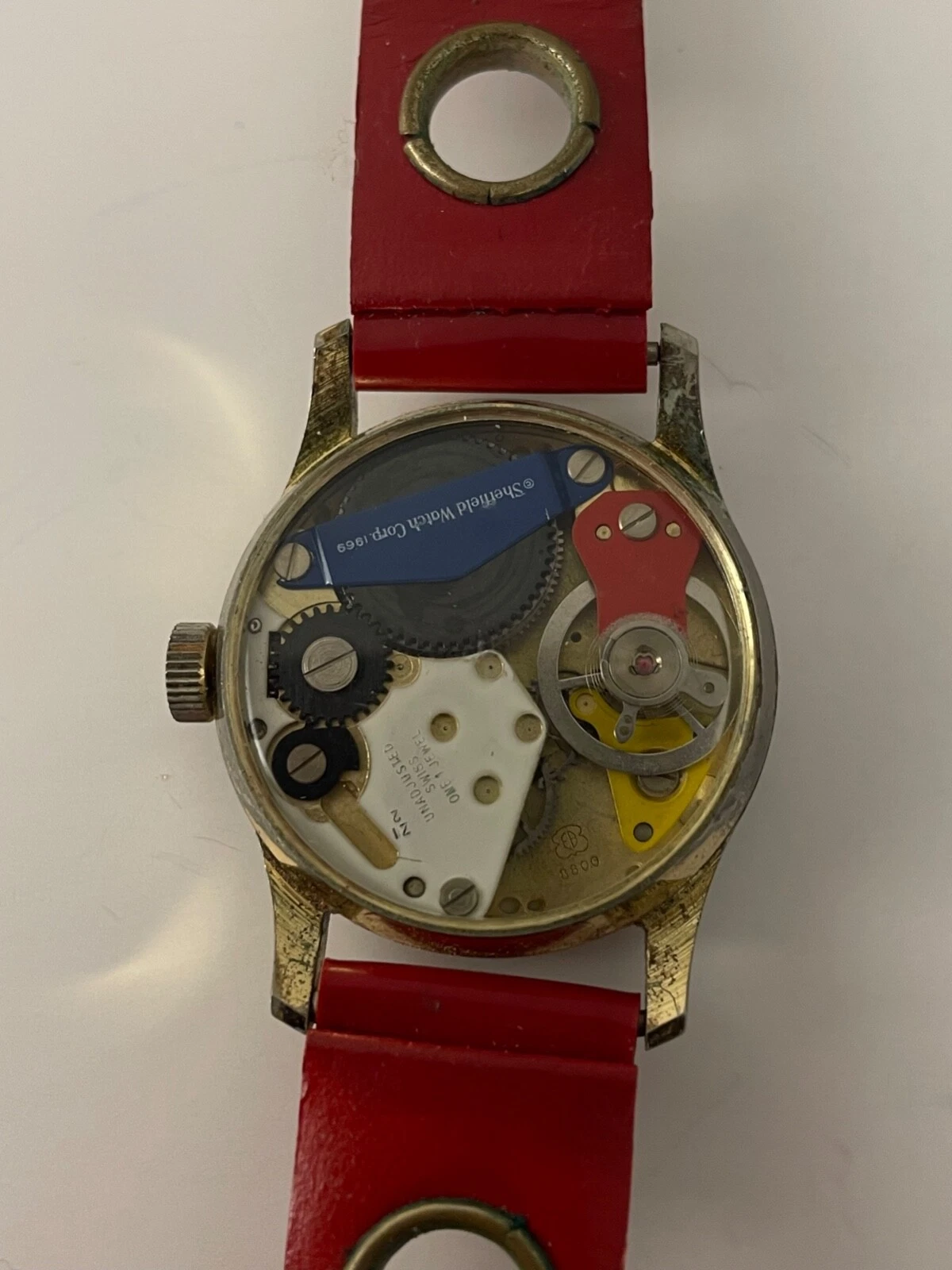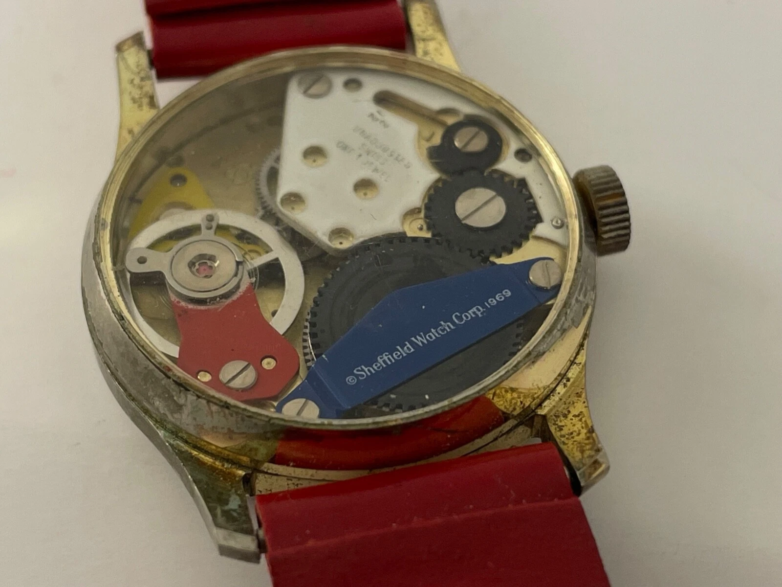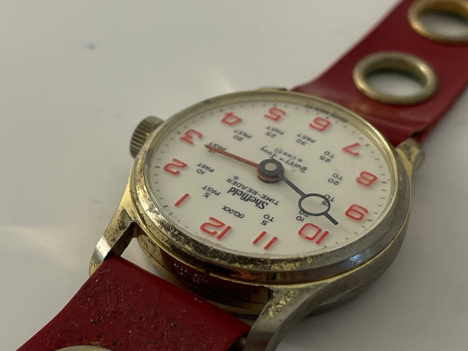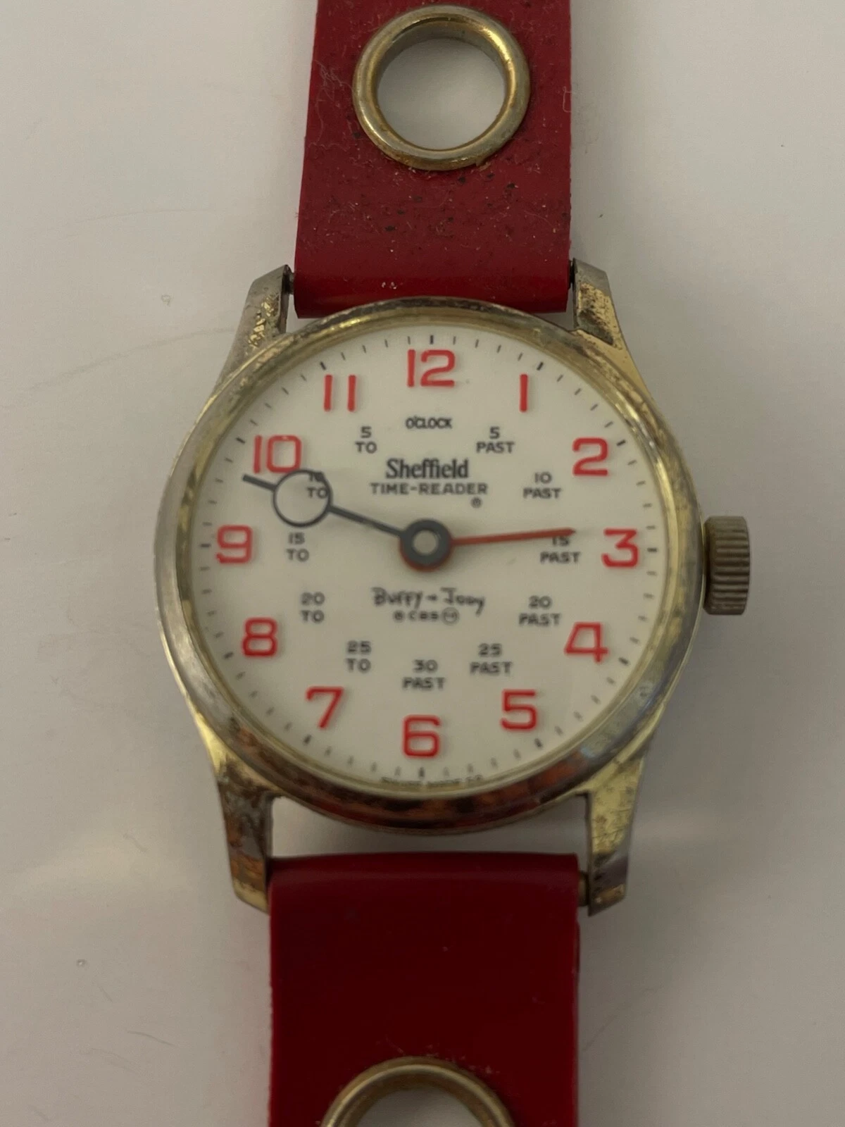 Vtg 1969 Sheffield Time Reader Wristwatch ORG Red Band Parts/Repair Buffy &Jody