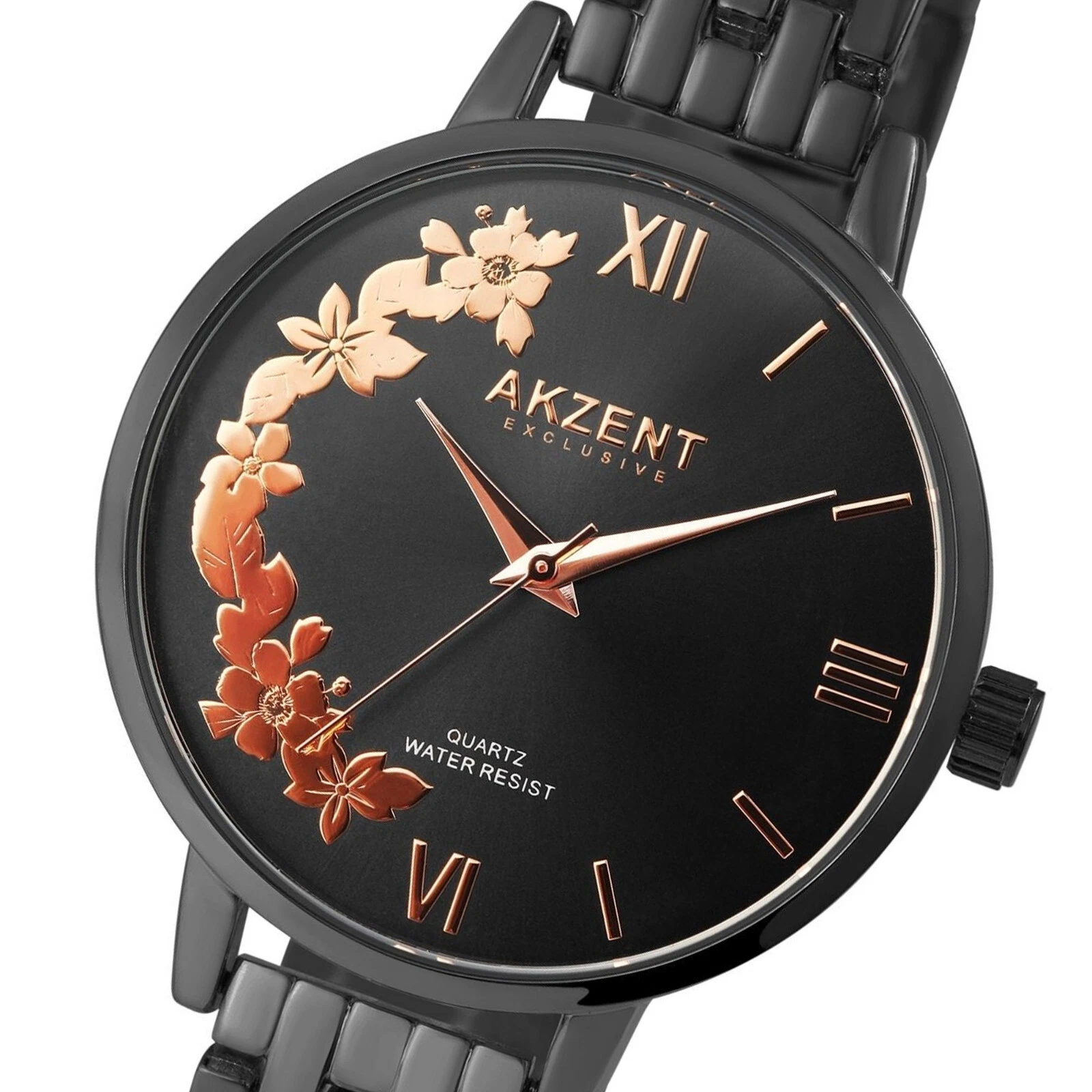 Elegante Akzent Damen Uhr Rosègold Blumen Analog Metall Armband Frauen Quarz