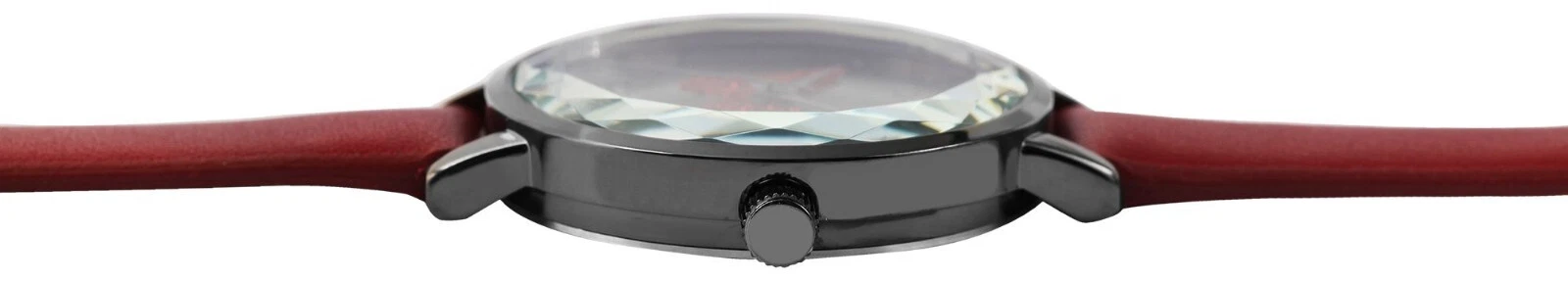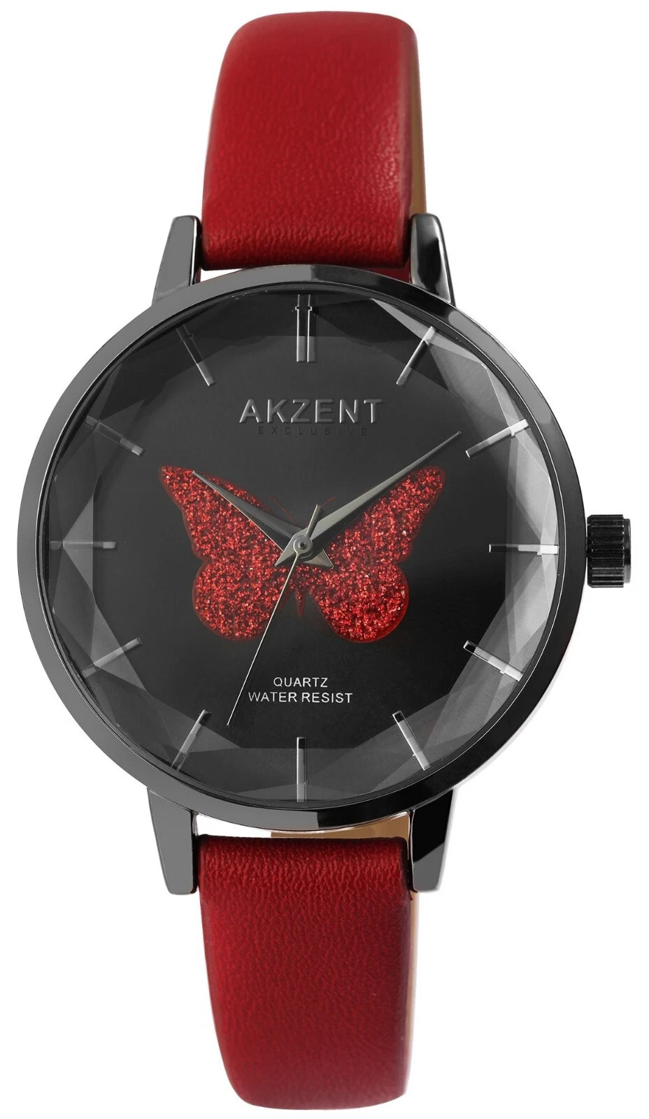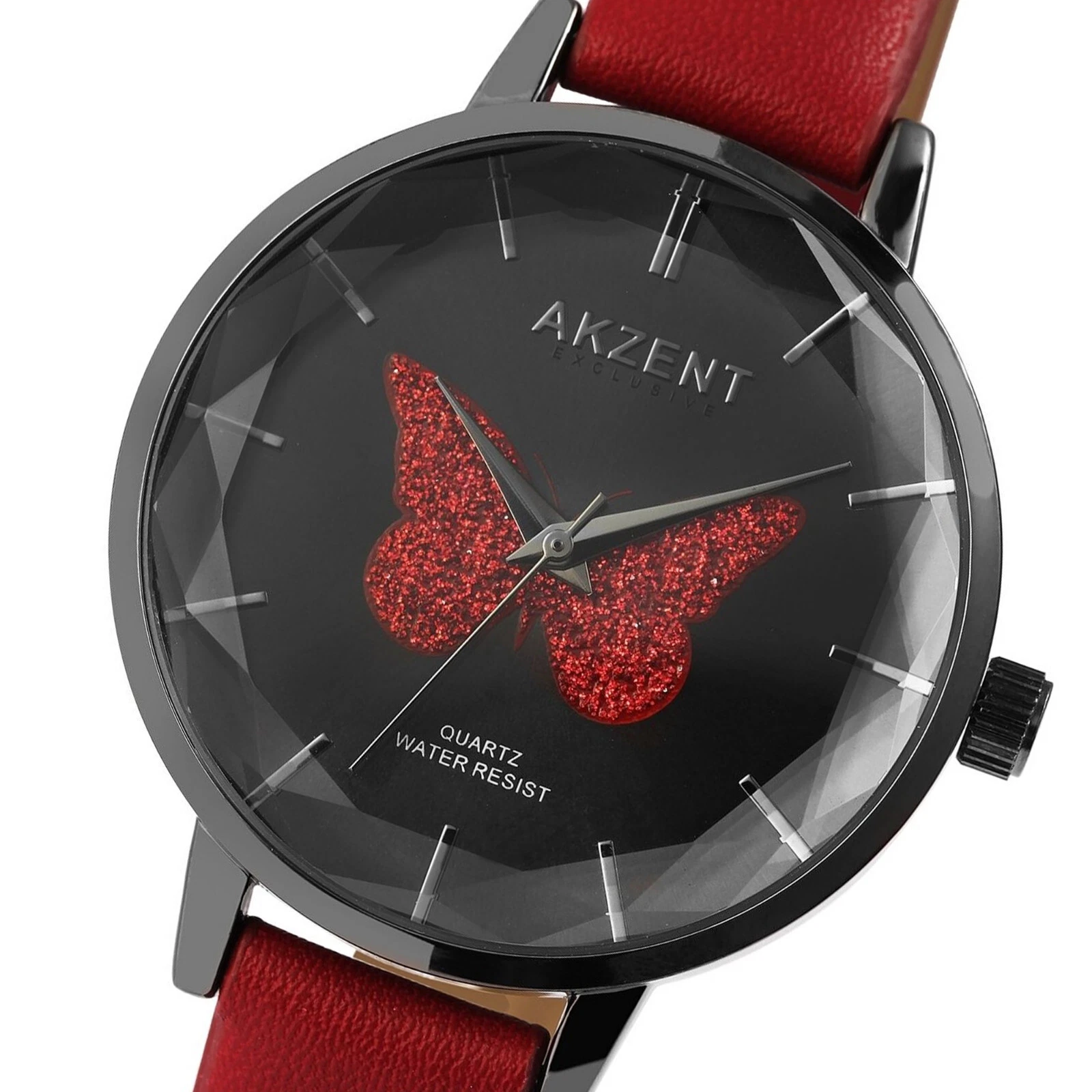 Modische Akzent Damen Uhr Schwarz Rot Leder Schmetterling Analog Frauen