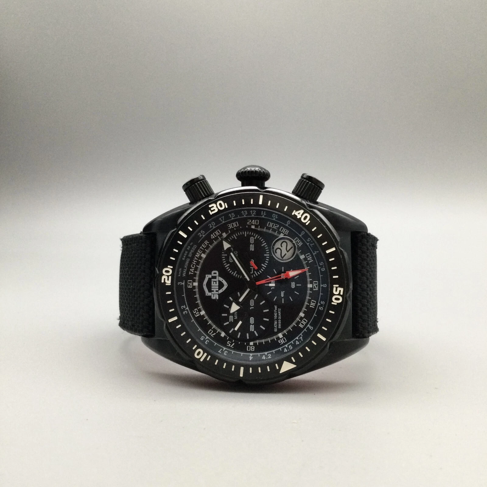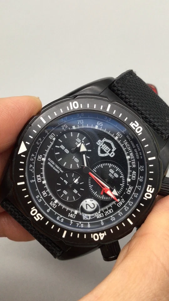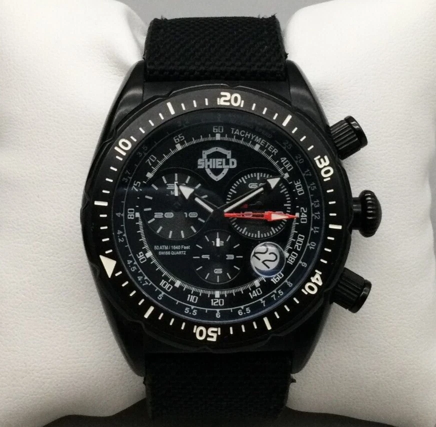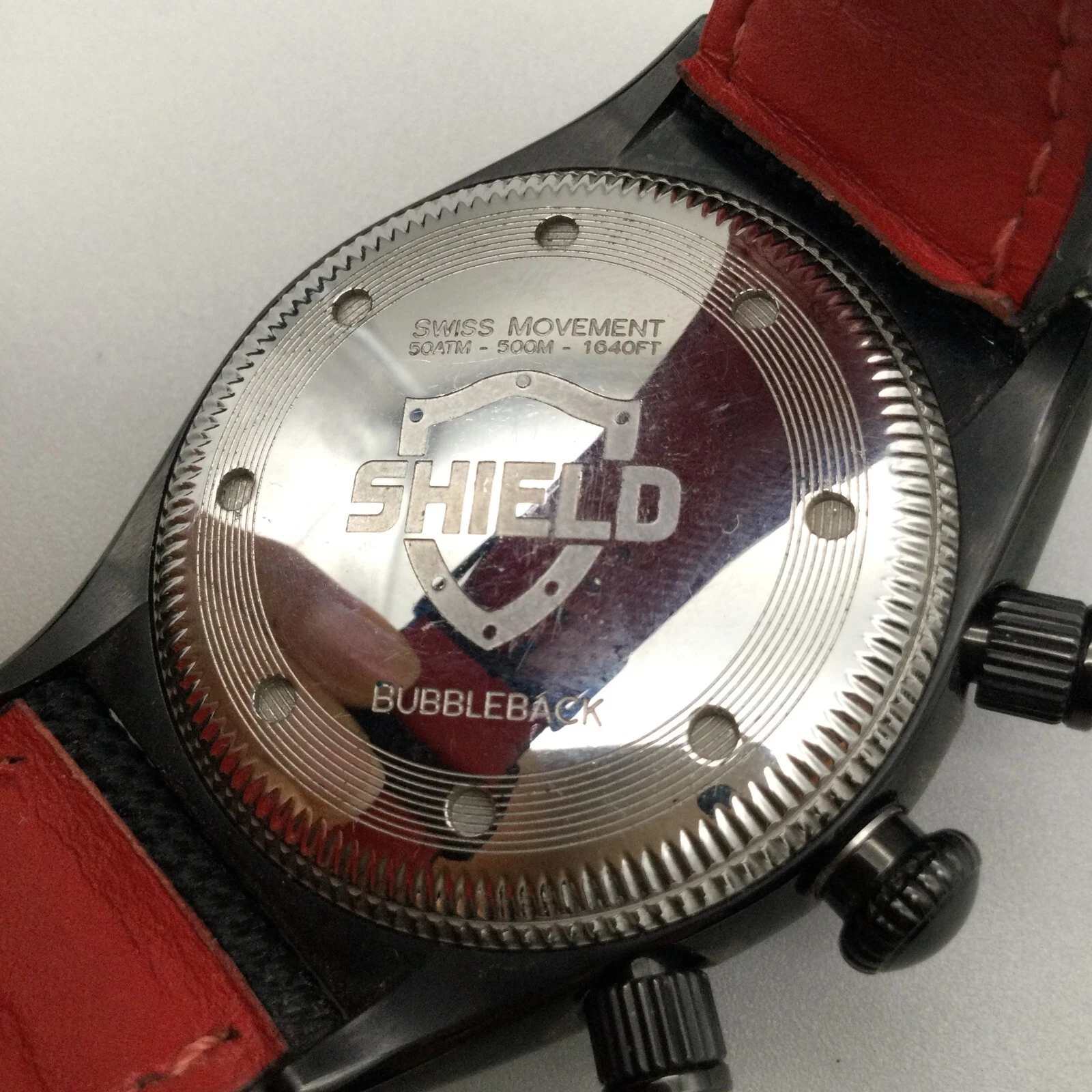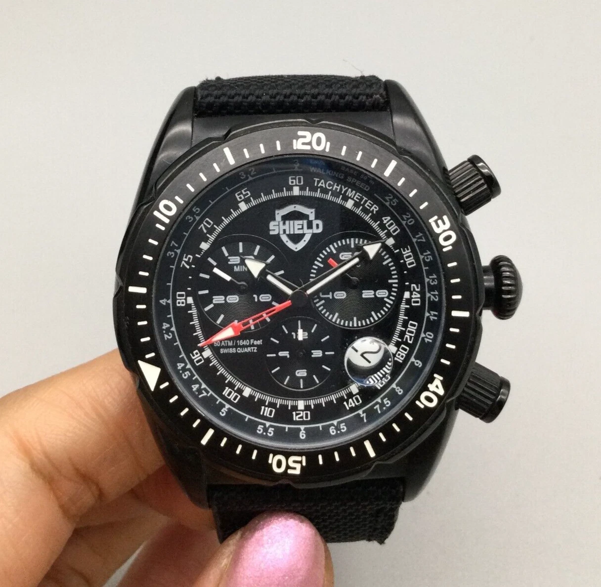 Shield Bubbleback Chronograph Watch Men 45mm Black Dial Date 50ATM New Battery