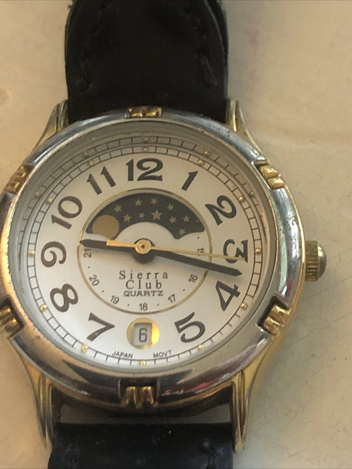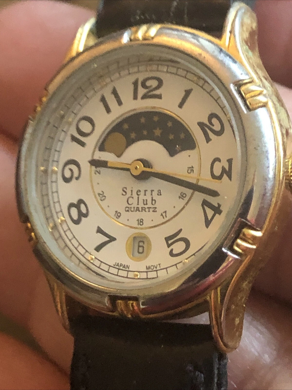 Sierra Club Watch Women Gold Silver Leather Moonphase Quartz NEW BATTERY