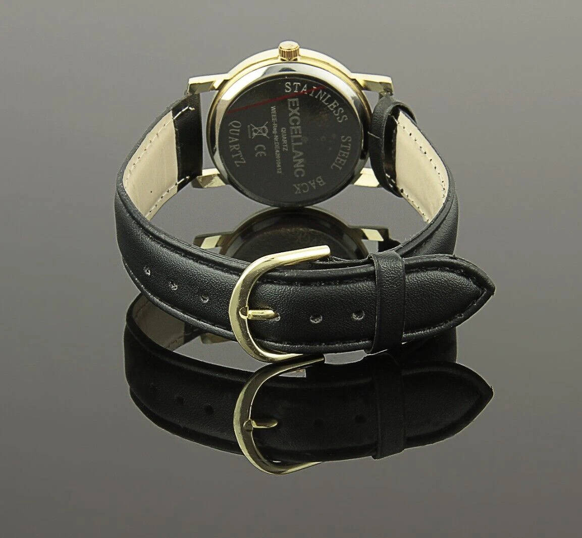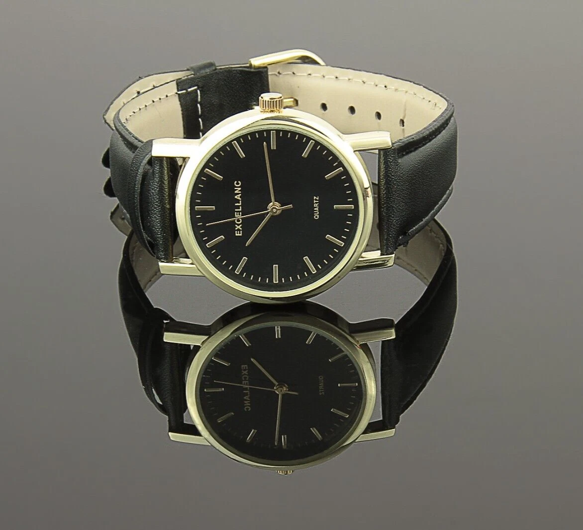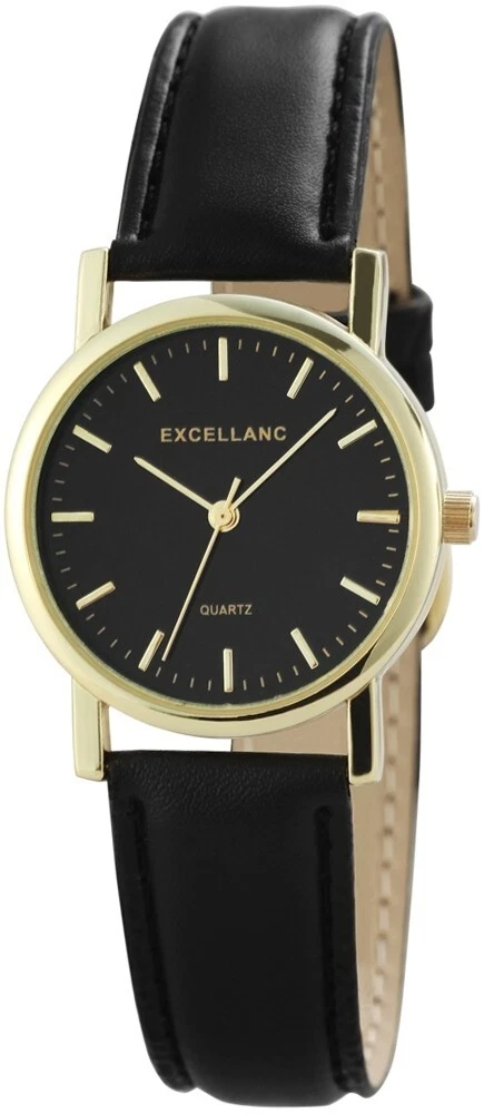 Excellanc Women's Watch Gold Black Leather Watch Quartz Ladies U1485