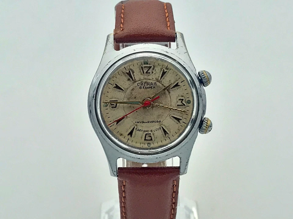 Signal 1MChZ Alarm Mechanical Wristwatch 18 Jewels USSR Vintage Serviced Watch