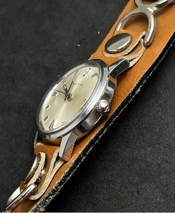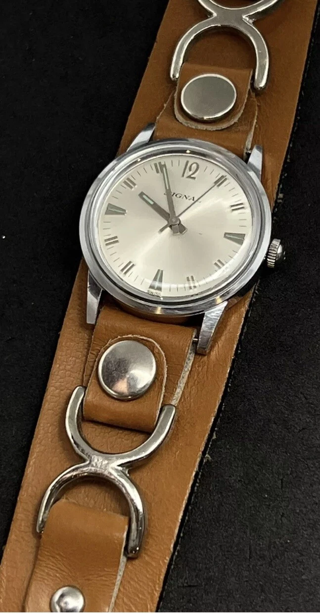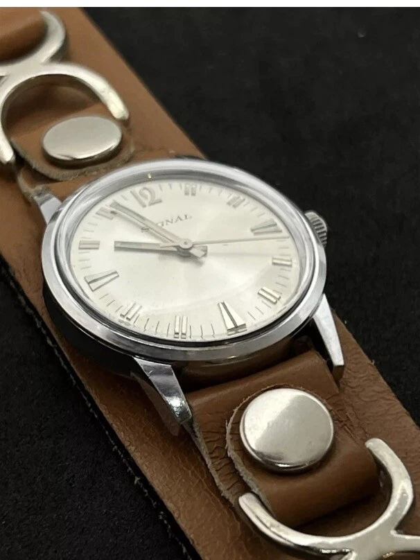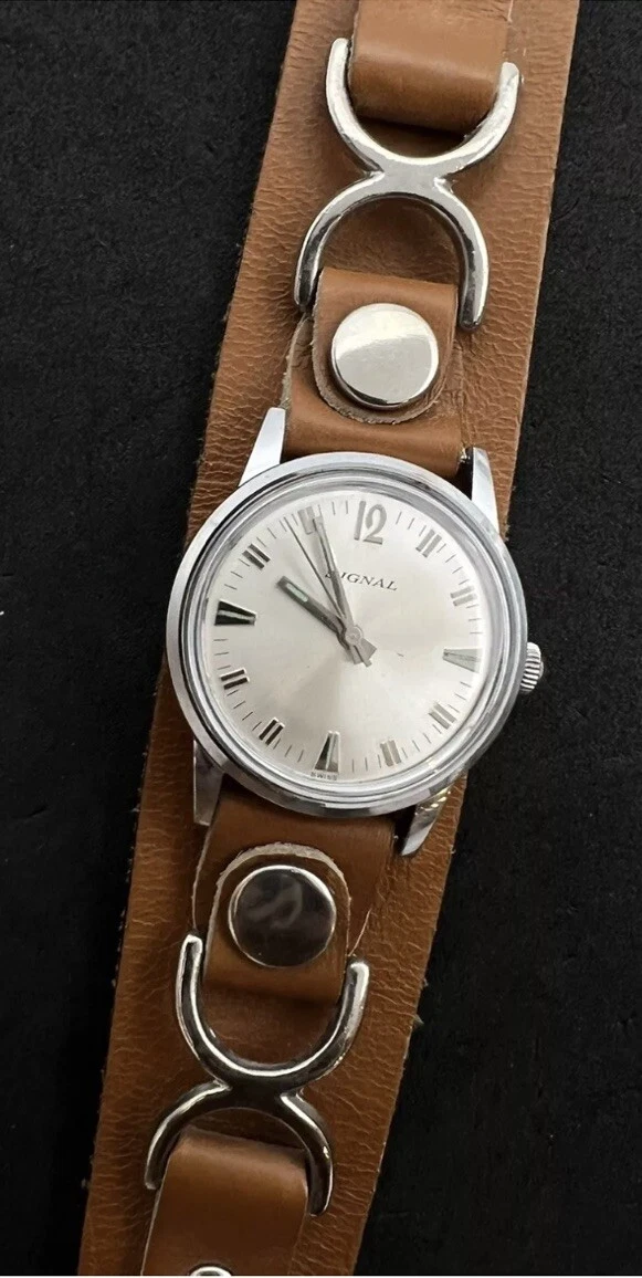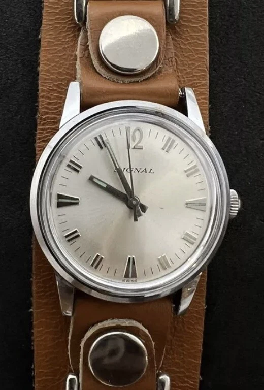 Vintage SIGNAL by Wyler Men's 35mm Swiss Mechanical Hand Wind Watch Silver Tan