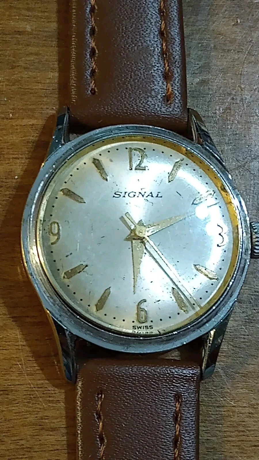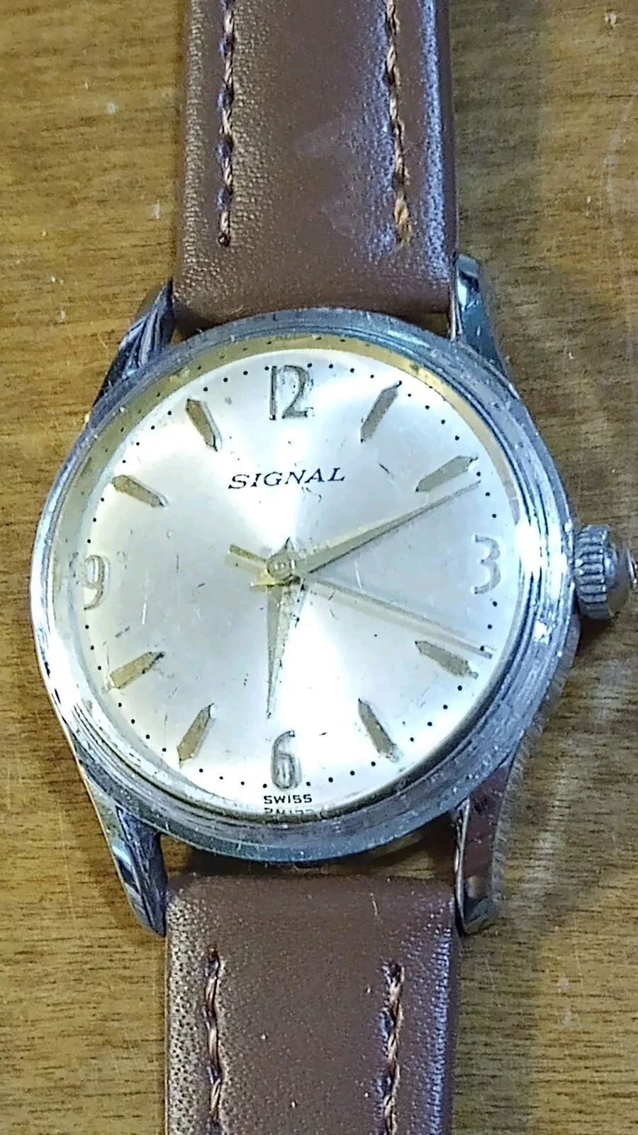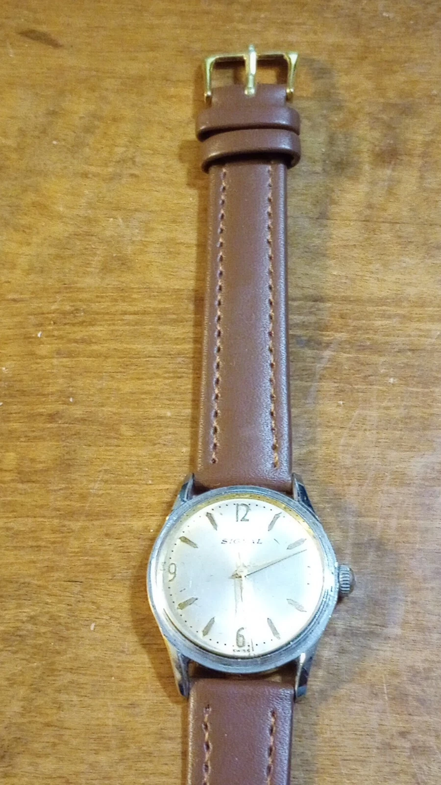 Vgt 50-60's Signal 17J Men's watch, runs just serviced New Leather H
