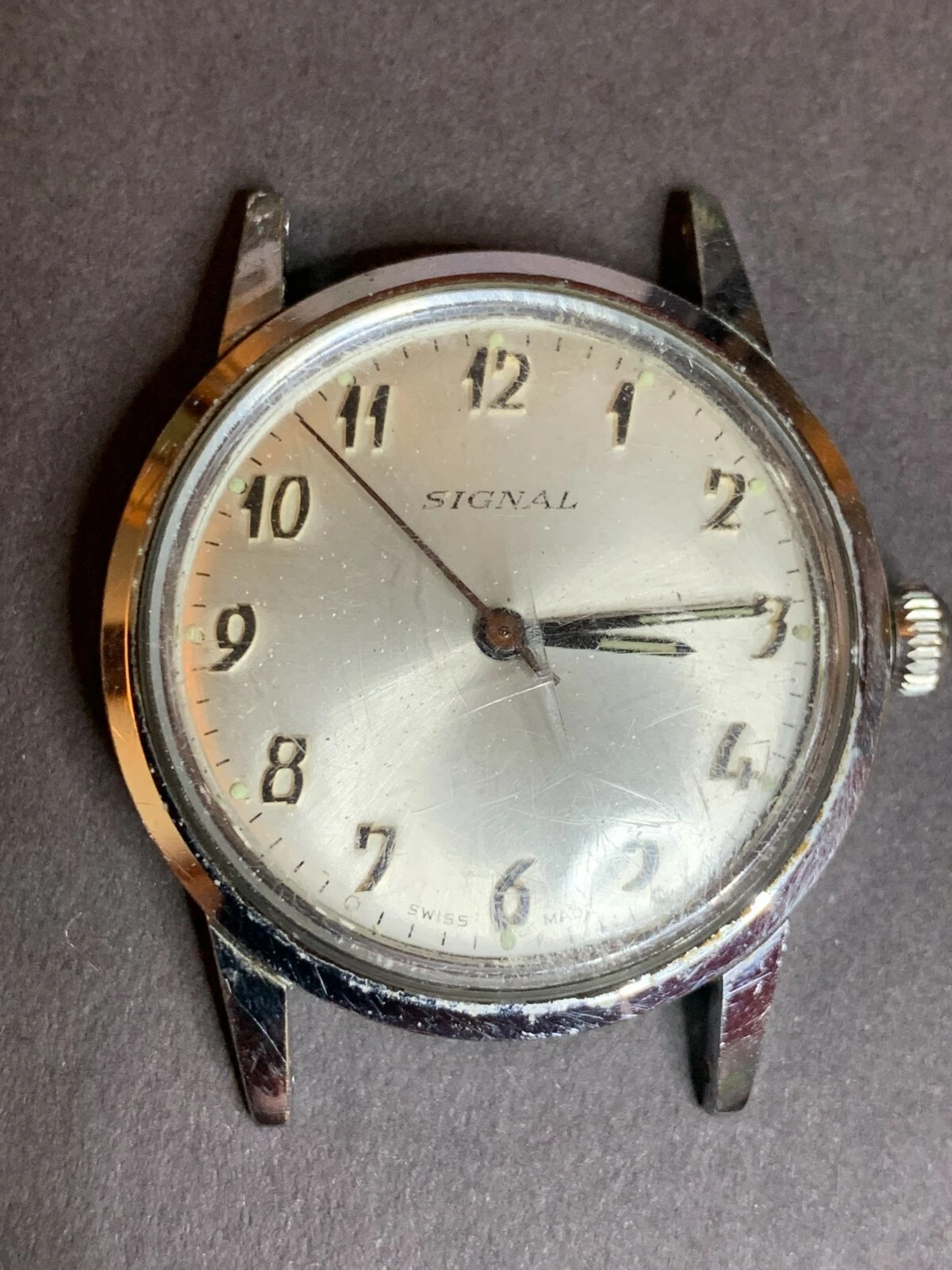 Signal Stainless Steel Silver Tone Swiss Made Wristwatch      Keeps good time