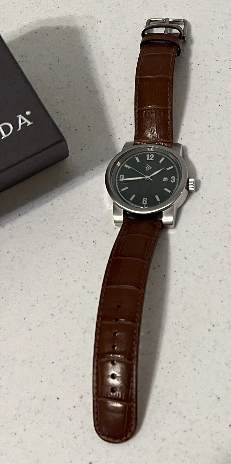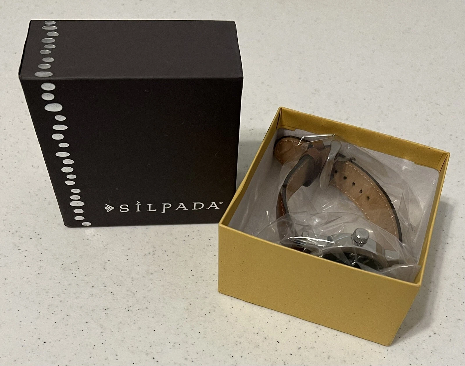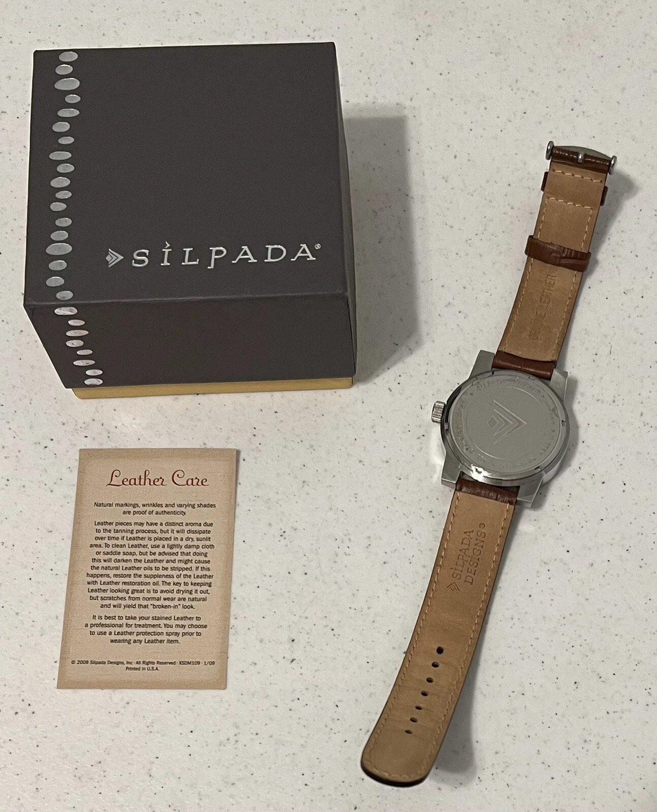 SILPADA Watch Mens Leather Band T1792 Counts Seconds Date Works Great With Box