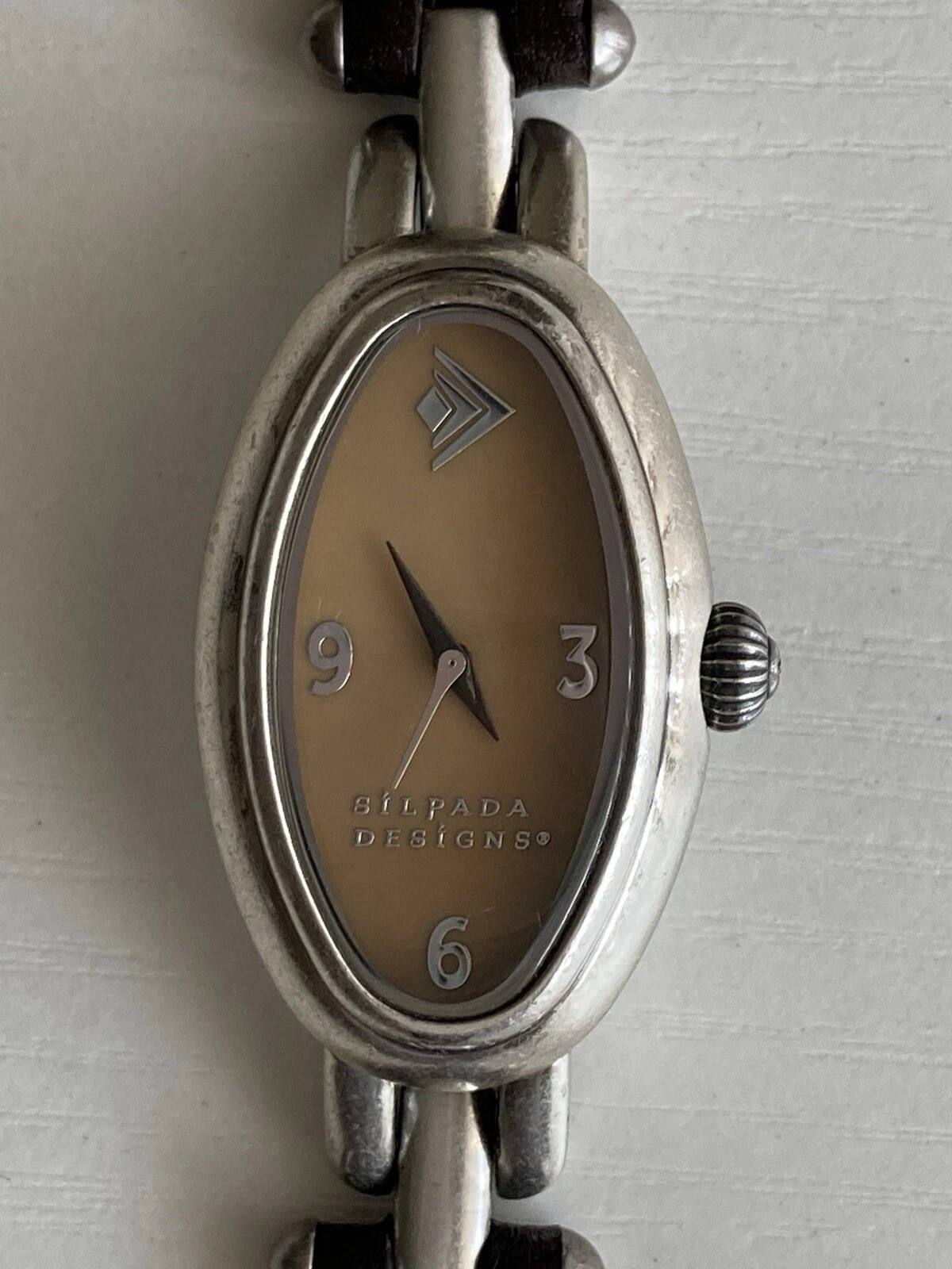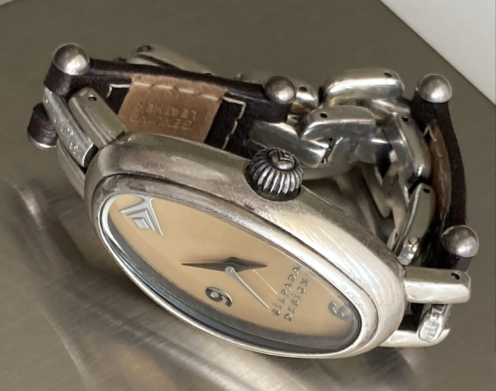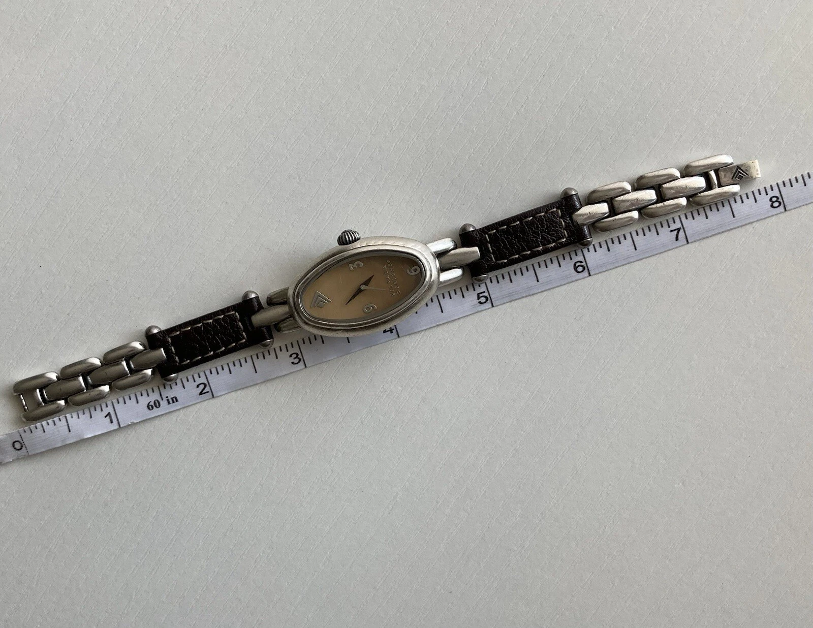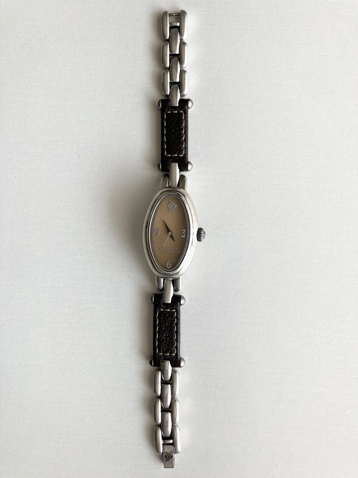 Silpada Designs Watch Women Oval Leather Stainless Steel 7.5in NEEDS BATTERIES