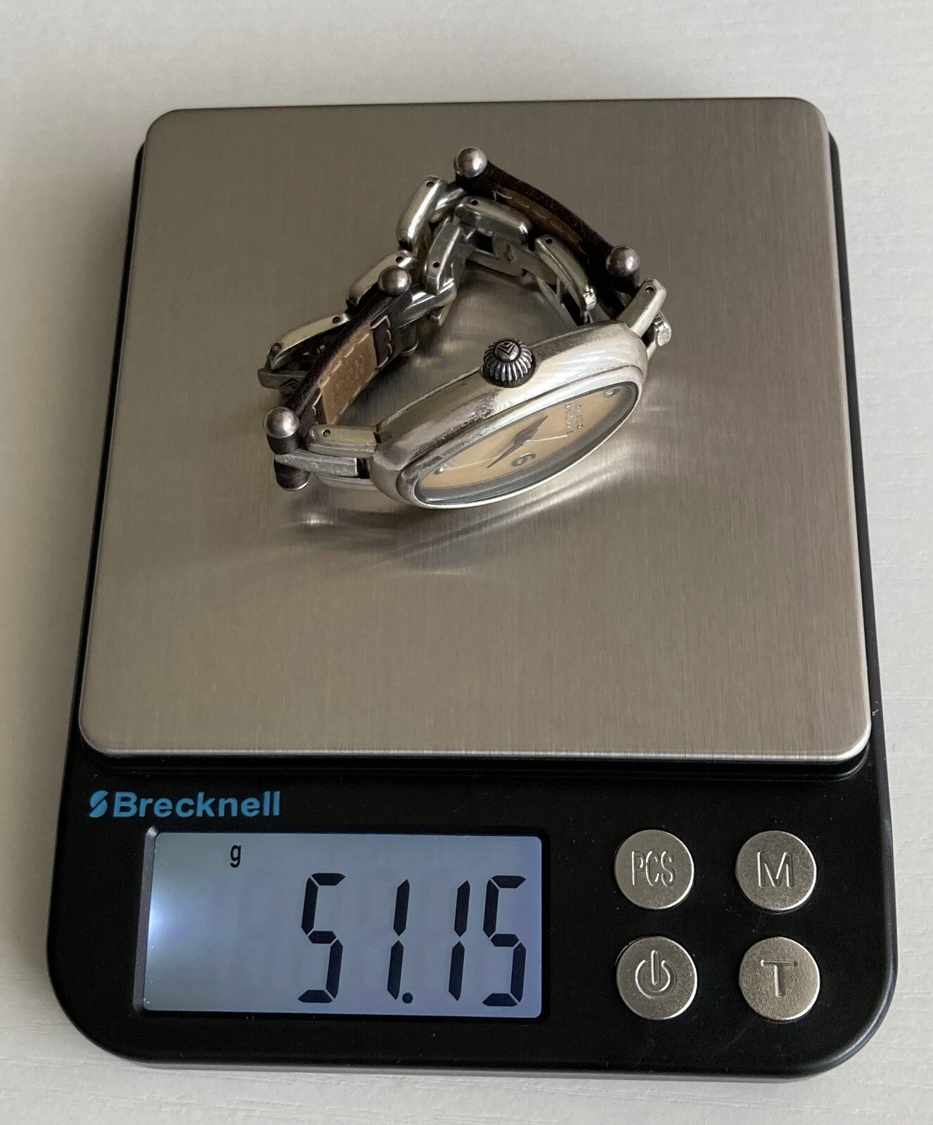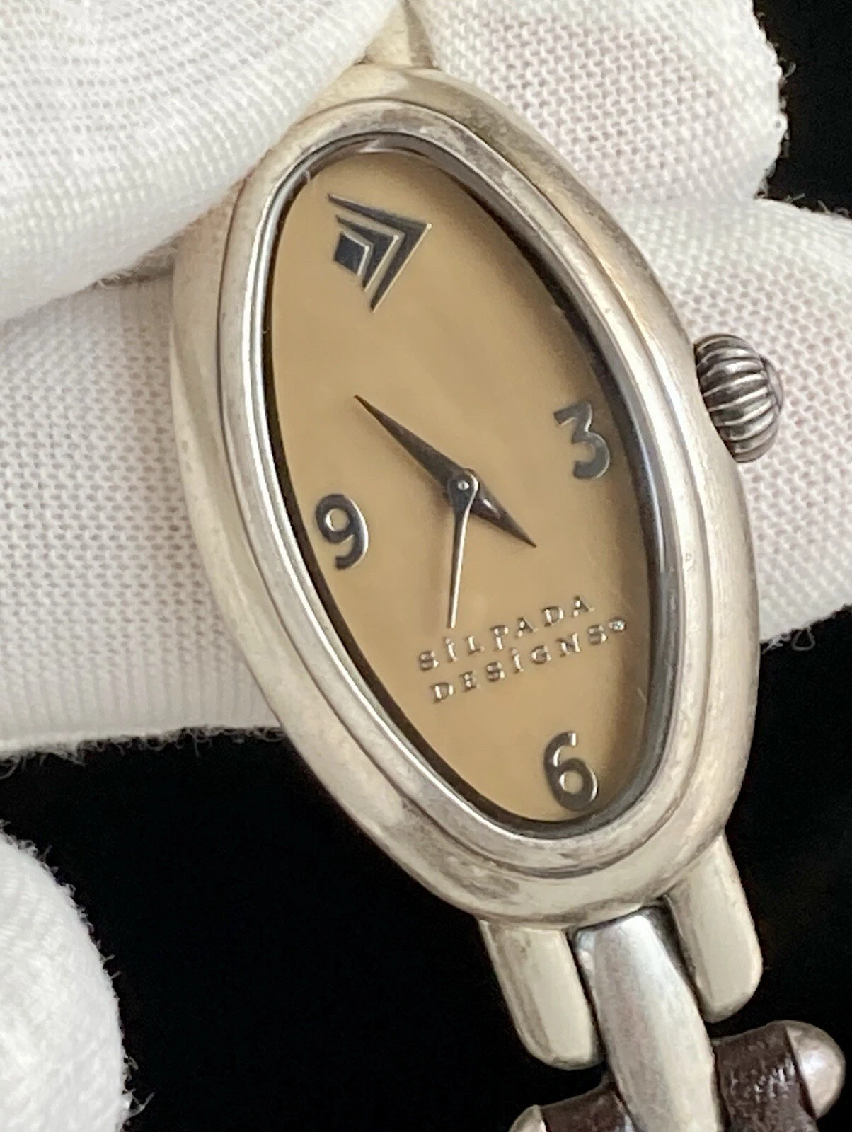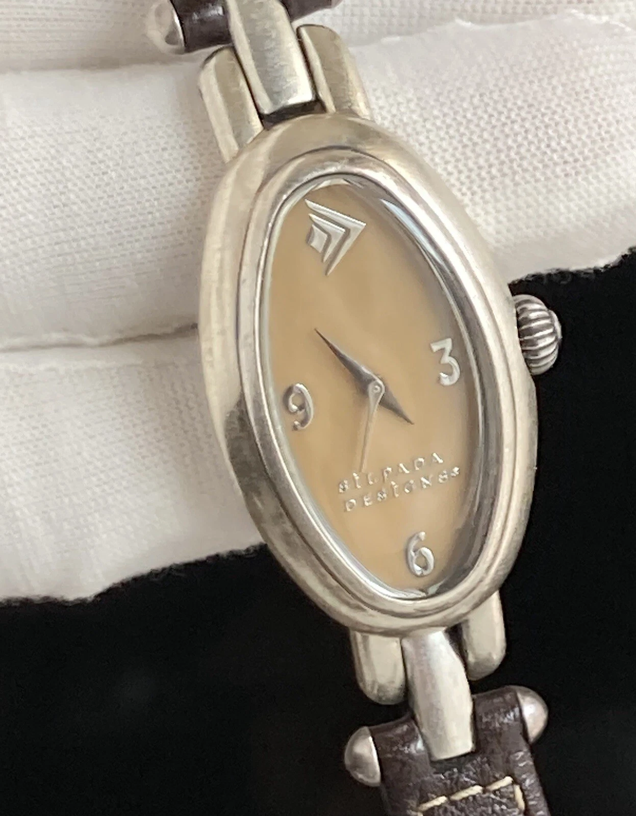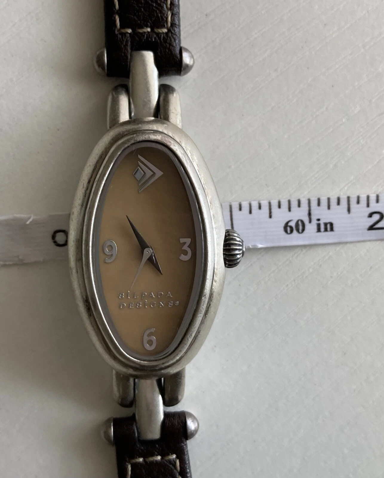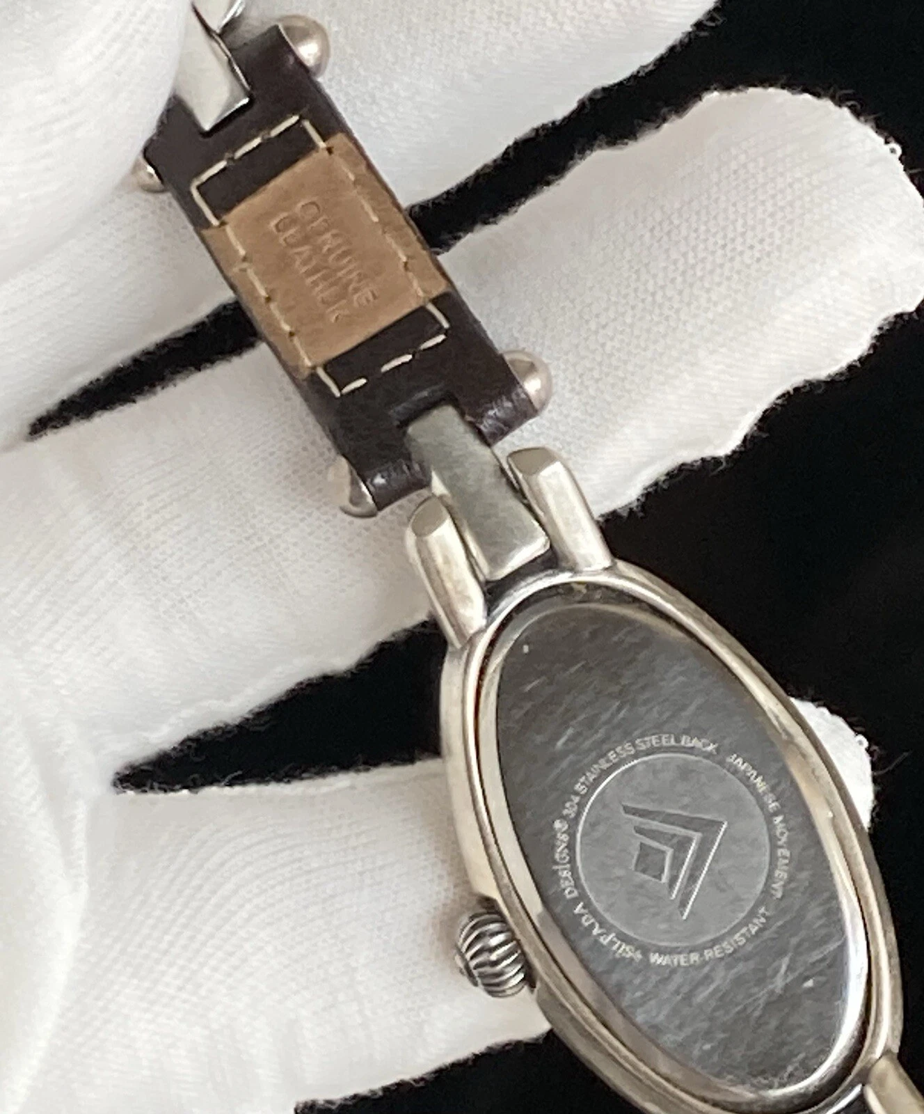 Silpada Designs Watch Women Oval Leather Stainless Steel 7.5in NEEDS BATTERIES