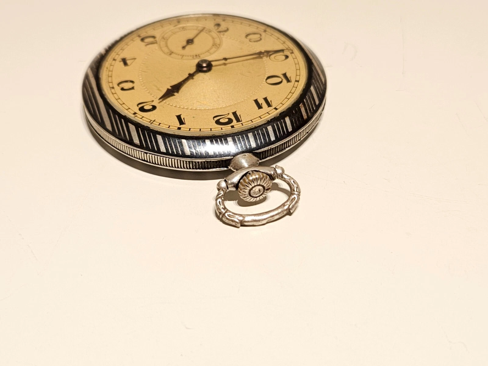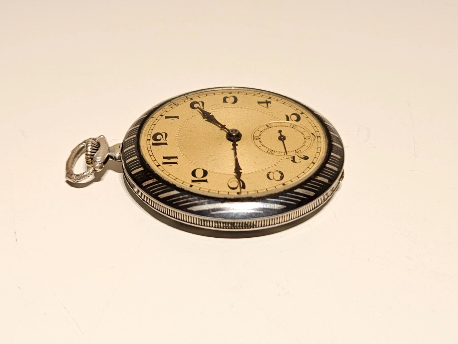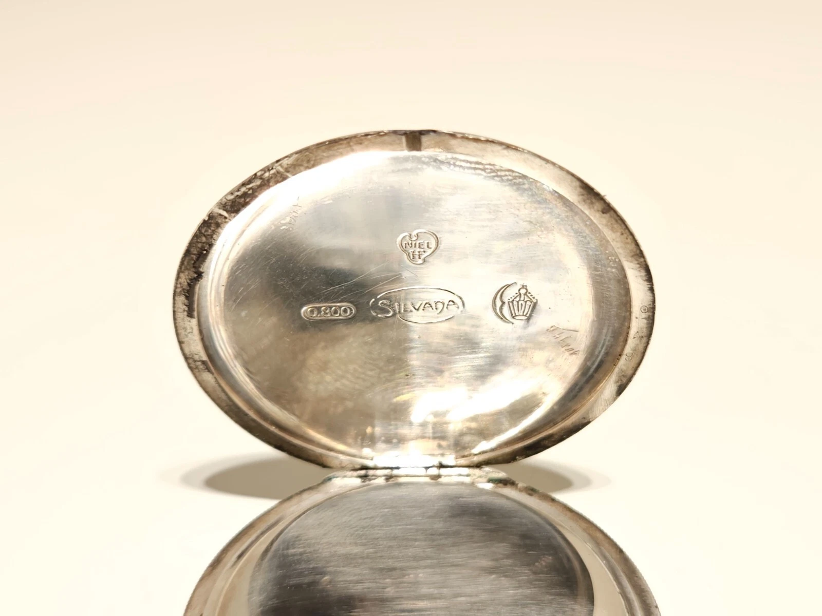 VINTAGE WW2 VERY RARE LUXURY SWISS NIELLO SILVER 800 MEN'S POCKET WATCH"SILVANA"