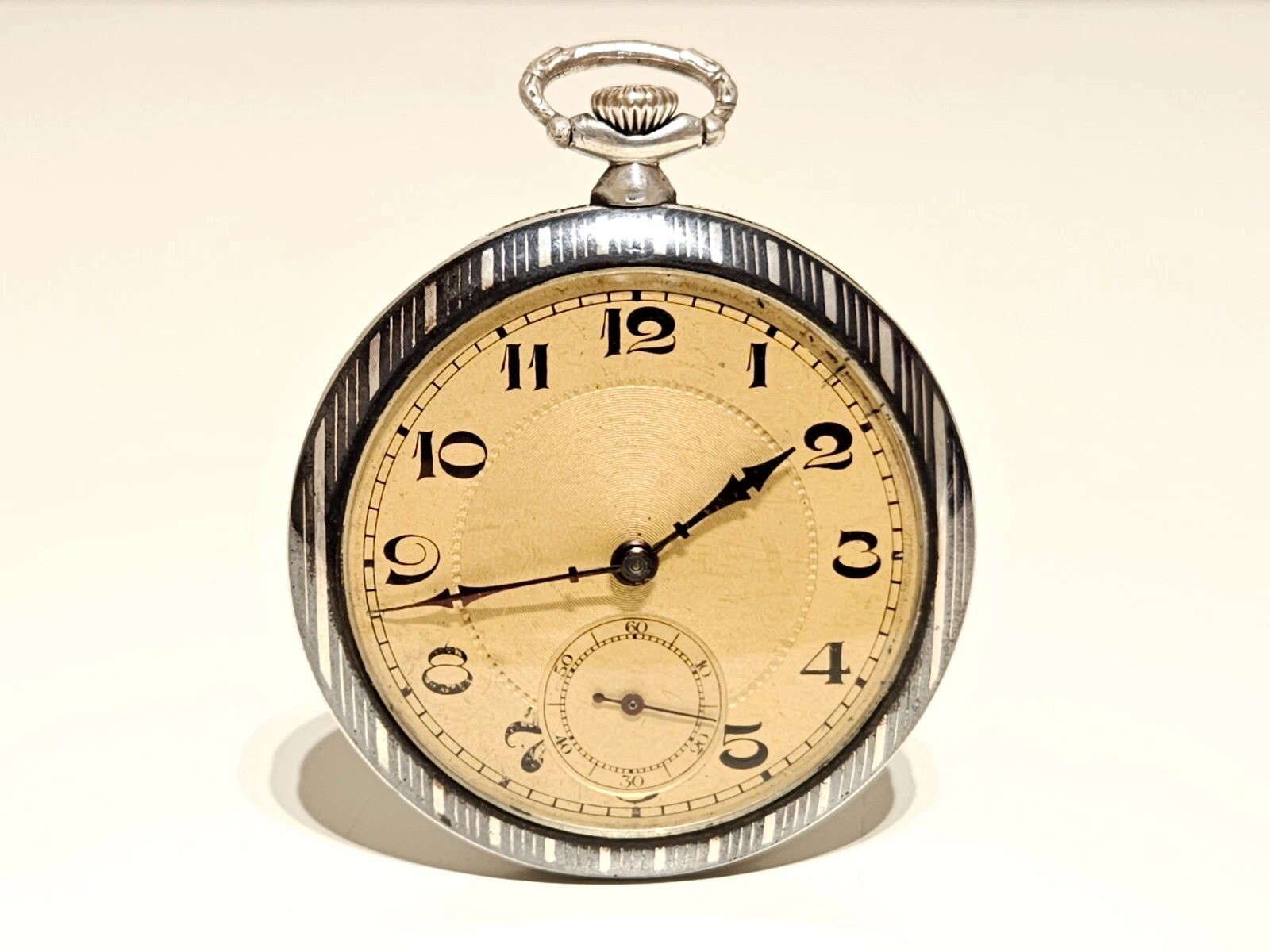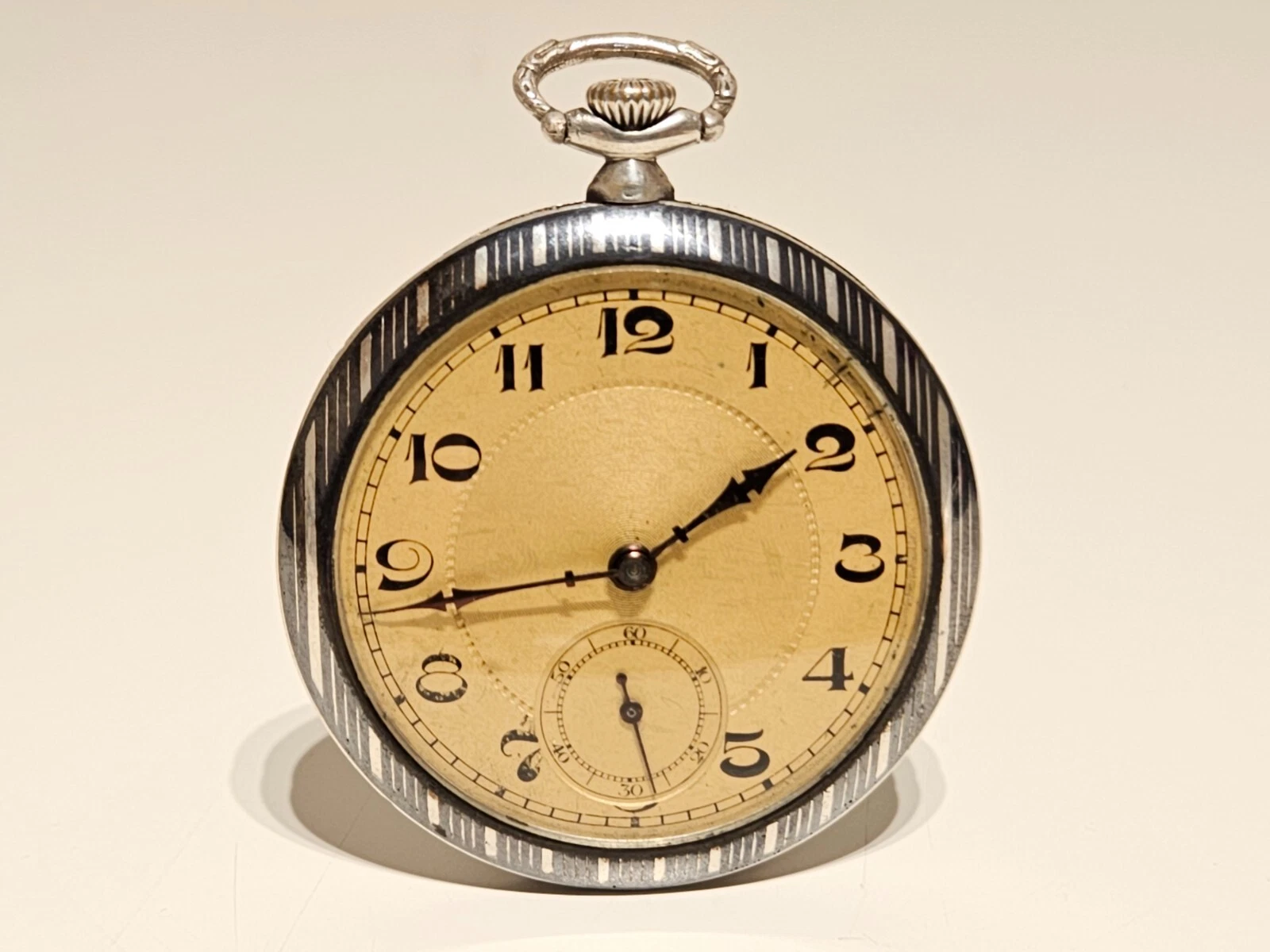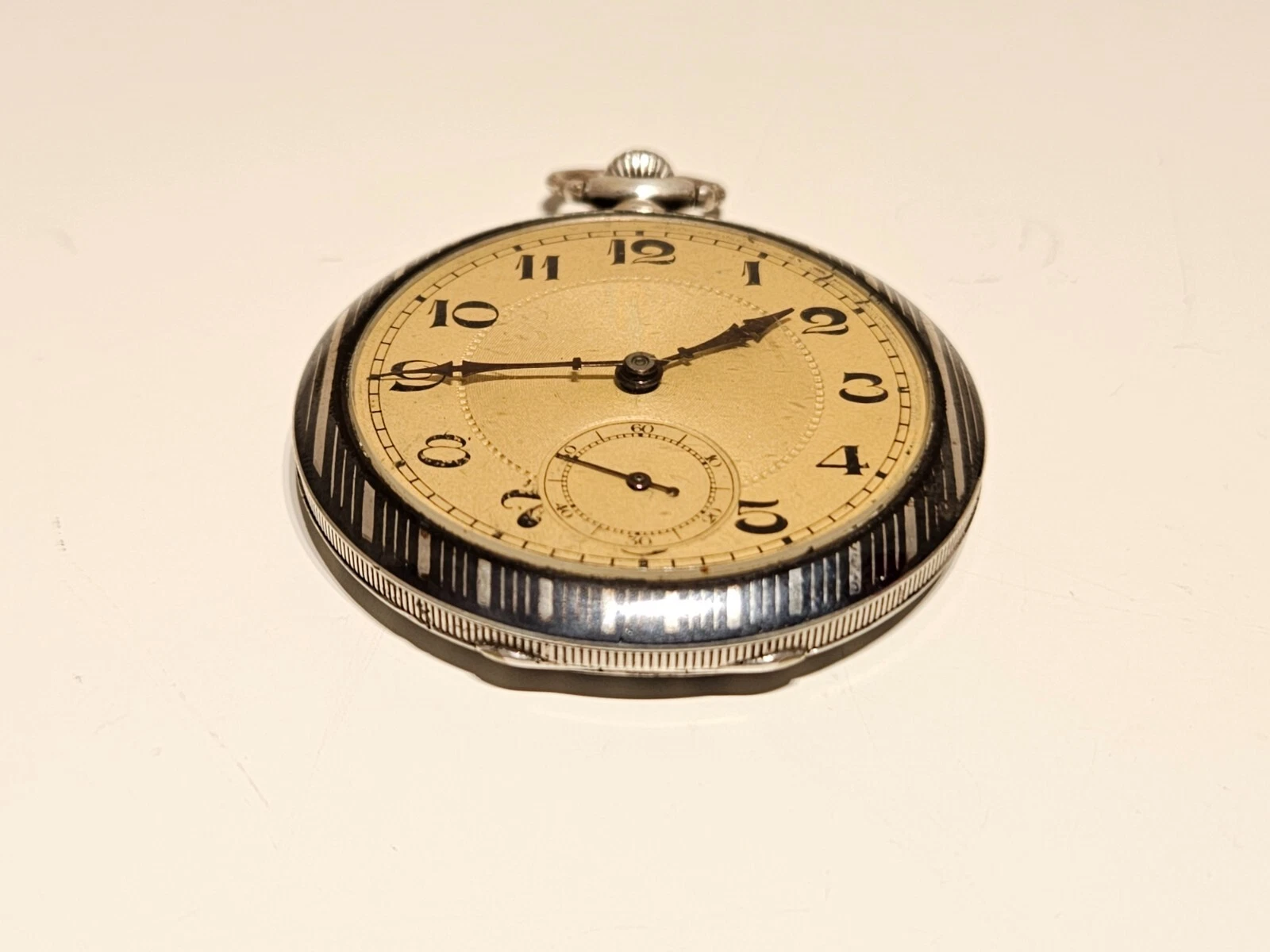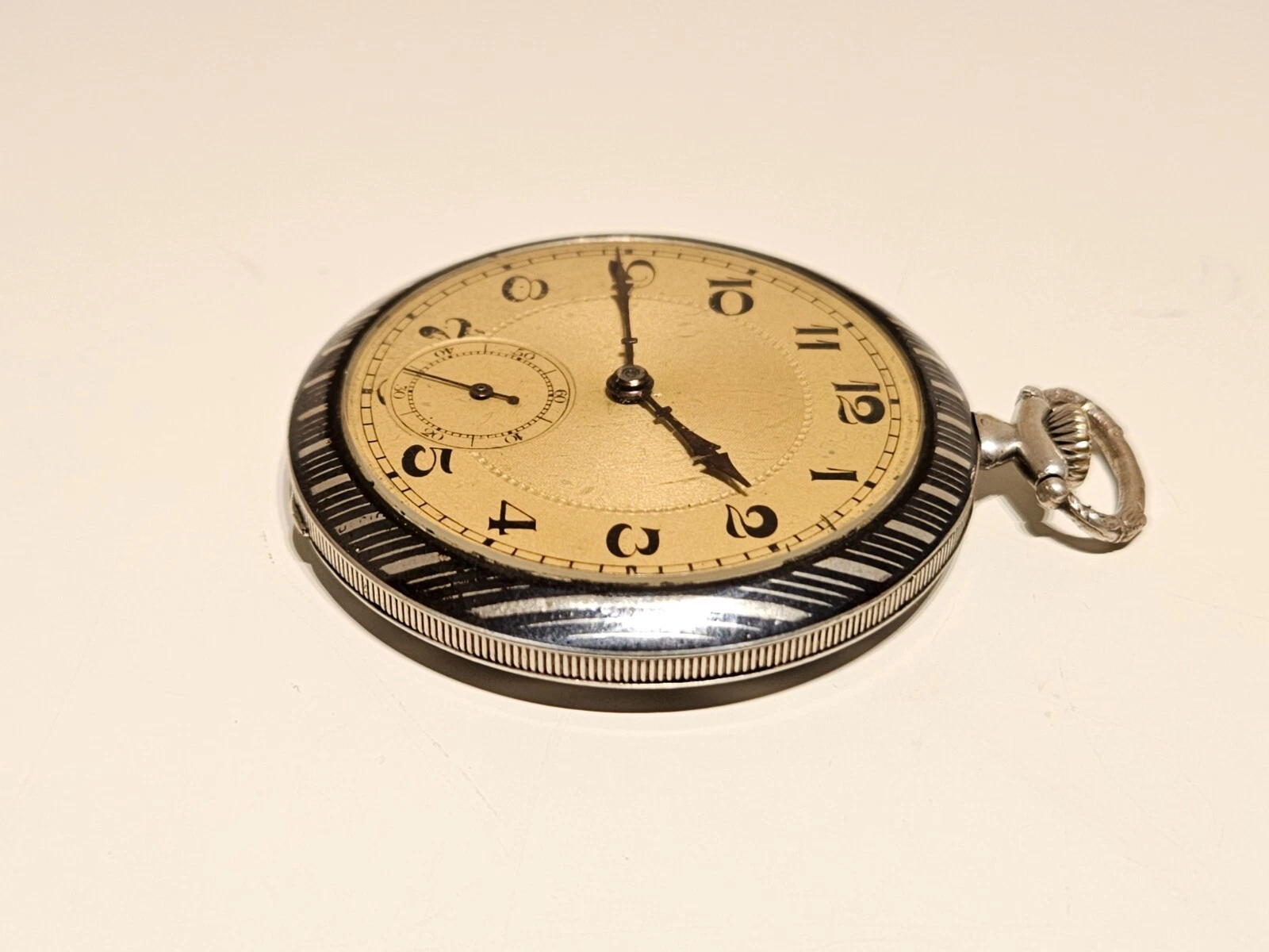 VINTAGE WW2 VERY RARE LUXURY SWISS NIELLO SILVER 800 MEN'S POCKET WATCH"SILVANA"