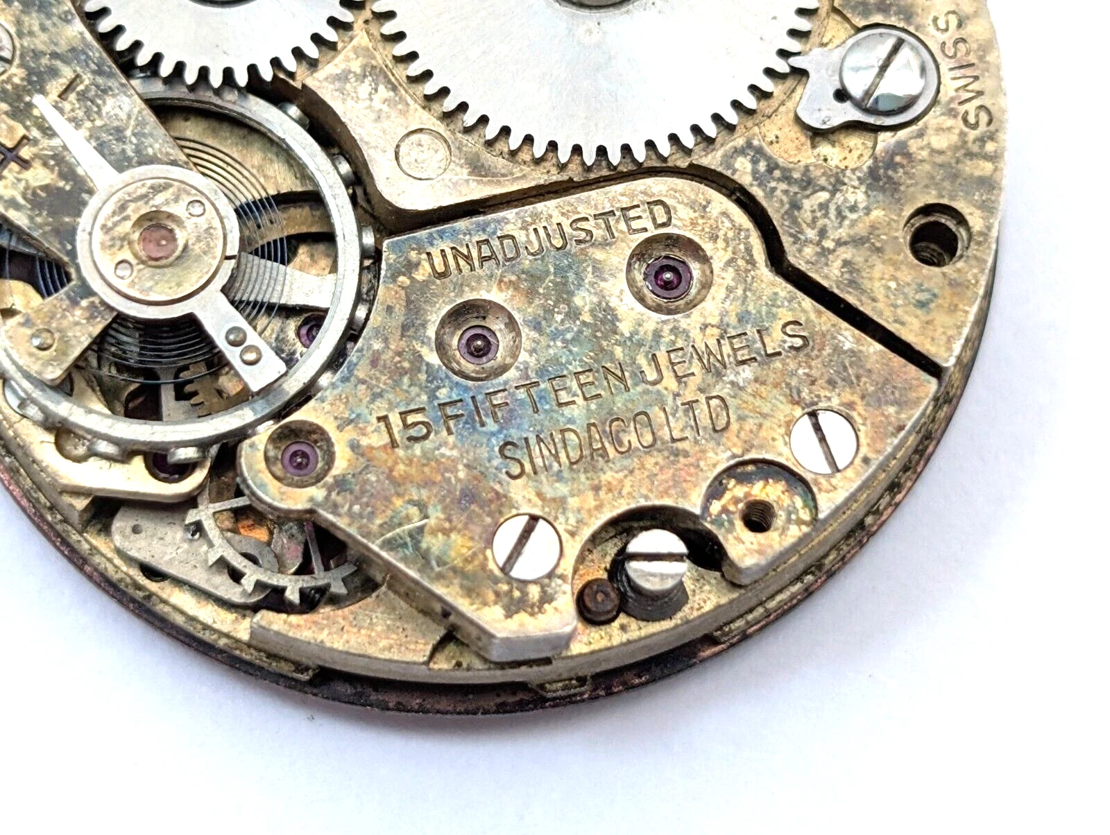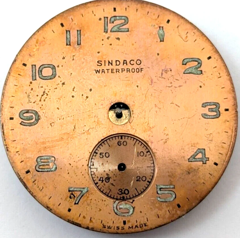 Vintage SINDACO Waterproof 15j Military Style 26mm Watch Movement PARTS REPAIR