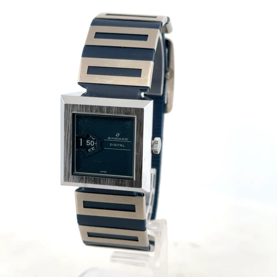 Vintage Sindaco Jump Hour / Digital Unisex Mechanical Wristwatch Swiss NOS w Box
